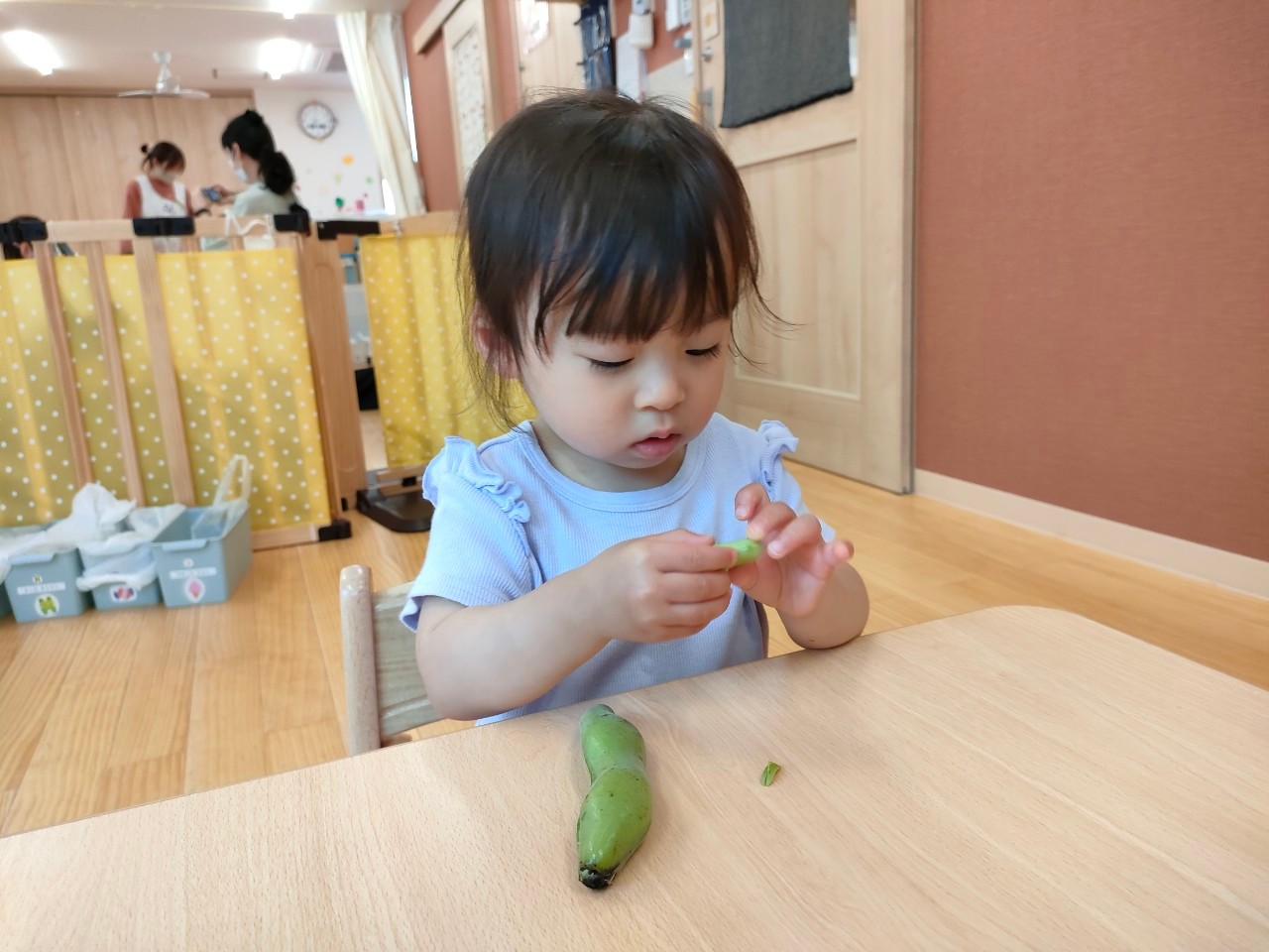 次の日、ほんもののそら豆の皮むきに挑戦していたので、おすそわけしてもらいました(*^▽^*)
