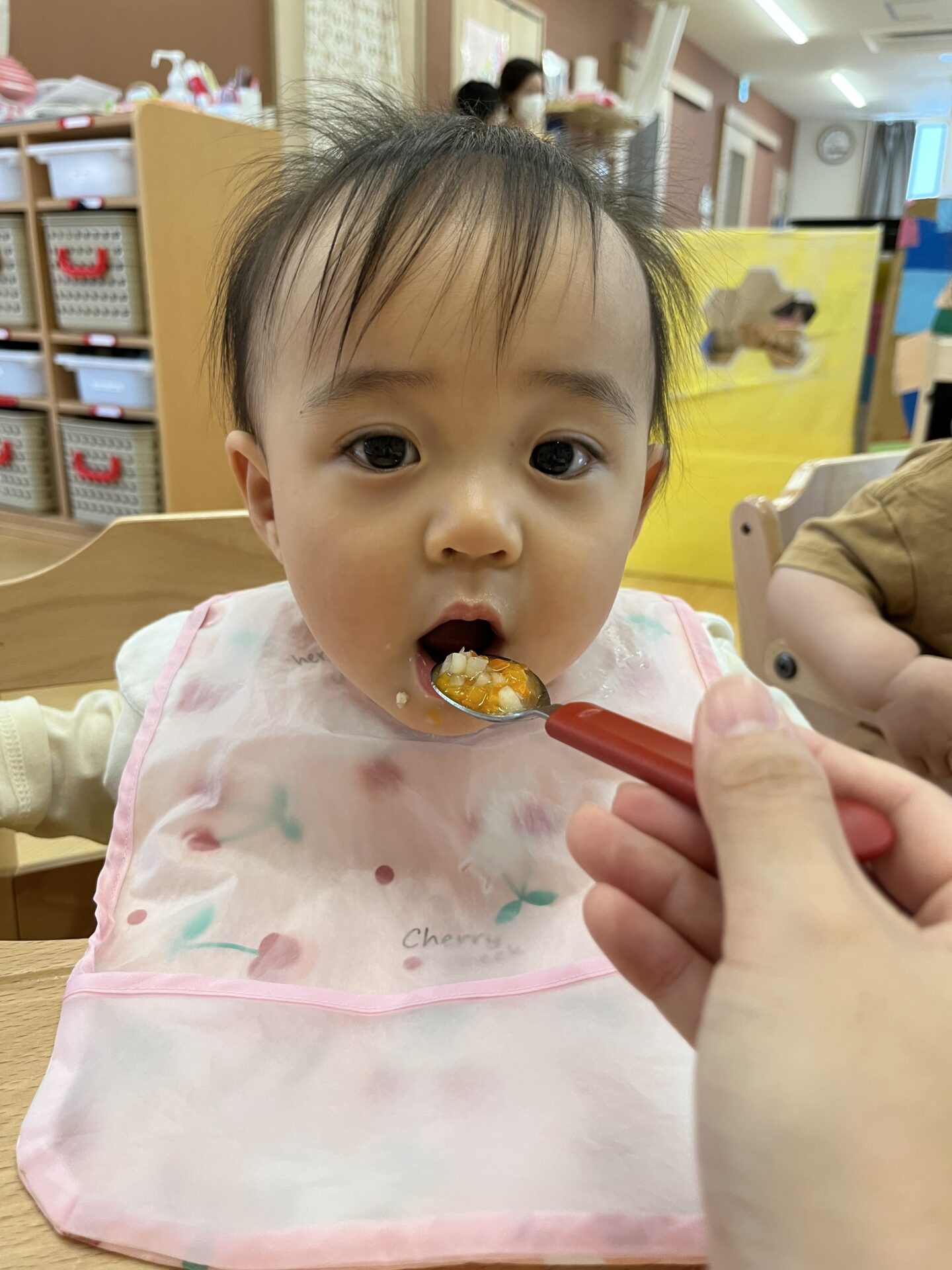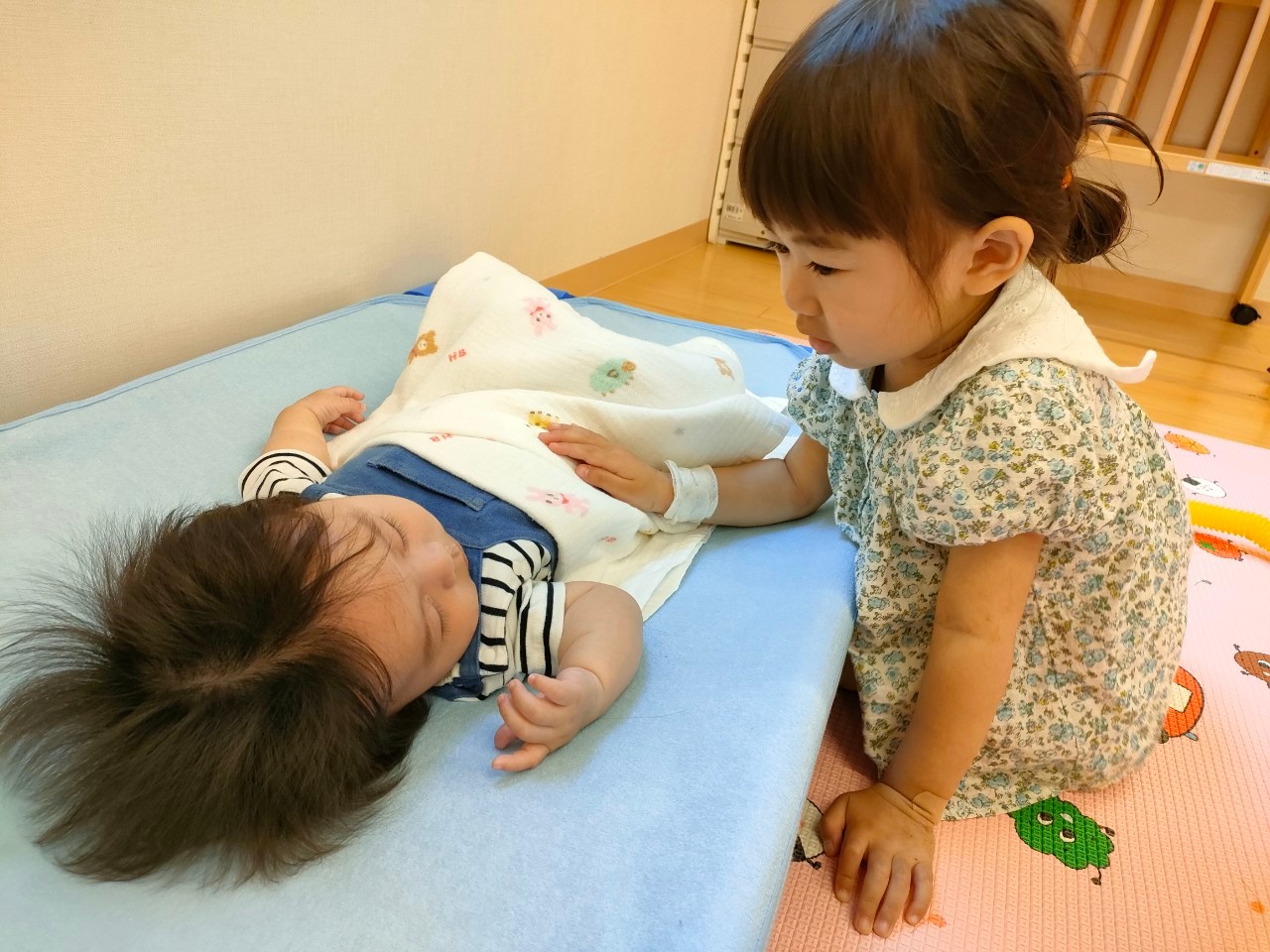 2歳のあめ組さんのお姉さんがトントンしてくれるときもあります!