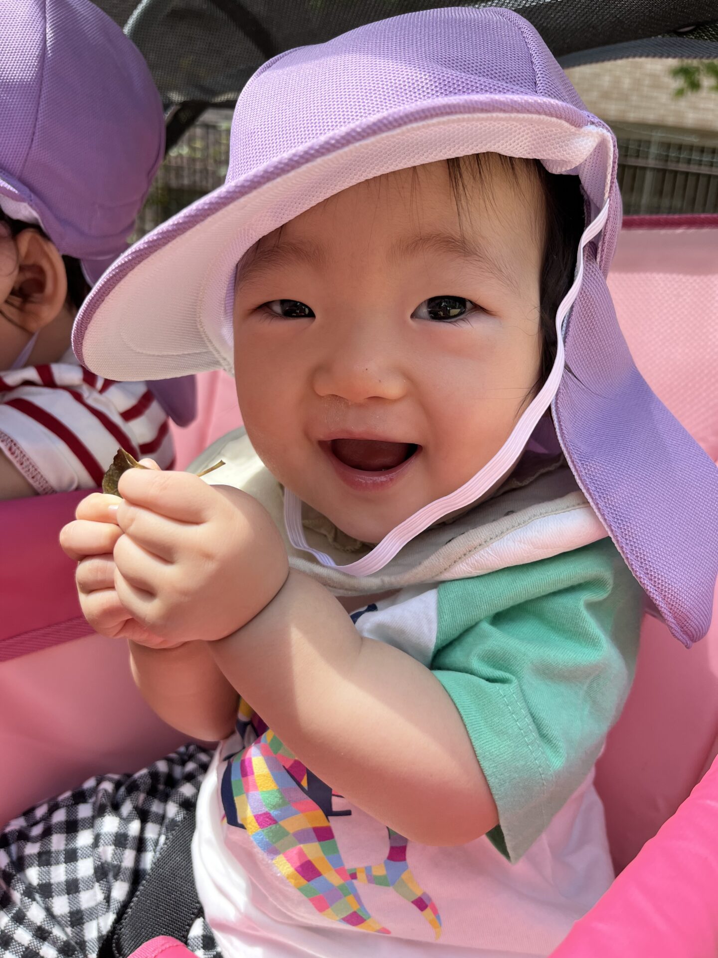 お外に出ると、公園にある葉っぱや通り過ぎる車に釘付けの子どもたちです。