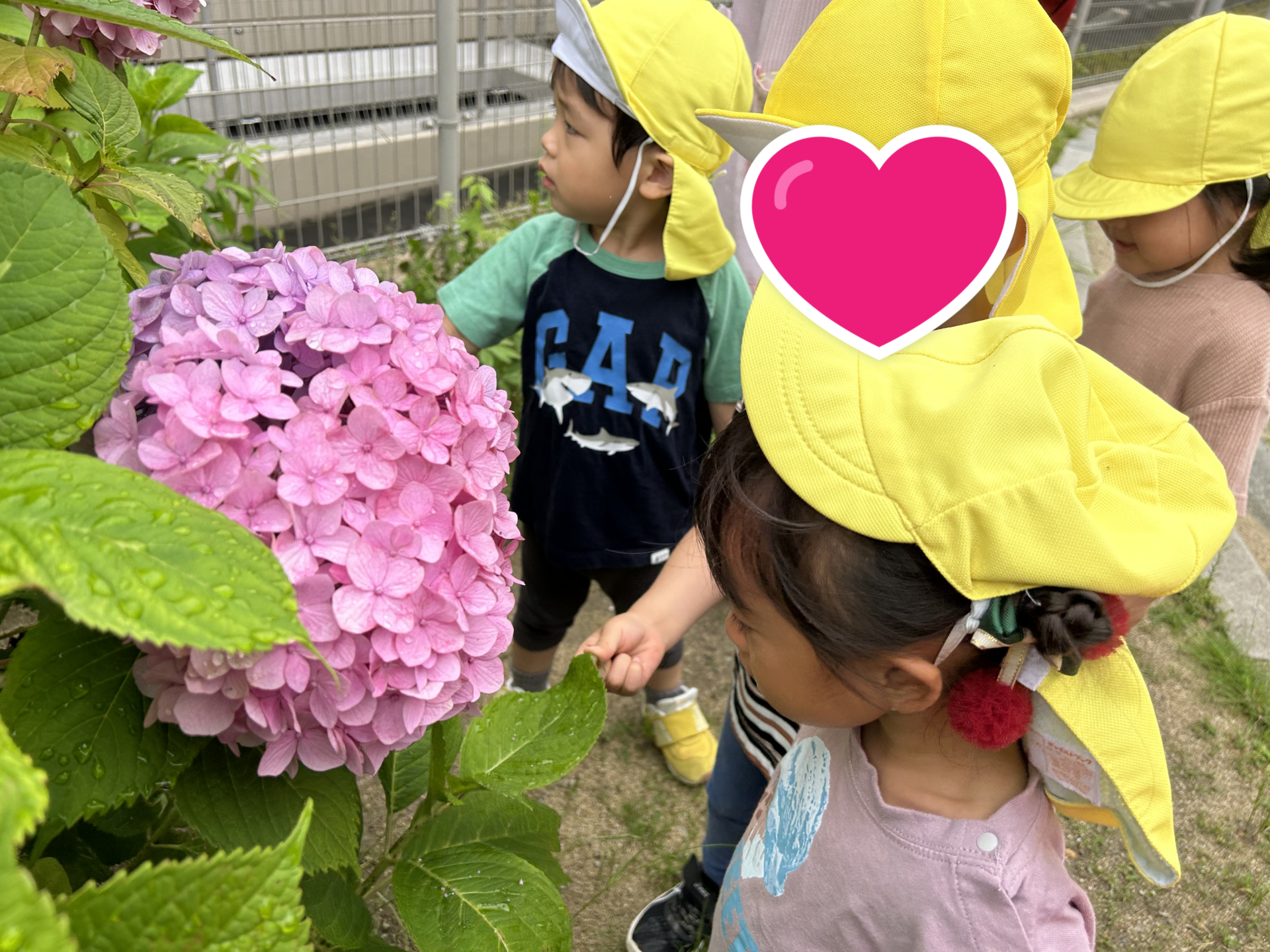 自分の顔と同じくらい大きな紫陽花に子ども達は大喜びです。