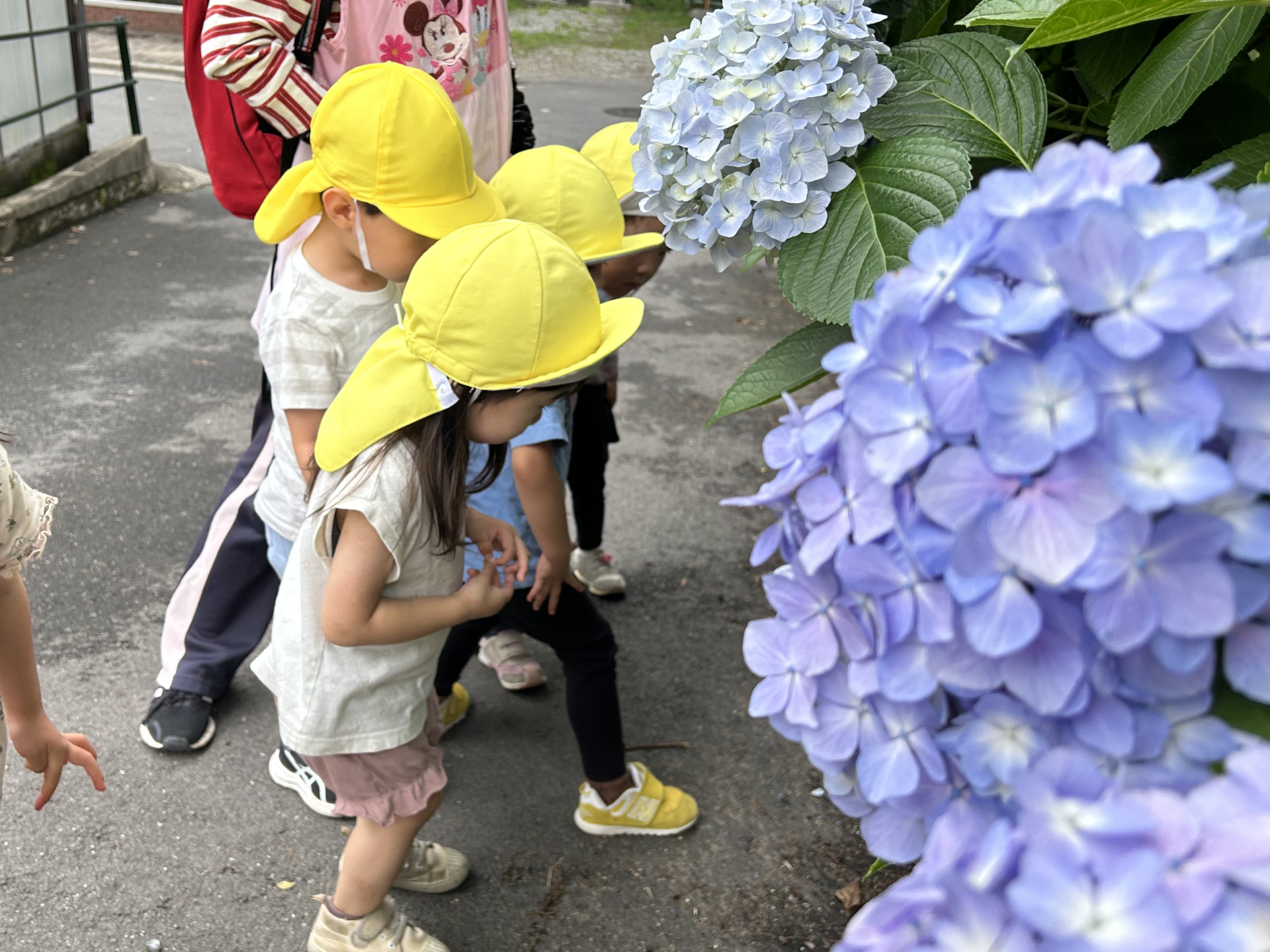 保育園に帰ってからは「いっぱい虫さん見れたね!」「また、カタツムリ探そうね!」とお話する姿や、他のクラスの先生には「あじさいいっぱいあったよー!」と楽しそうにお話してくれる様子もありました。