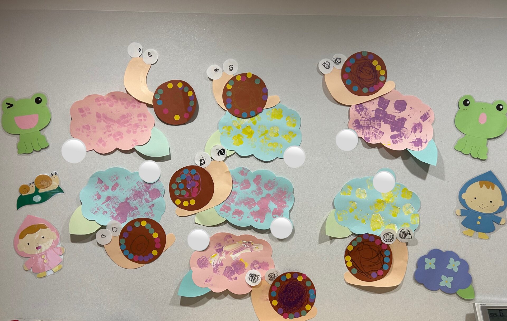 六月の製作は子ども達がリクエストしてくれたカタツムリと紫陽花を作りました。