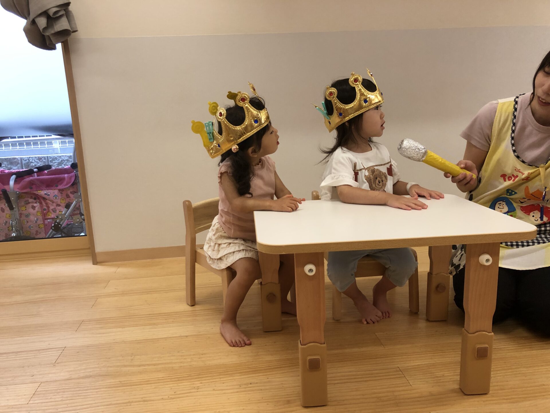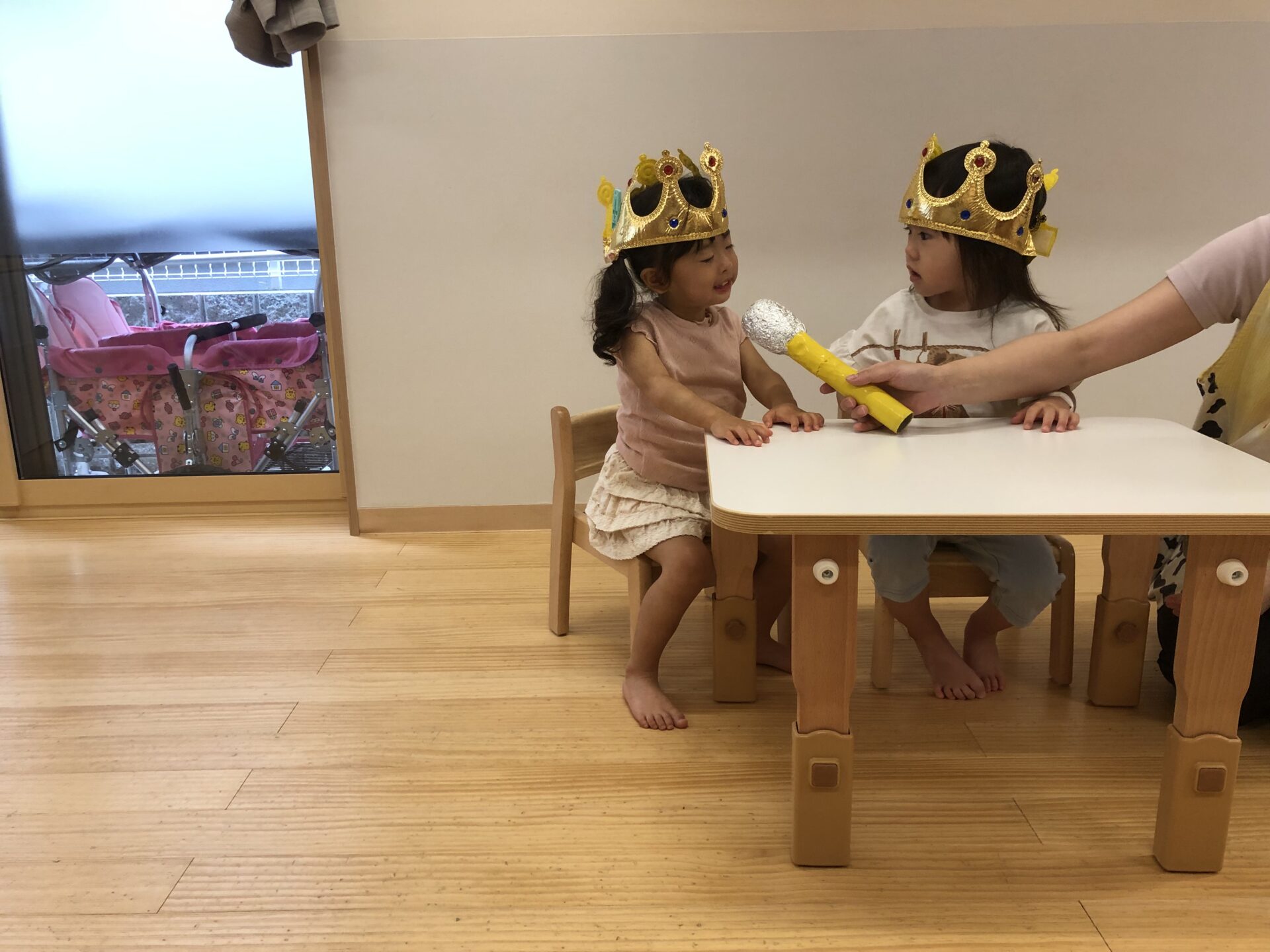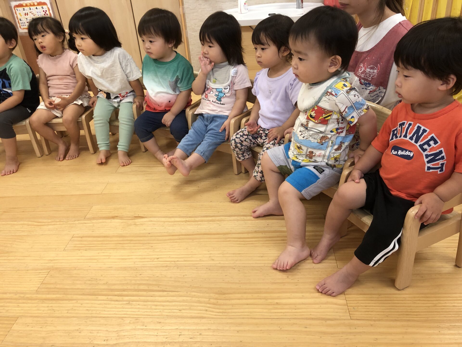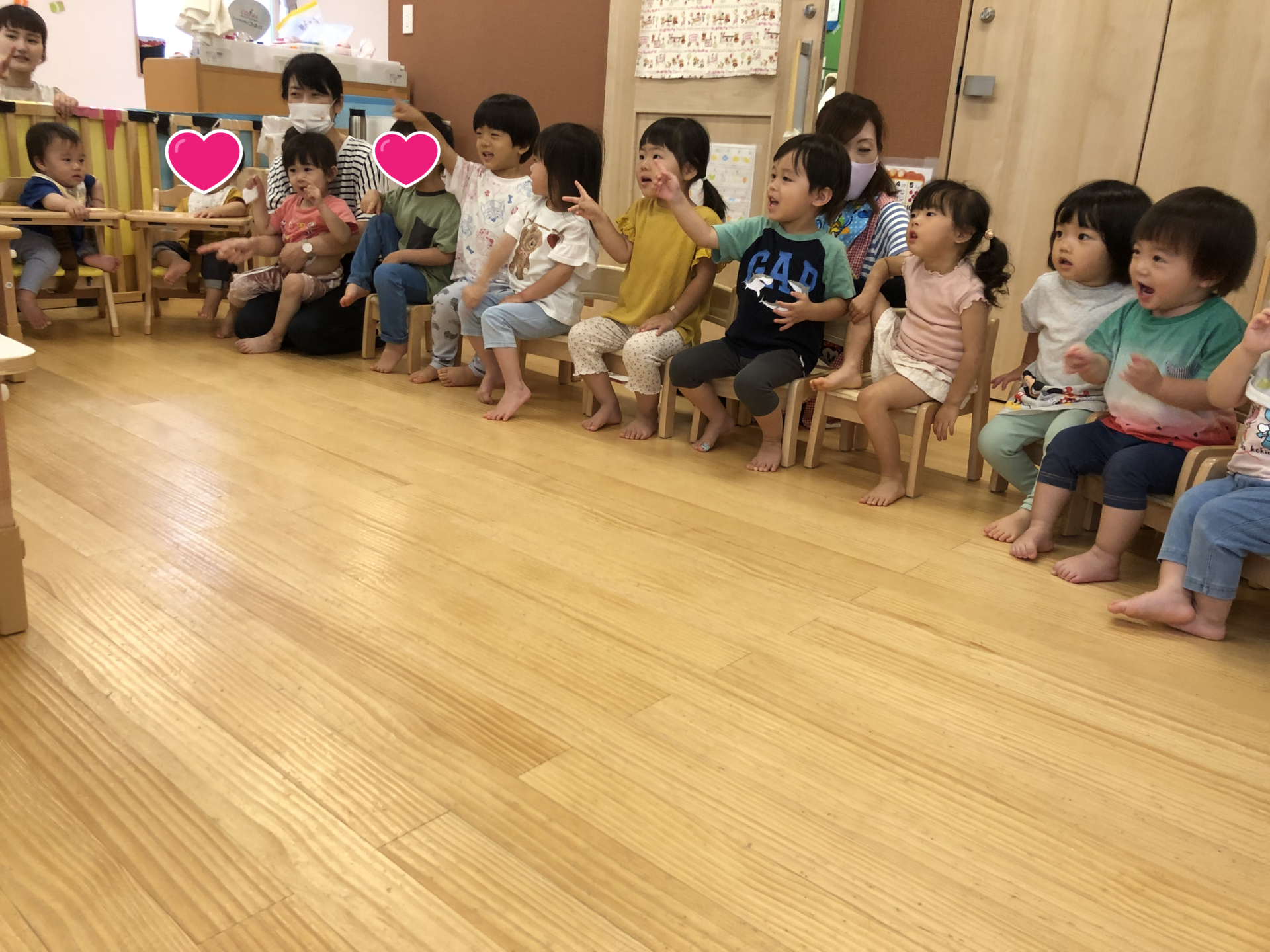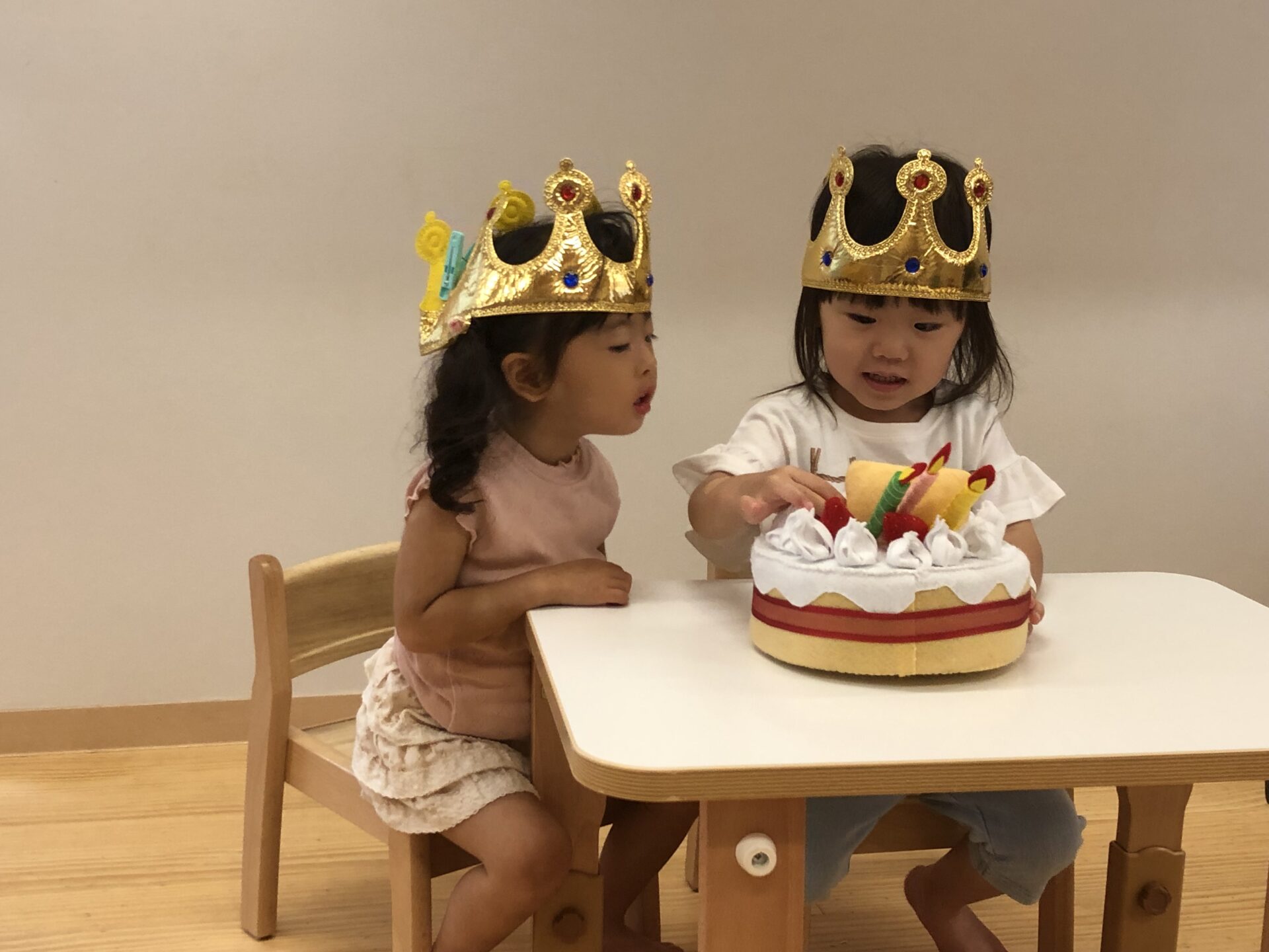 「○○ちゃん・○○ちゃんって書いてあるよ!」とお誕生日のお友だちの名前が書いてあることを教えてくれました。プレートには名前は書いていないのですが(;’∀’)、自分たちの名前が書かれているように見えたのでしょうね。子どもらしい可愛いお返事に癒されました♪