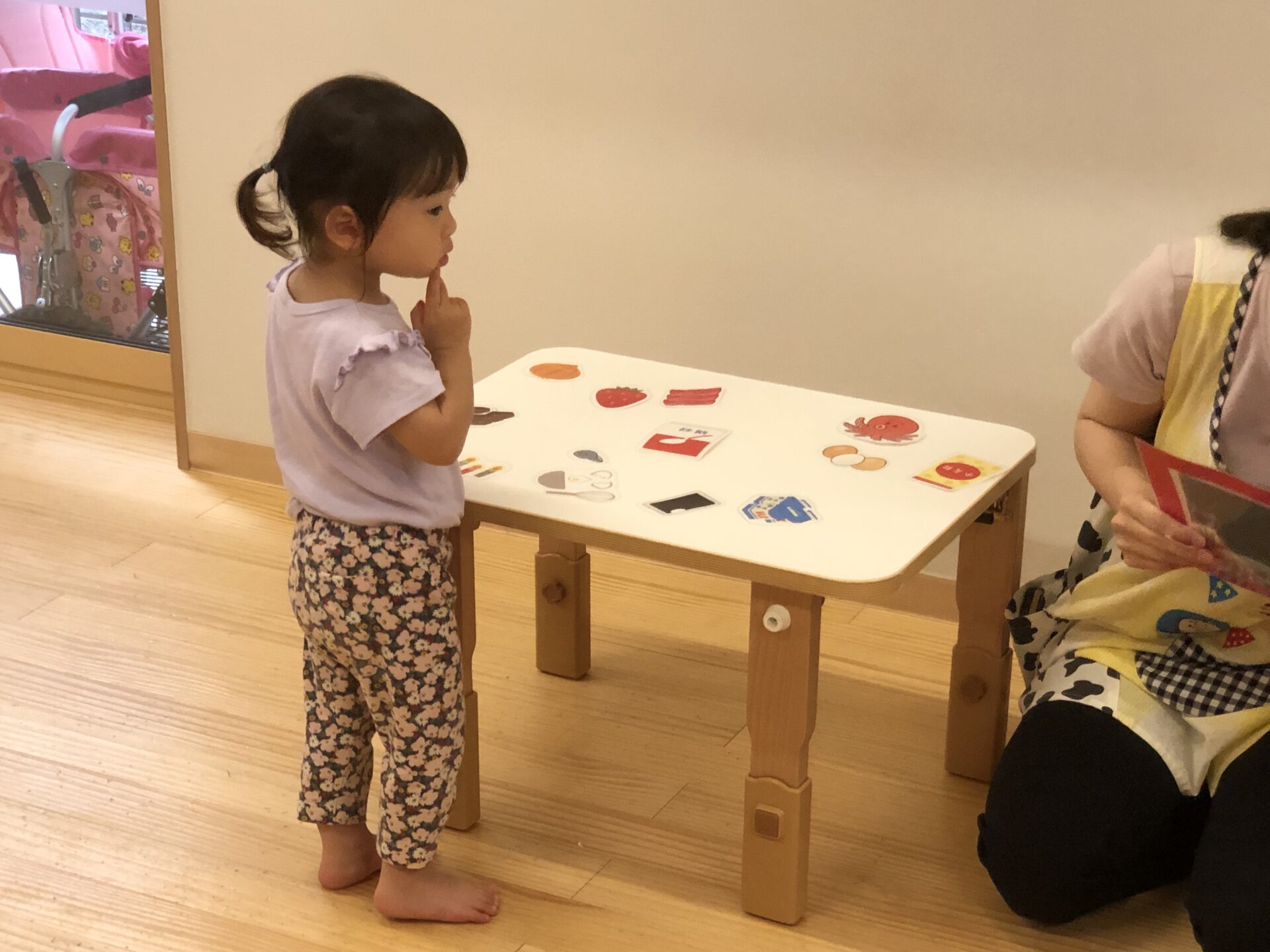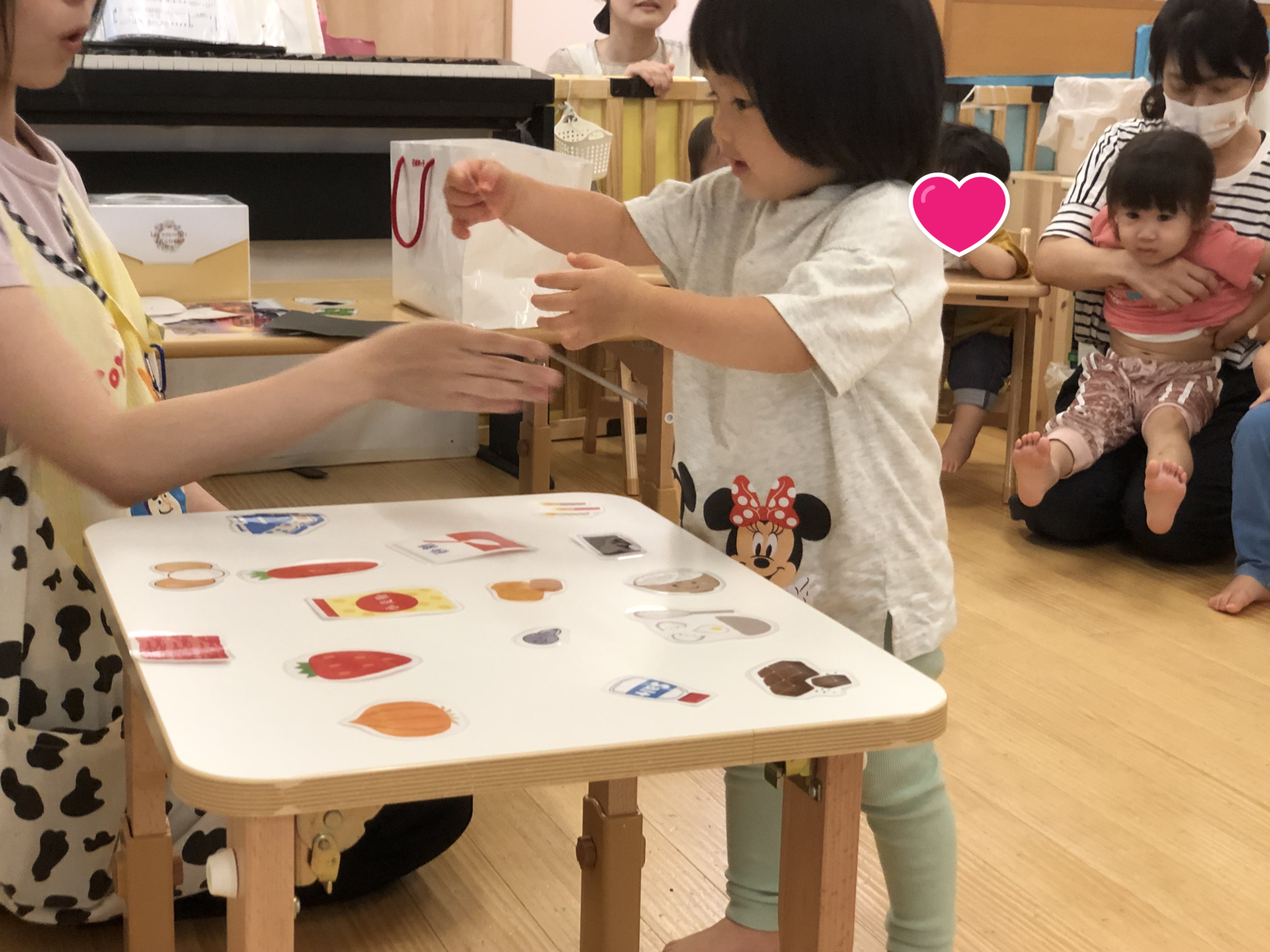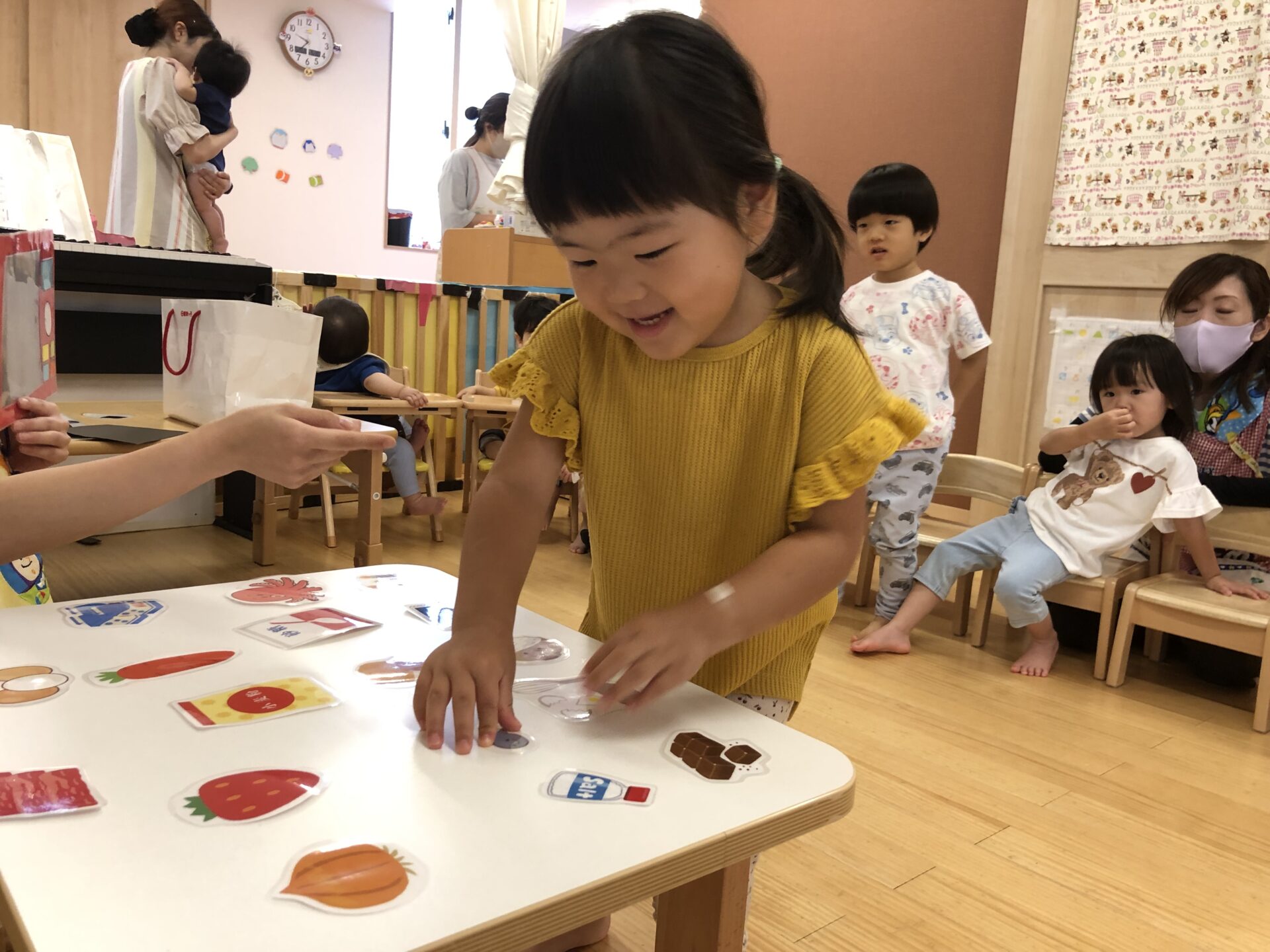 保育者がほしい食材の名前を伝えると、たくさんのカードの中から上手に選び、持ってきてくれました。