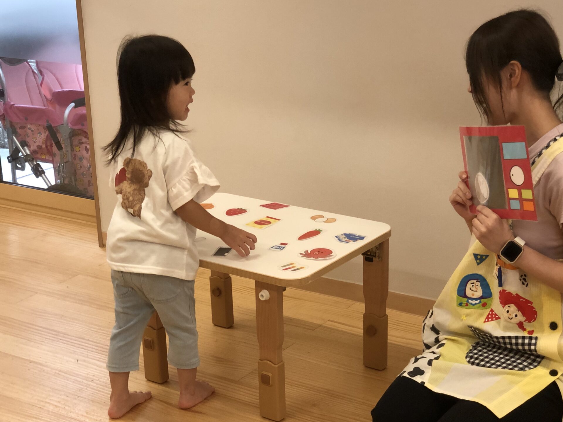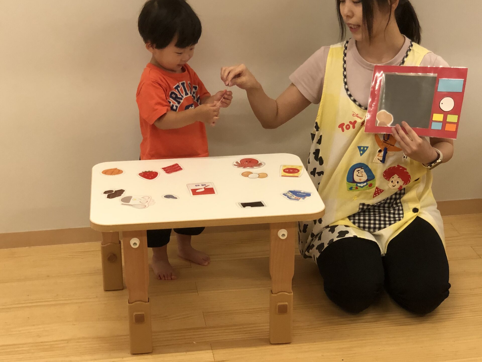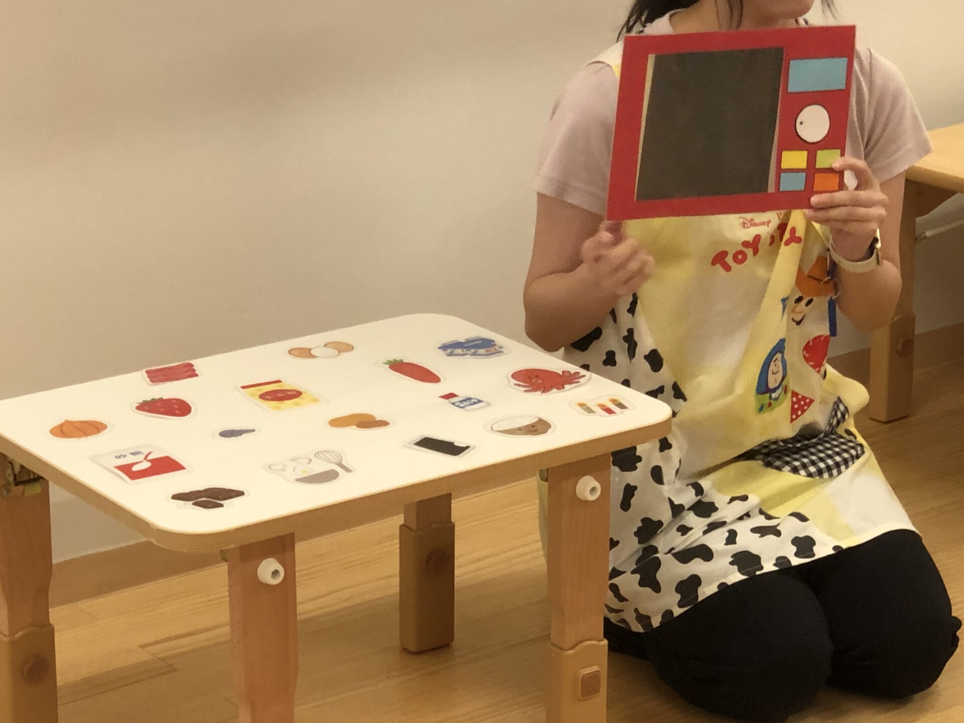 保育者がほしい食材の名前を伝えると、たくさんのカードの中から上手に選び、持ってきてくれました。
