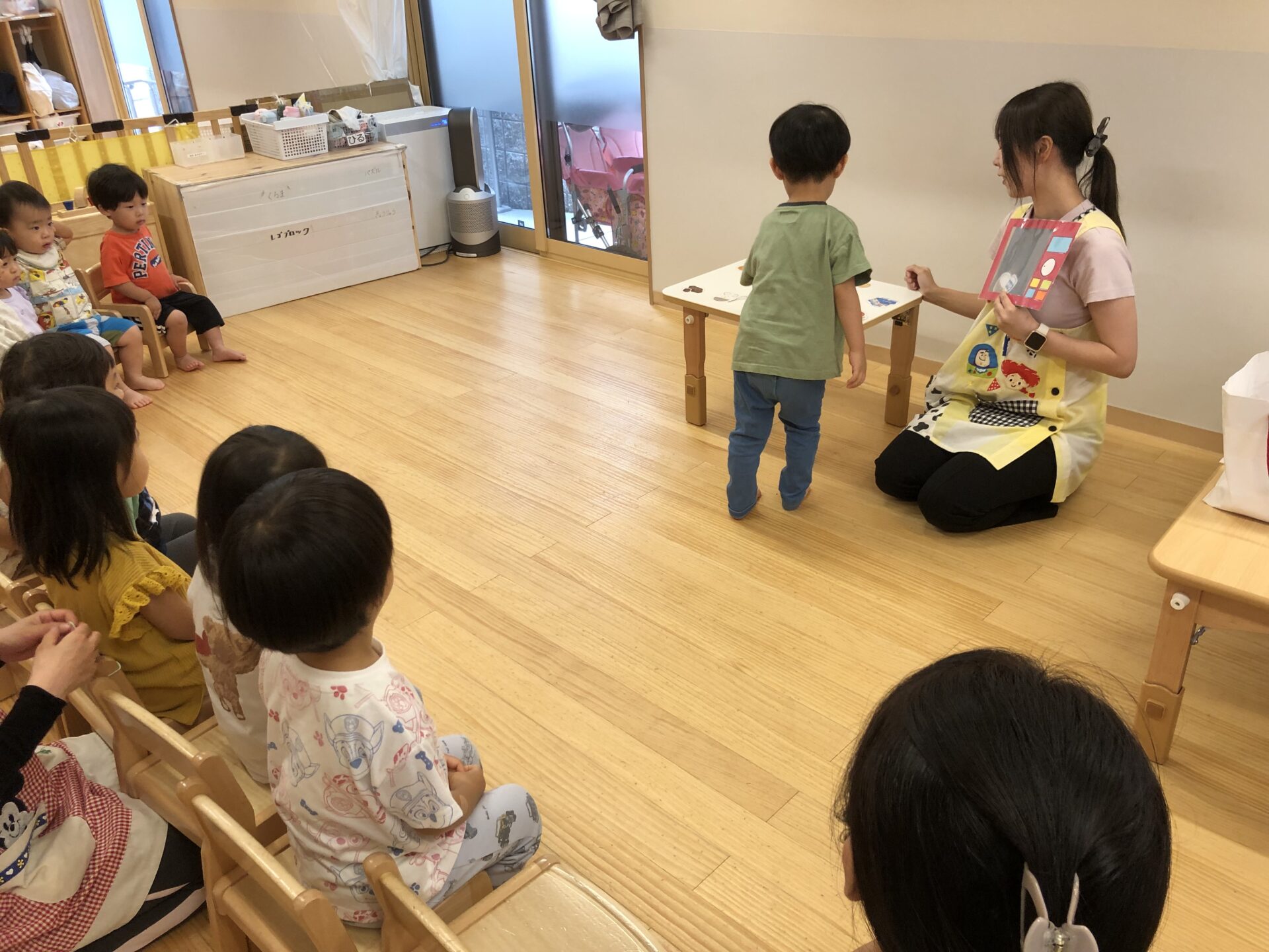 お名前・年齢を皆の前でも大きな声でしっかりと答えることが出来ていました♪毎日、練習した甲斐がありましたね(*^-^*)