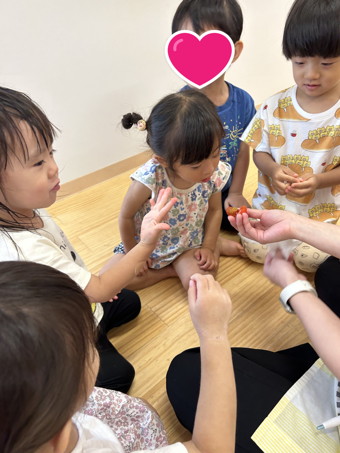 「まあるいね」「赤くなってる」と思い思いの感想を伝えてくれていました。