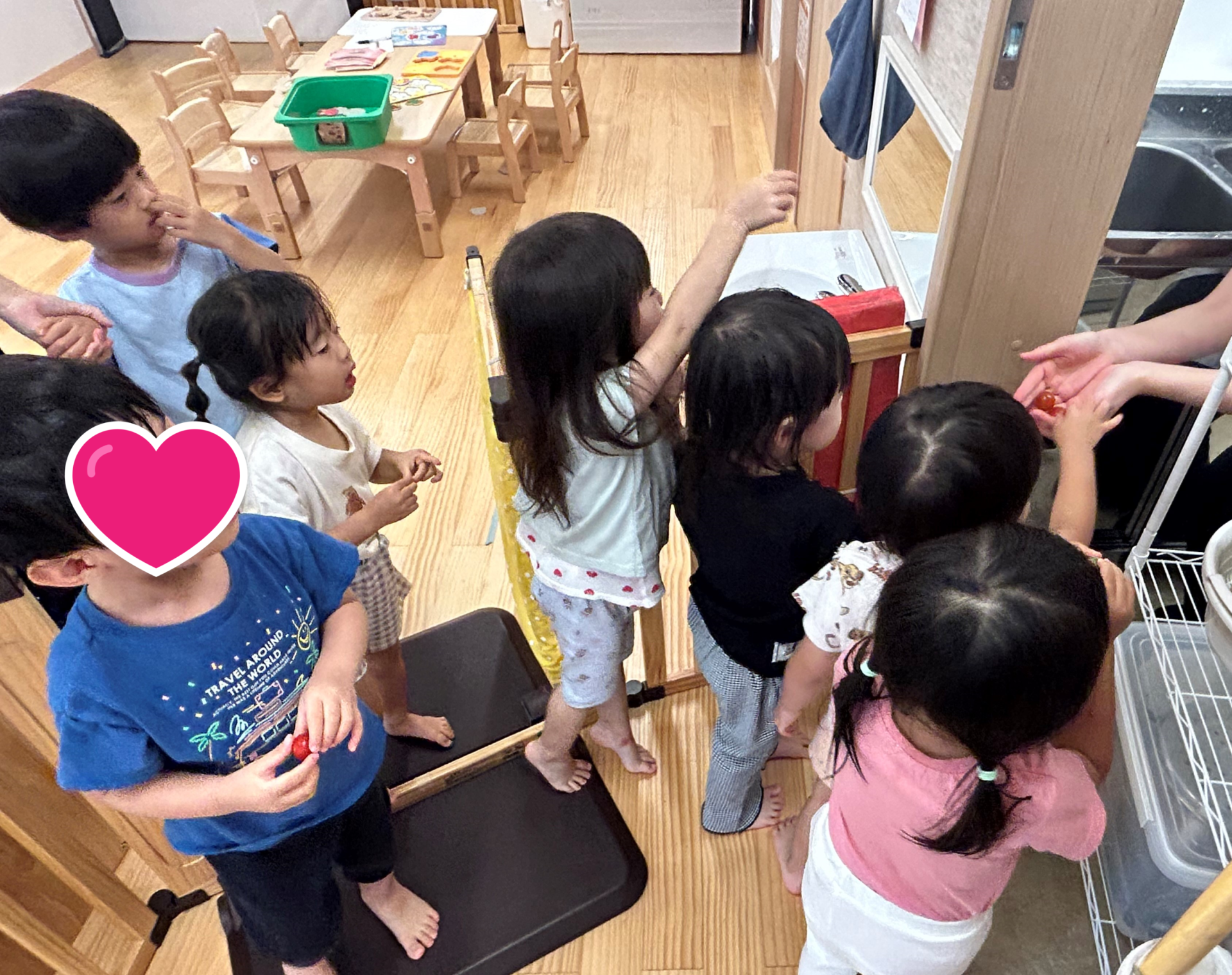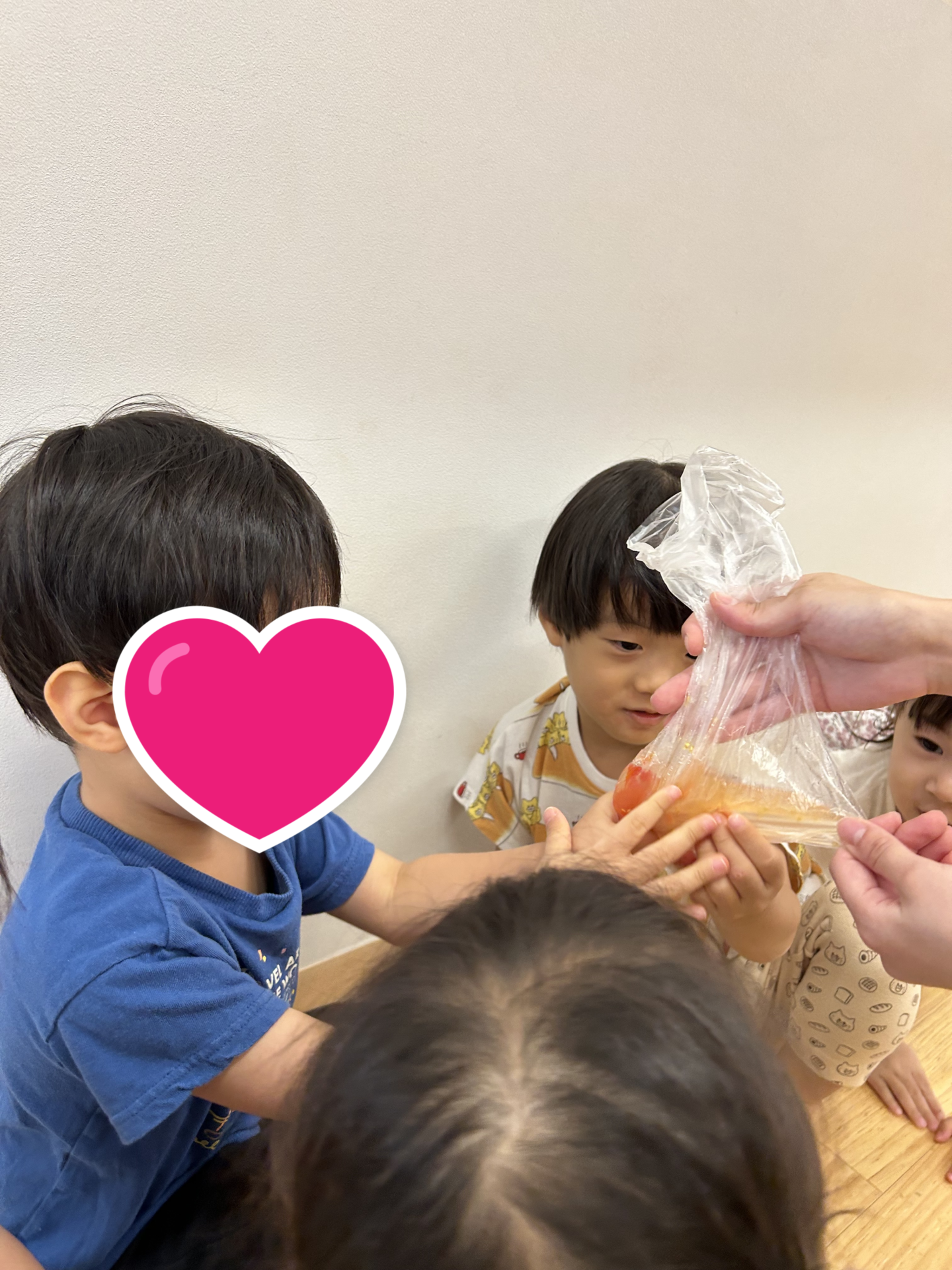 「とまとじゅーすすきなんだ」「○○先生(調理員)にどーぞしよ!」と、