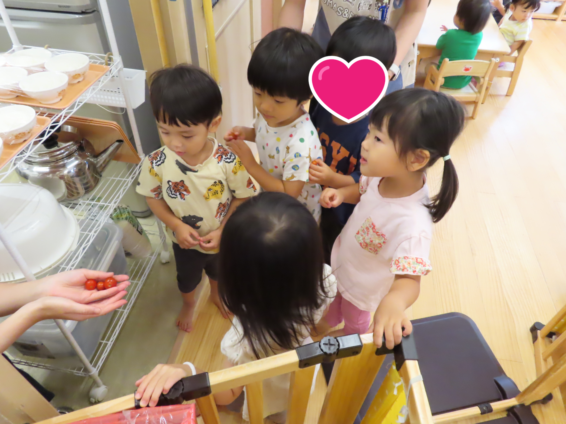 普段、トマトを食べられないお友だちも、完食する姿、少し舐めてみる姿など…