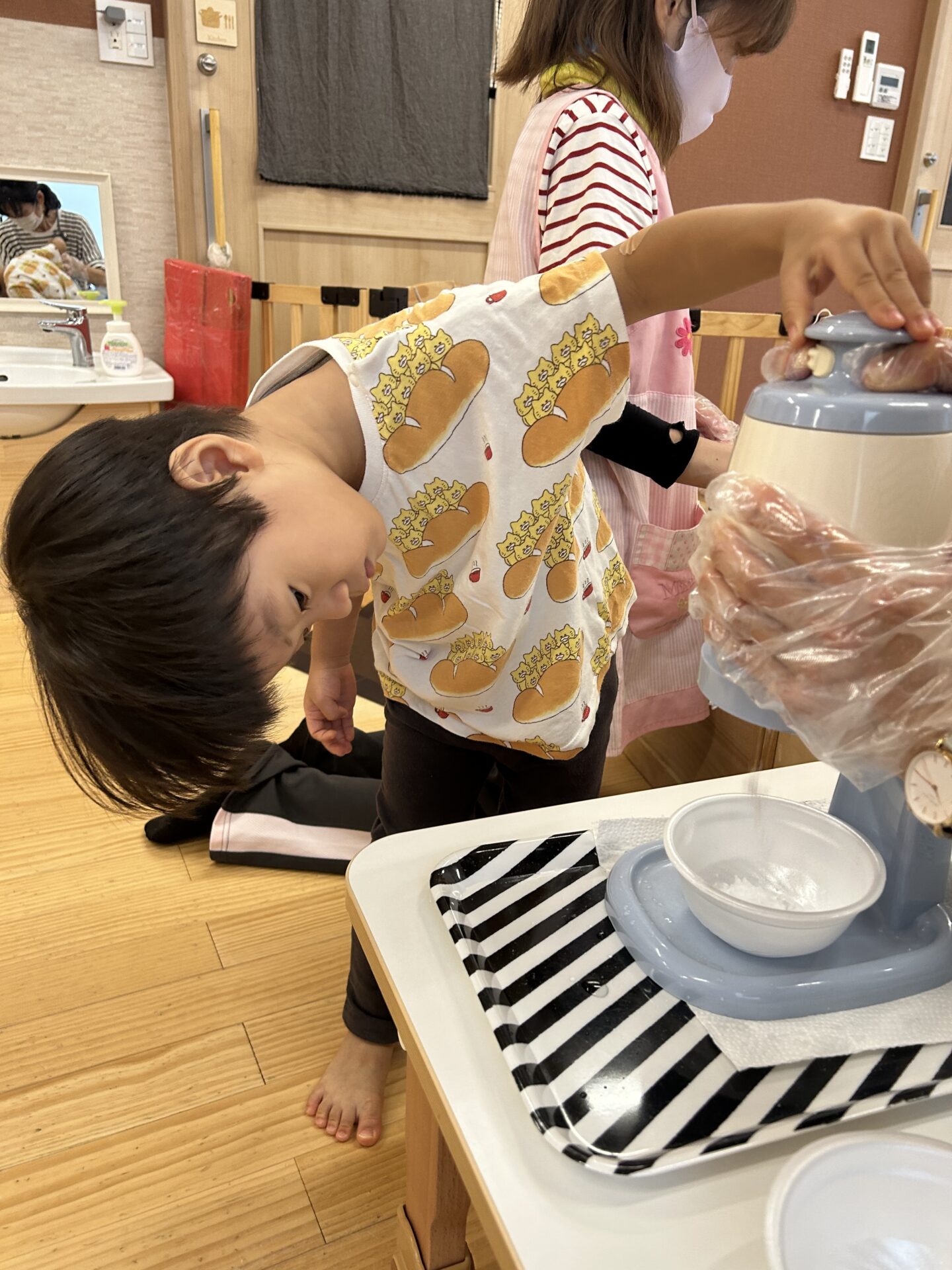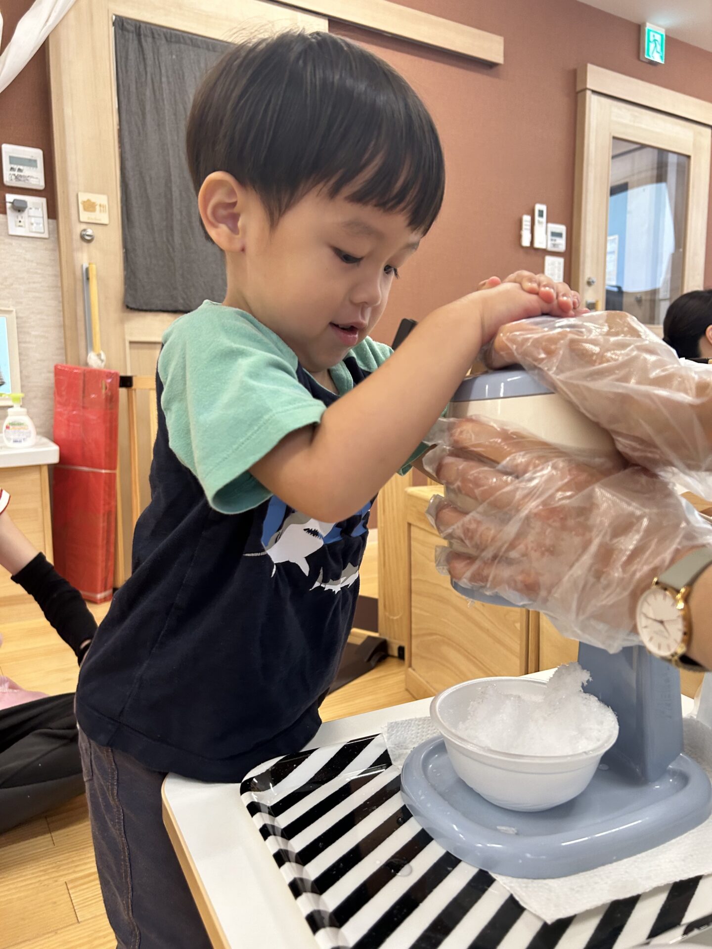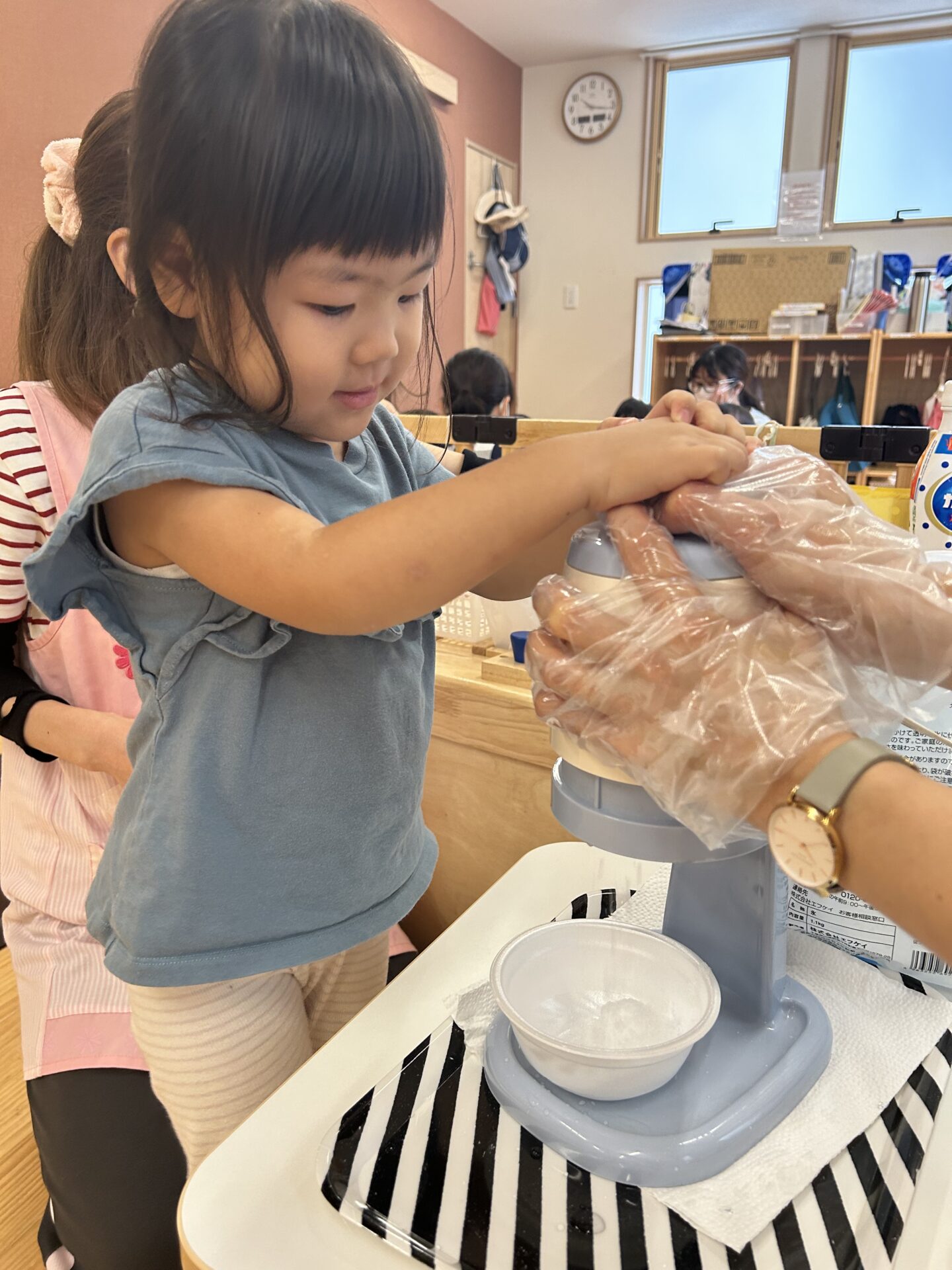 数日後、保育室かき氷機が出現。
