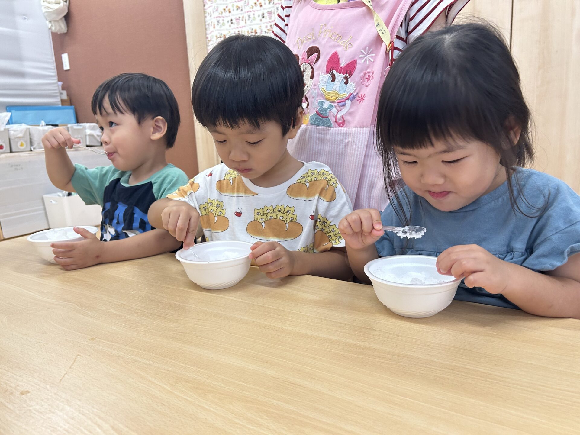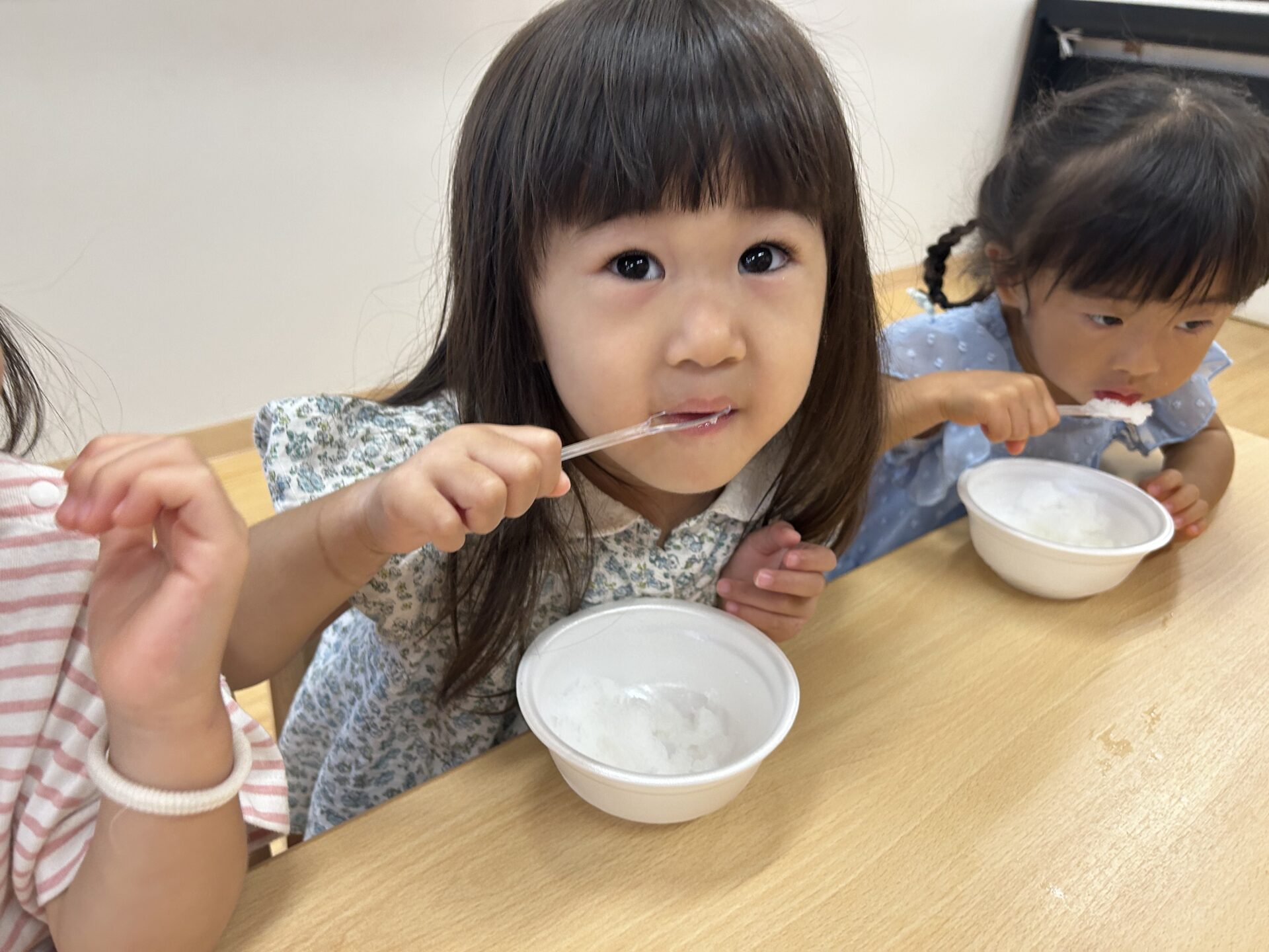 一口食べてみると「つめたい!」と教えてくれた子ども達。