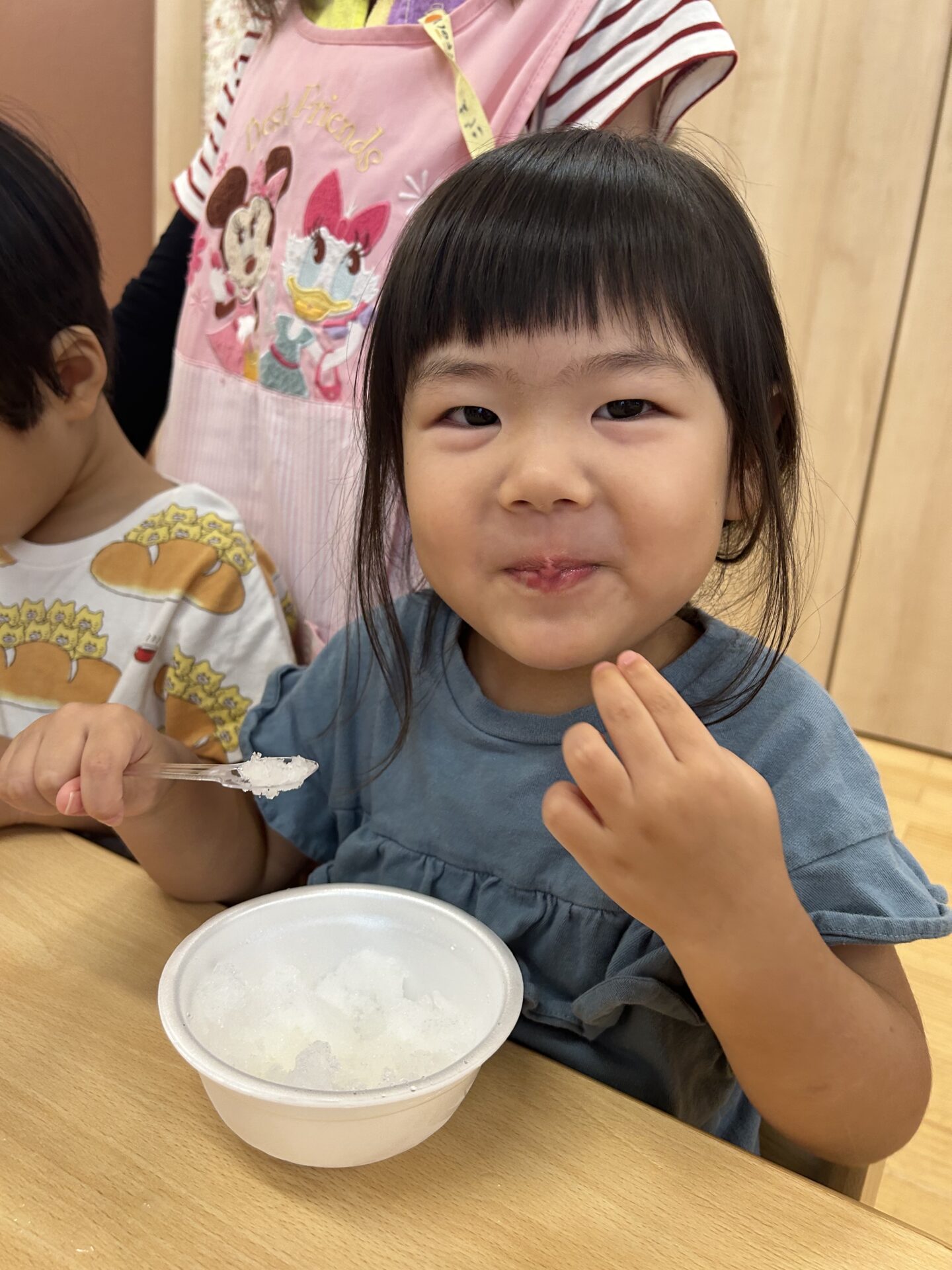隣のクラスのだいち組さんも、かき氷ができるのが待ち遠しい様子です。