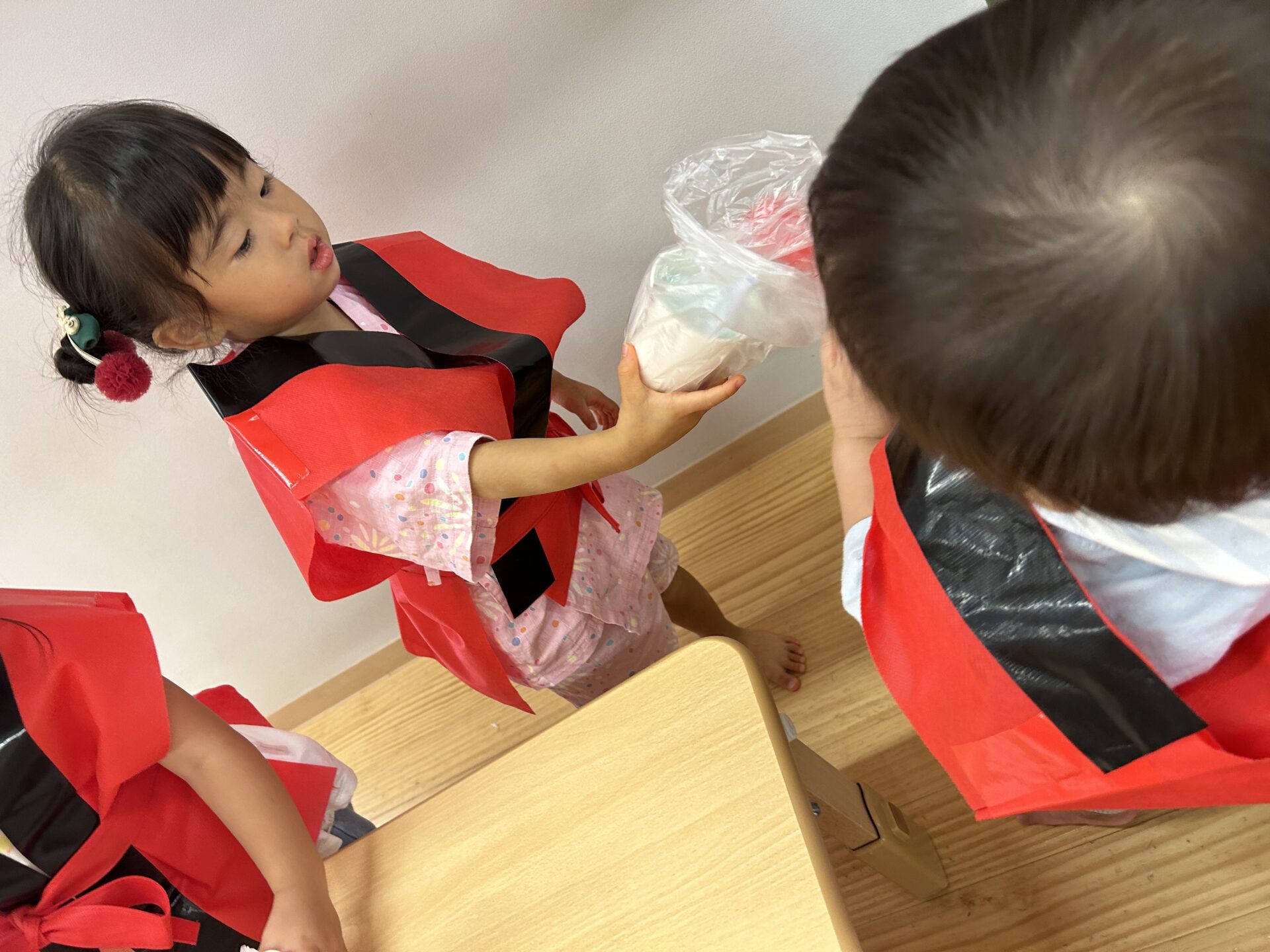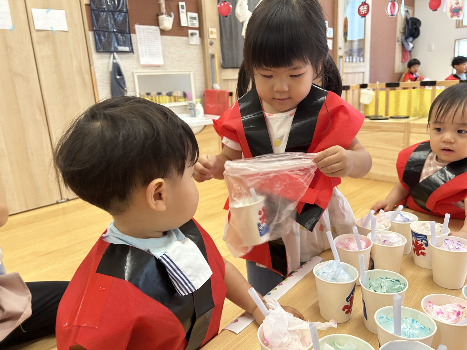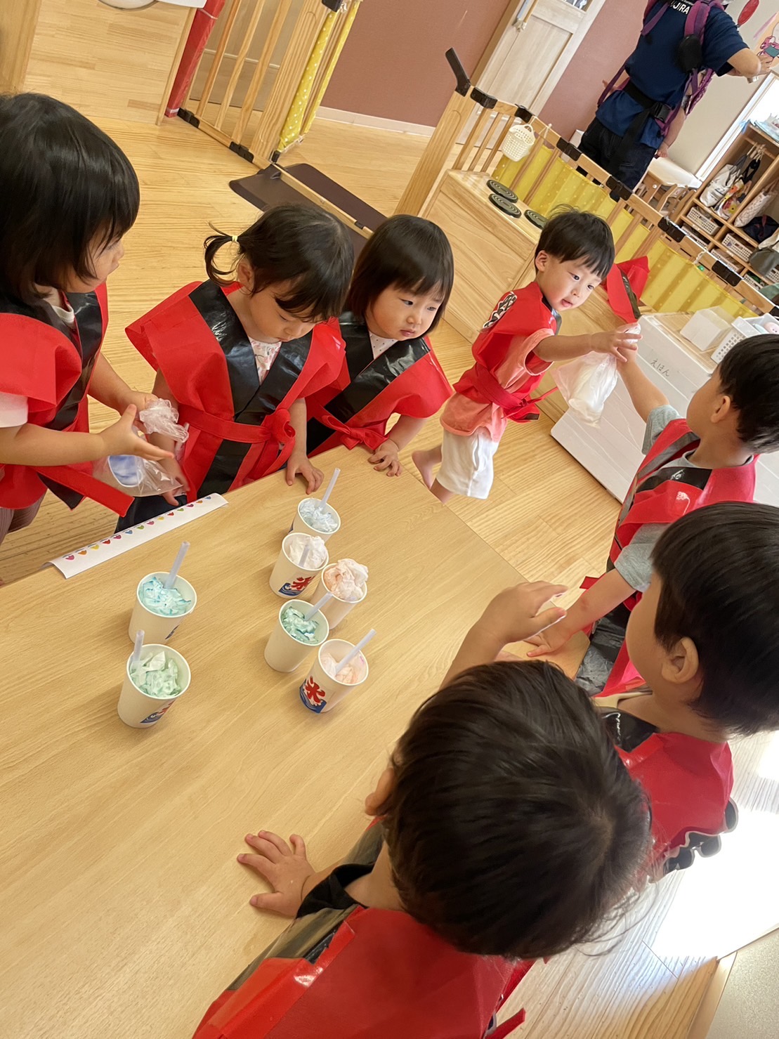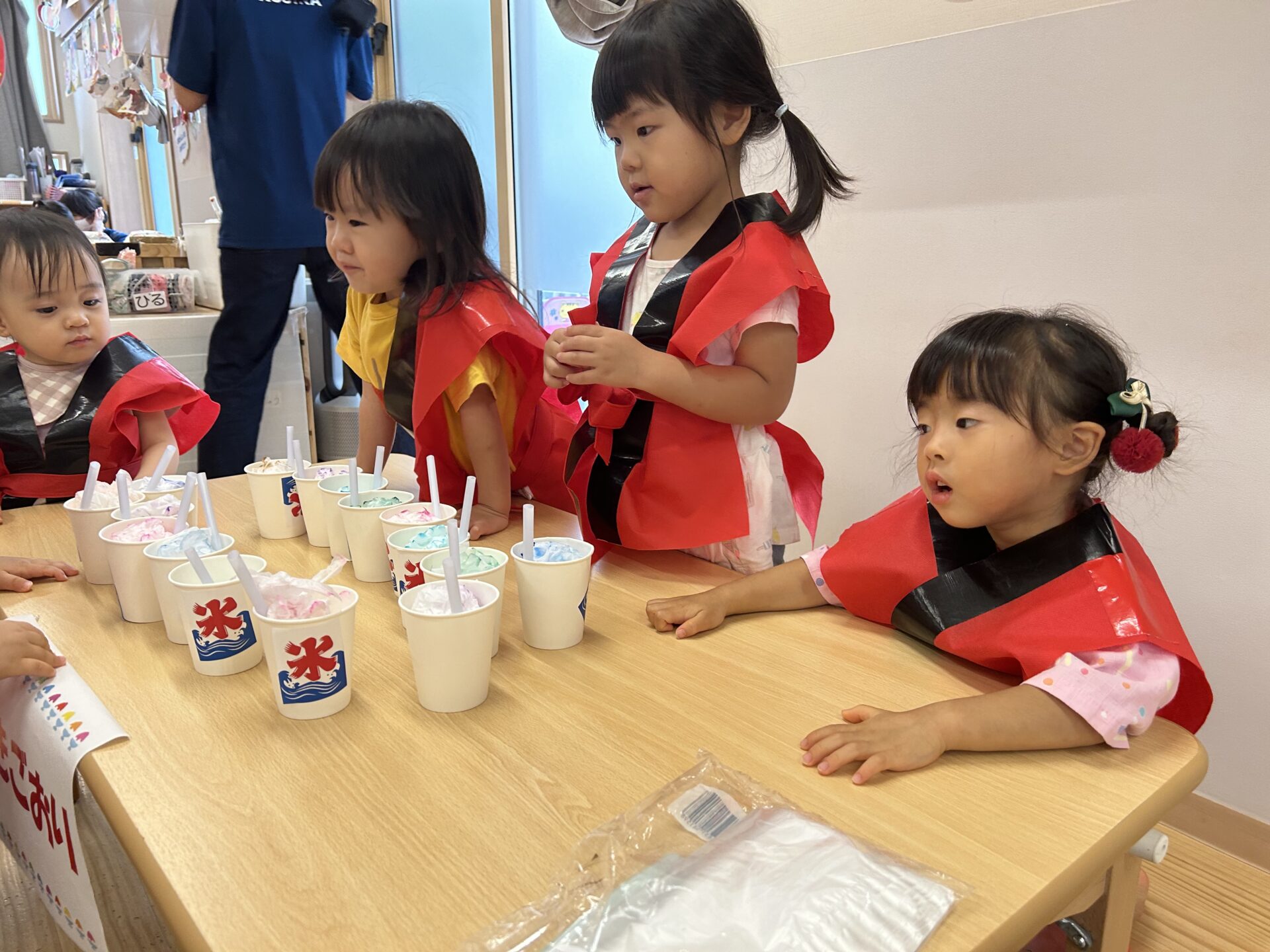 あめ組さんは、かき氷やさんも頼まれ、やる気いっぱいな姿を見せてくれました。