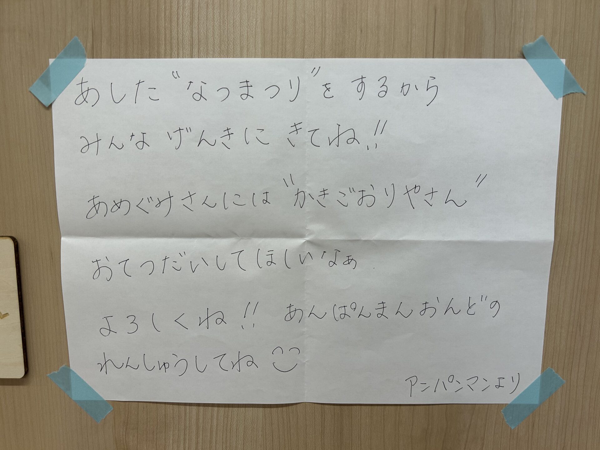 前日のお帰りの会を行っている際、アンパンマンが遊びに来てくれました。