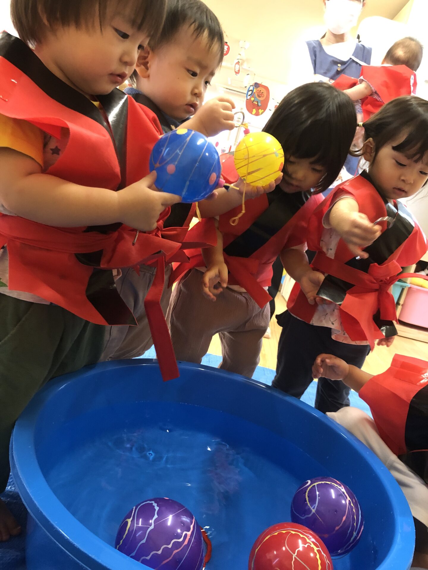 自分の好きな色のヨーヨーをとろうと真剣な表情です。