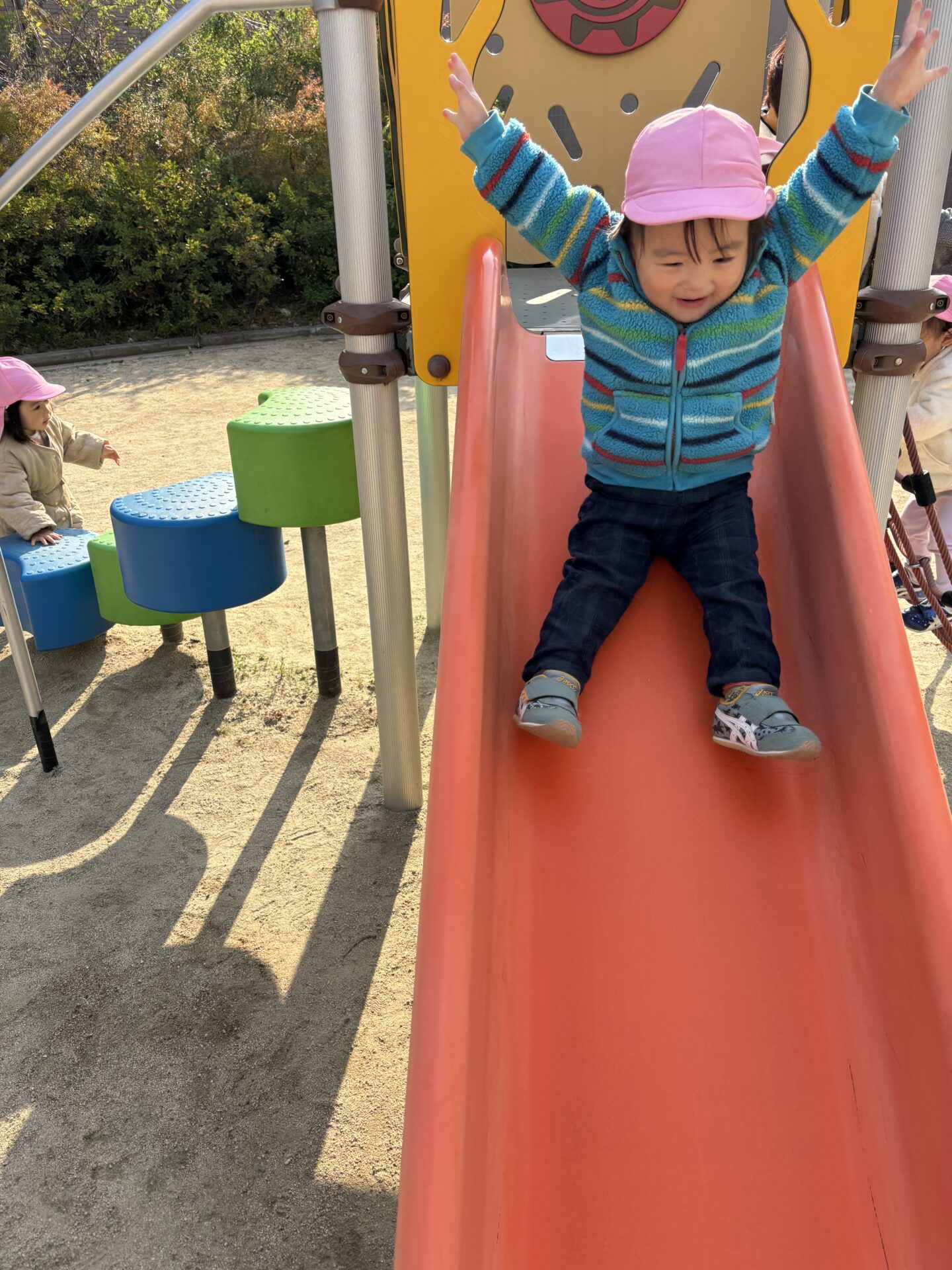 滑り台やスプリング遊具も大好きです。