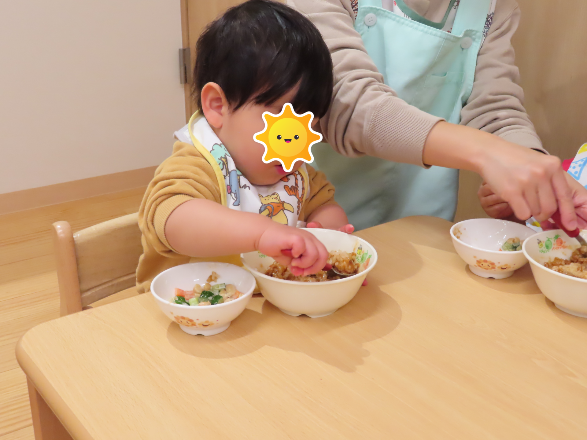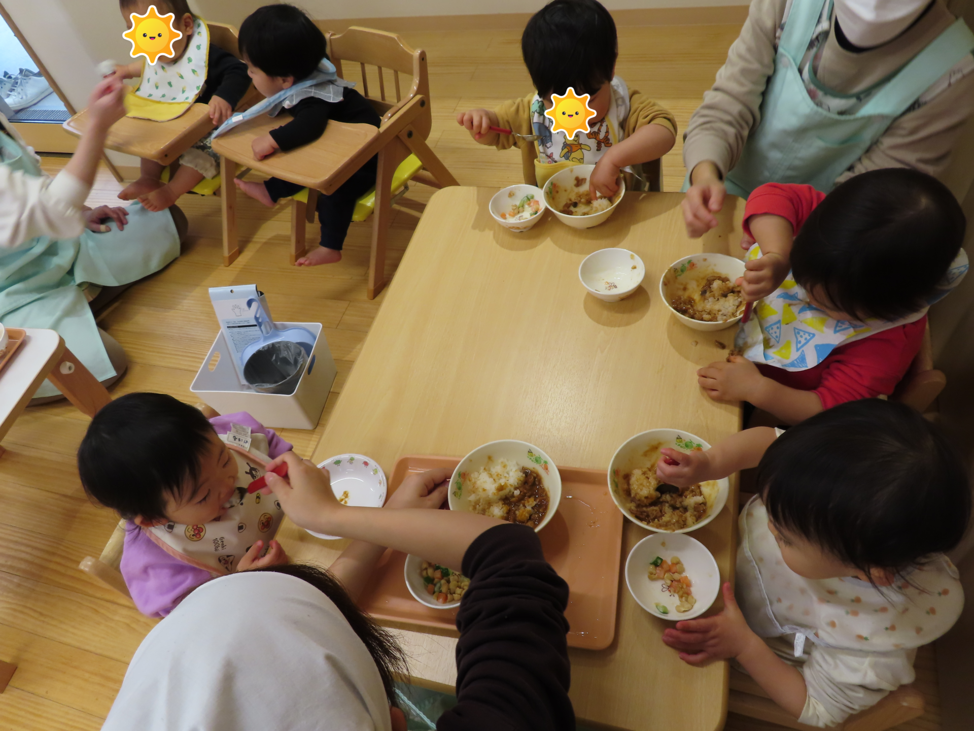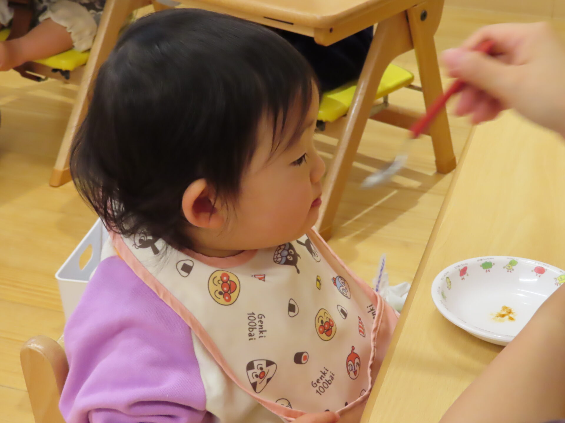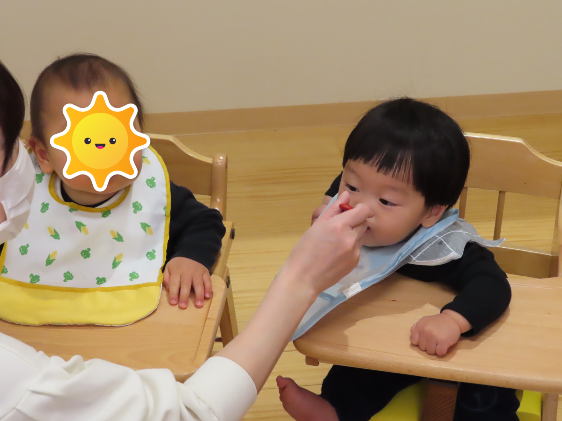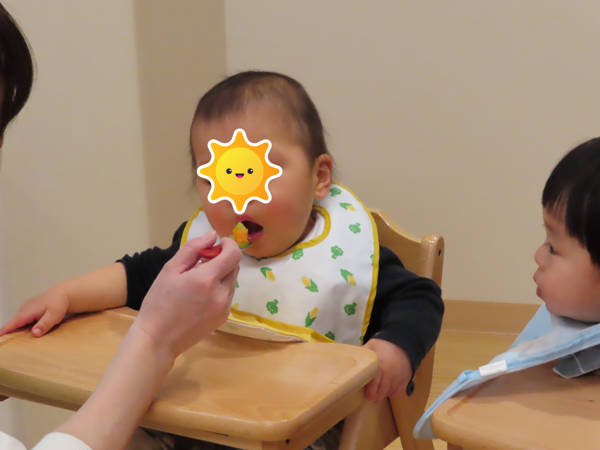 低月齢のお友だちは、交互に食べさせてもらいます。