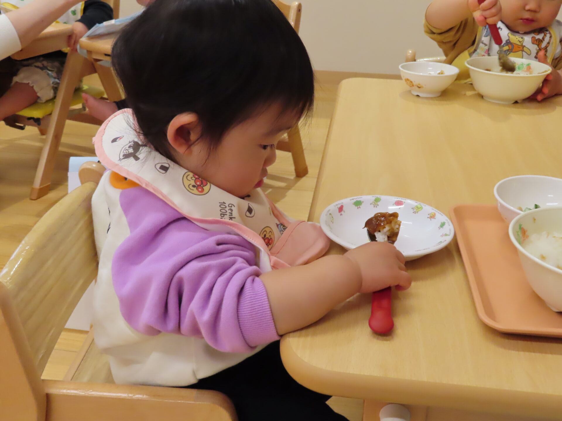 高月齢のお友だちは、スプーンで上手にすくい