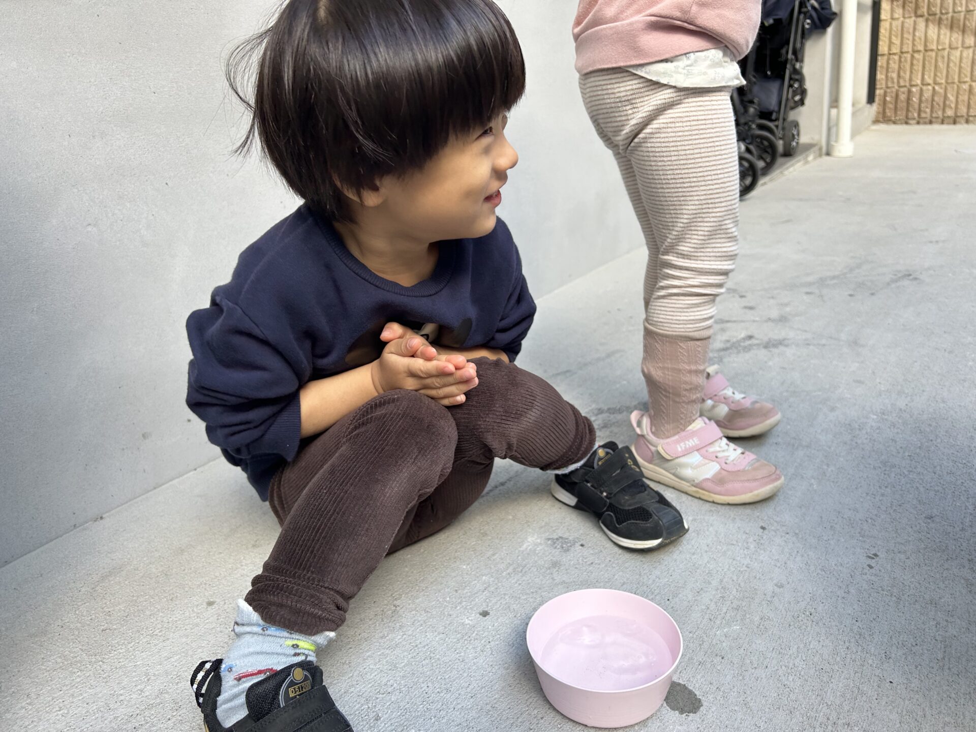 「つめたいよ~」と言いながらも大切そうに手に取る姿がとってもかわいらしいお友だち♪