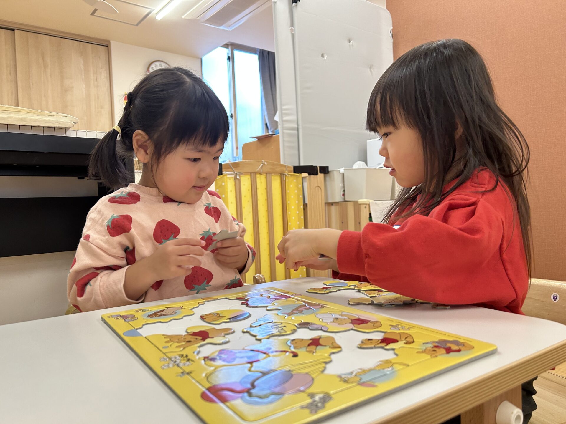 新しいパズルが増え、ワクワクして取り組み始めたお友だち。