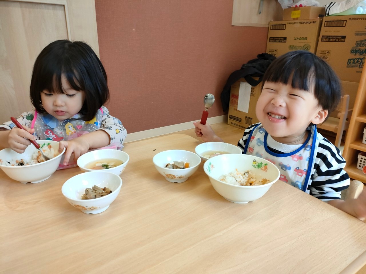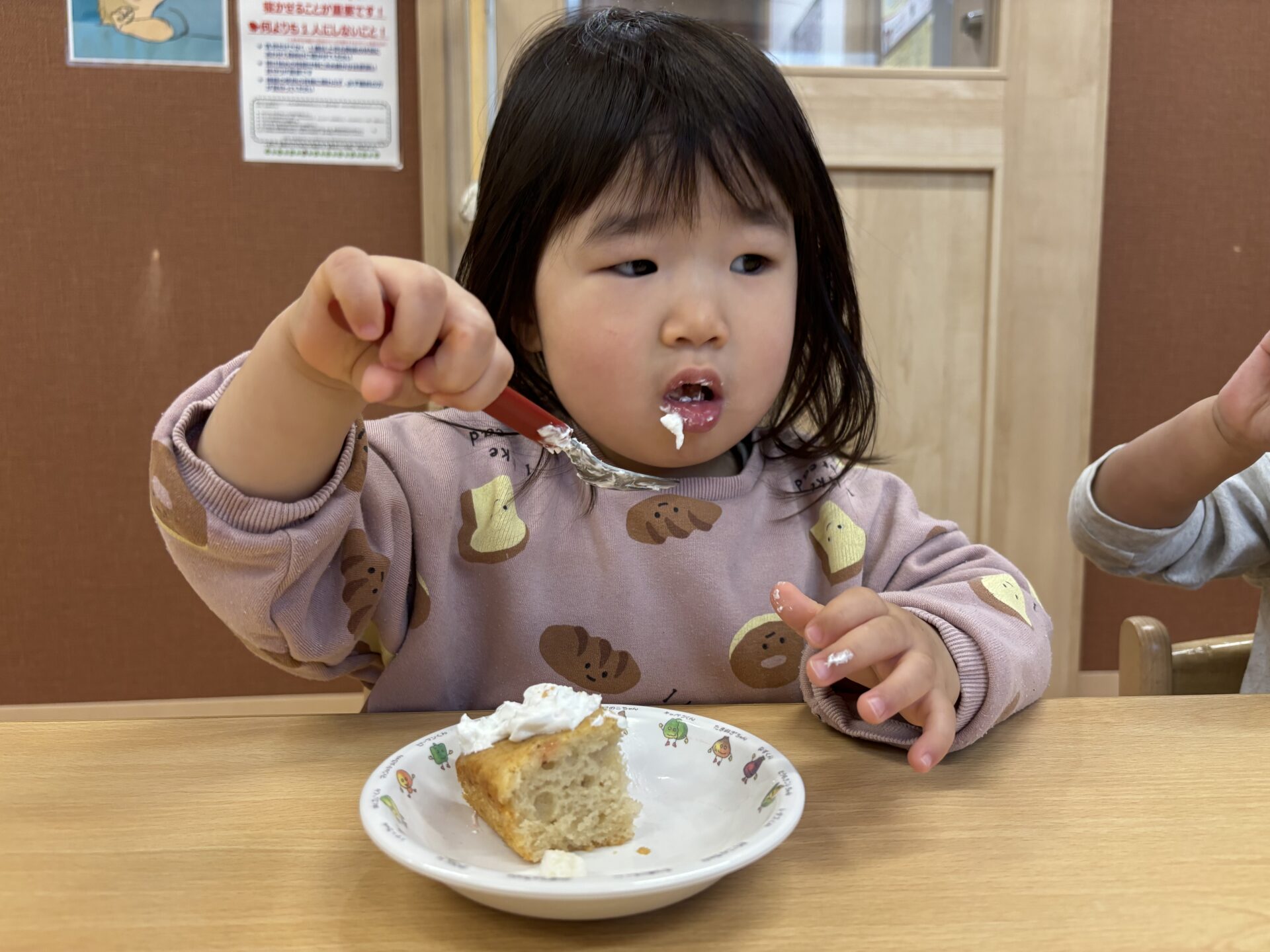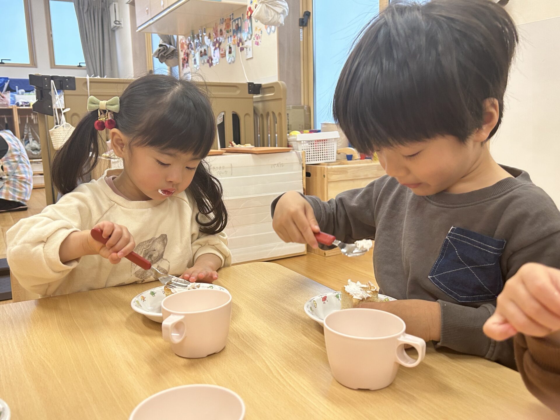 おいしそうなイチゴに目を輝かせ、「おいしいね!」「おかわりある?」と楽しそうにお喋りしていましたよ。