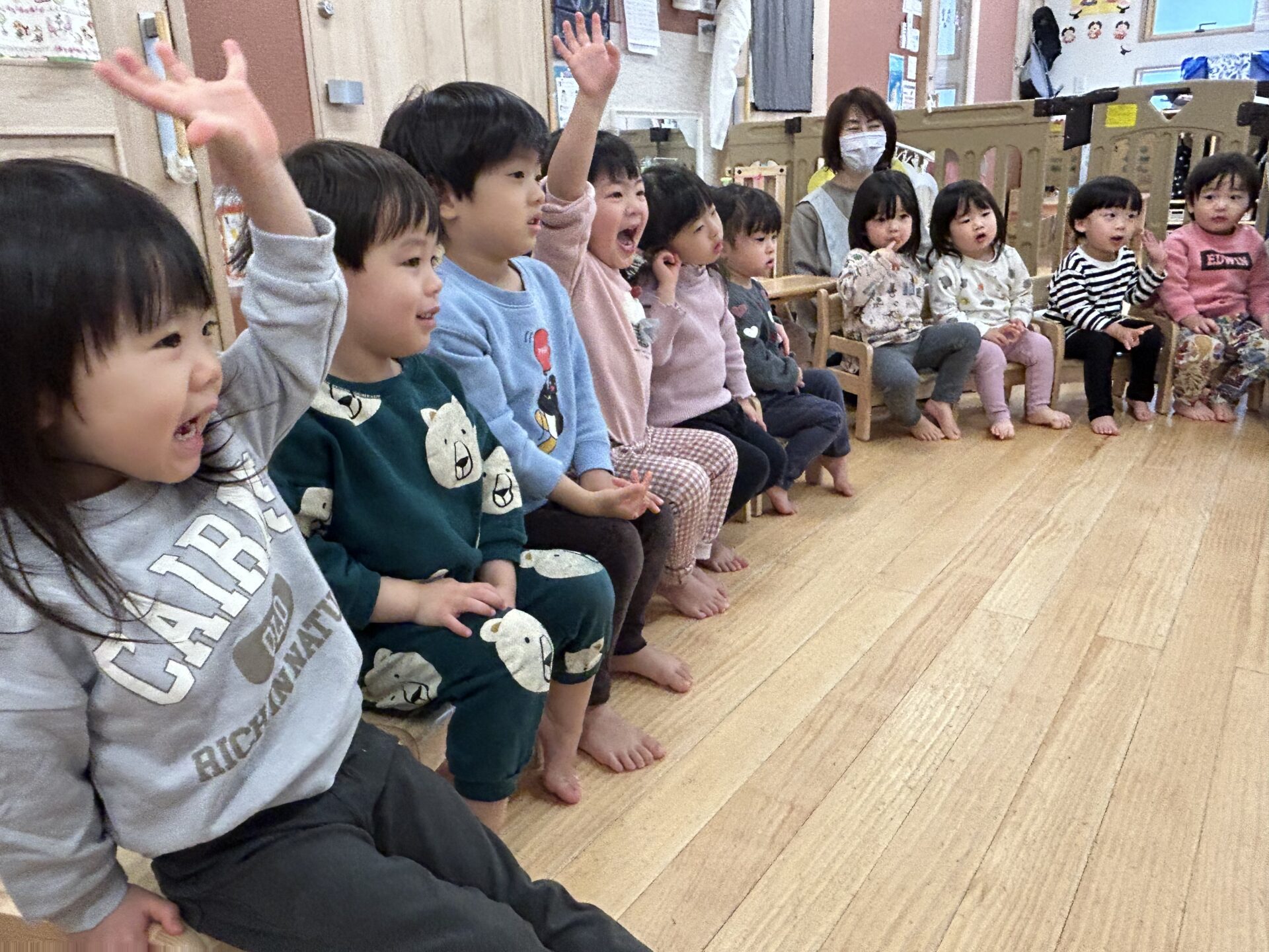 楽しいことがはじまるかなー?とワクワクしながら始まりを待っています。