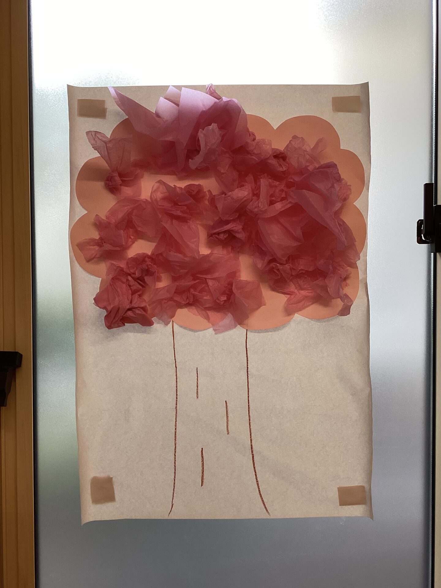 完成した桜の木はお部屋の窓に掲示しています♪