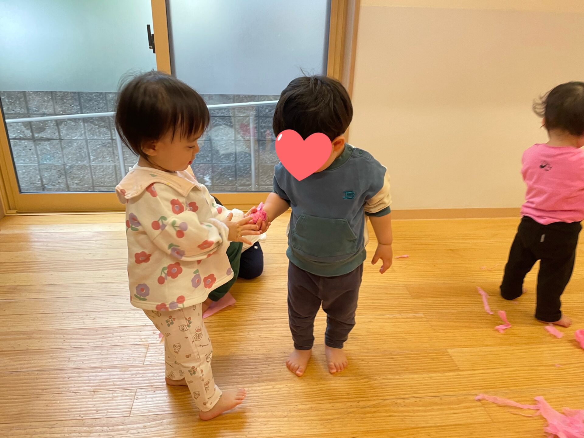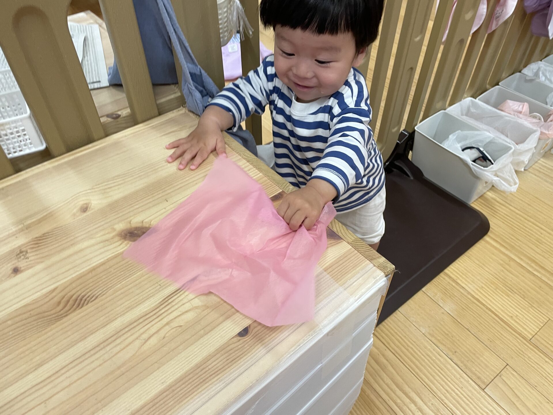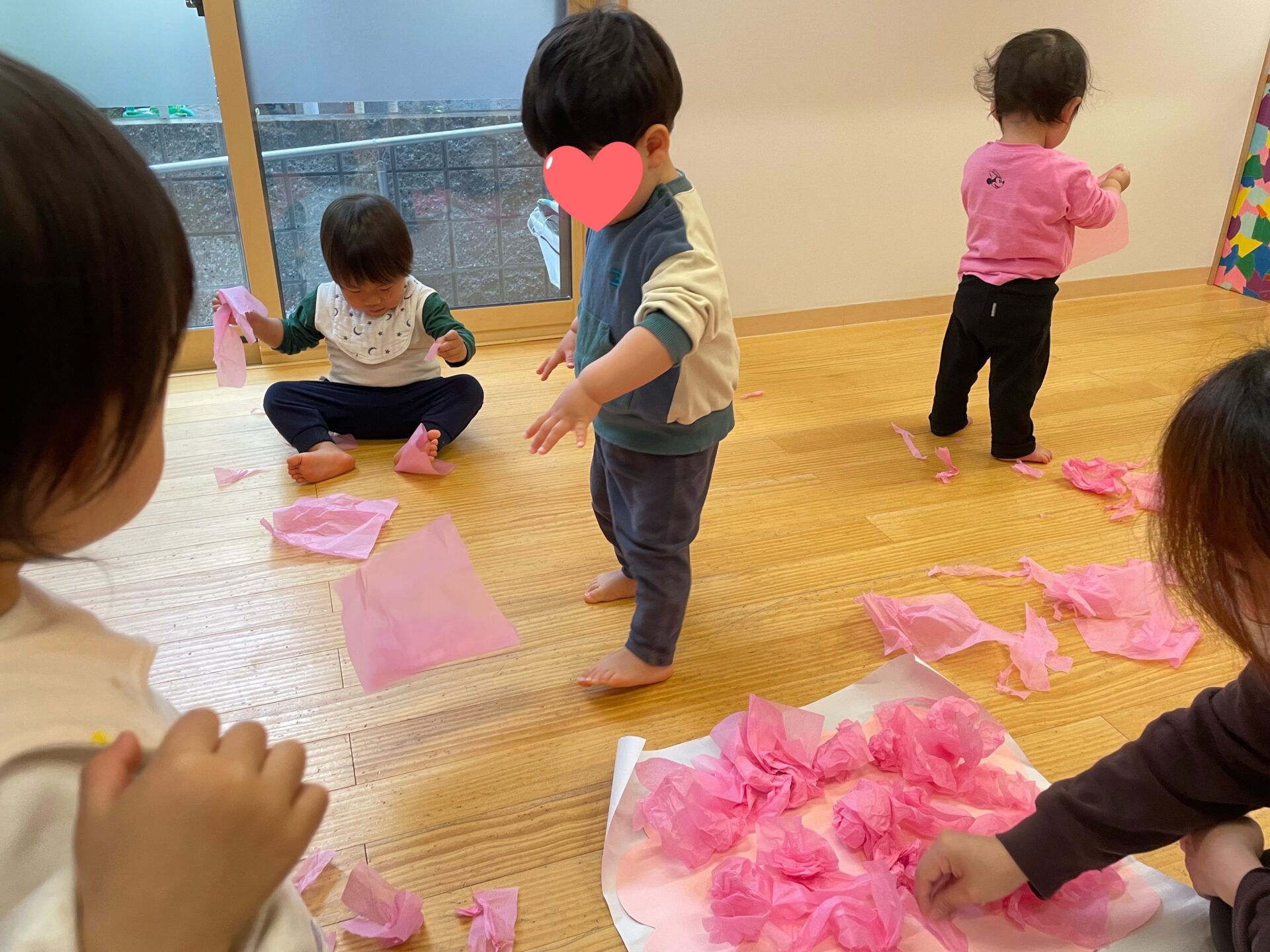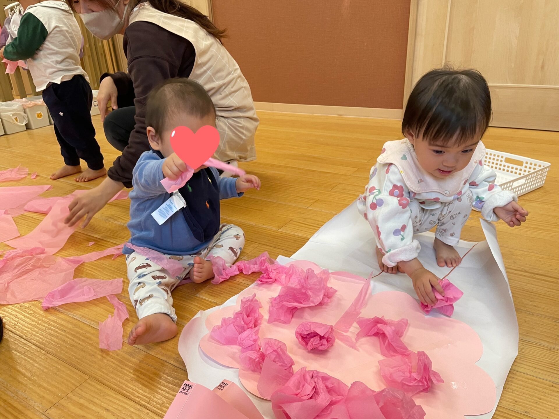 低月齢のお友達も、興味津々でお花紙に触れ、
