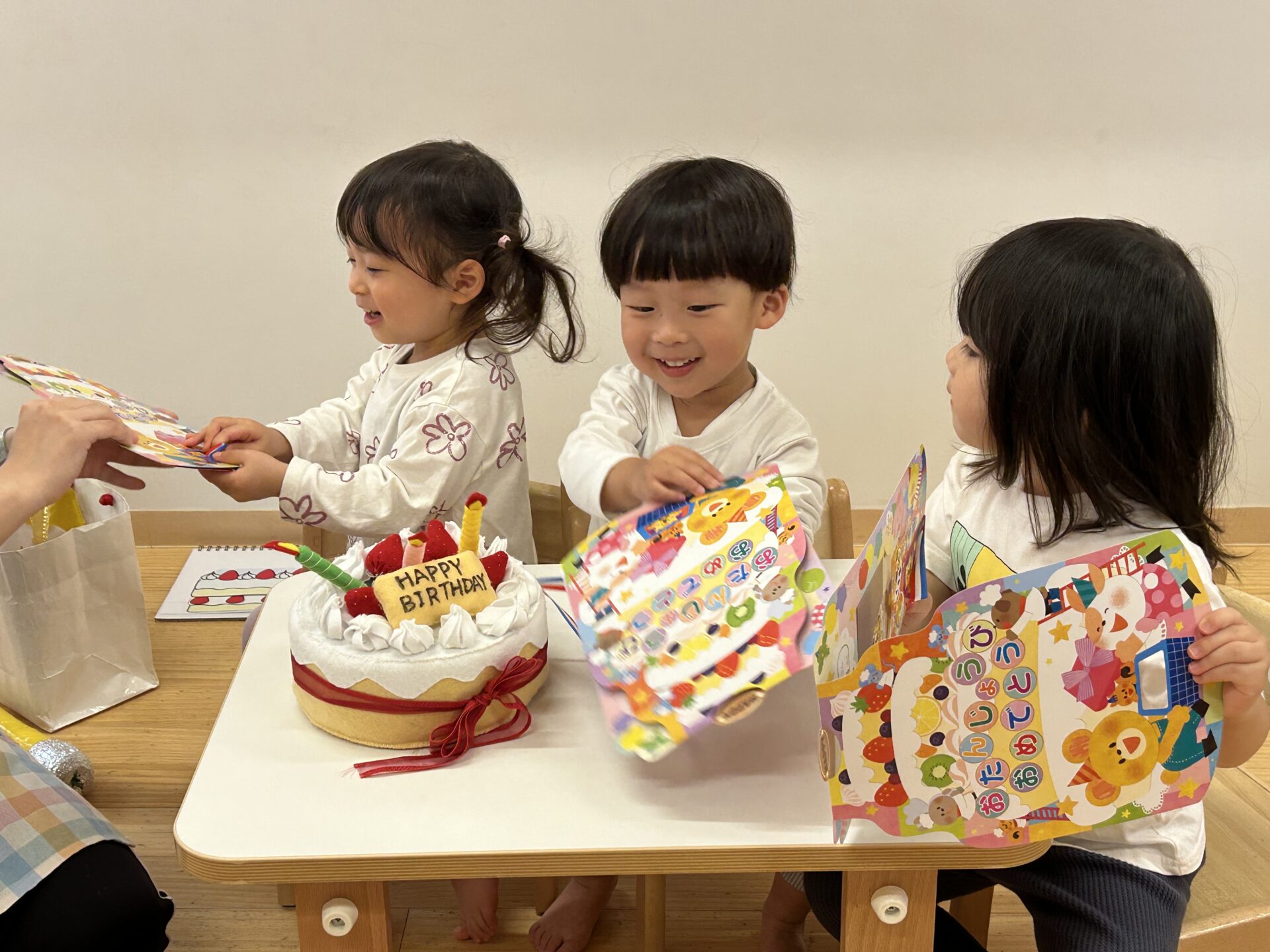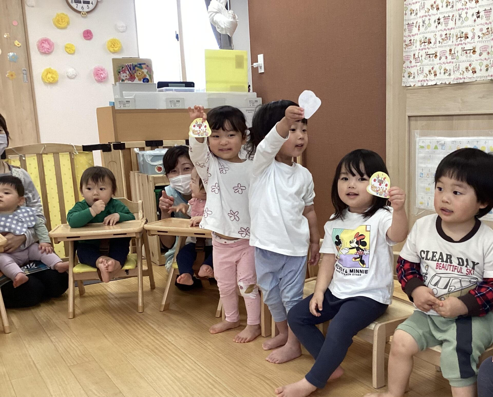 あめ組さんには、4月生まれのお友だちは4人いるので、朝からワクワクした表情を見せていた子どもたちです。