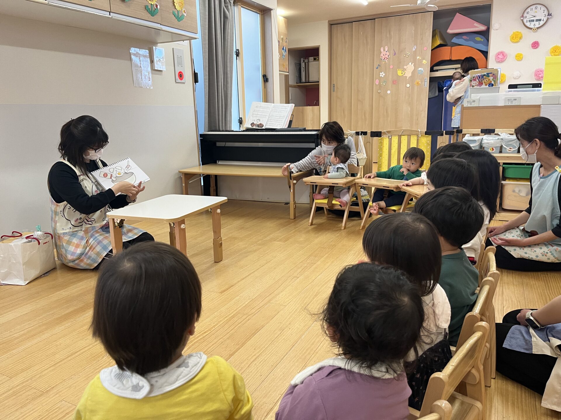 お歌に合わせて、一緒に歌ったり、手拍子をしたりと、みんな楽しそうです♩
