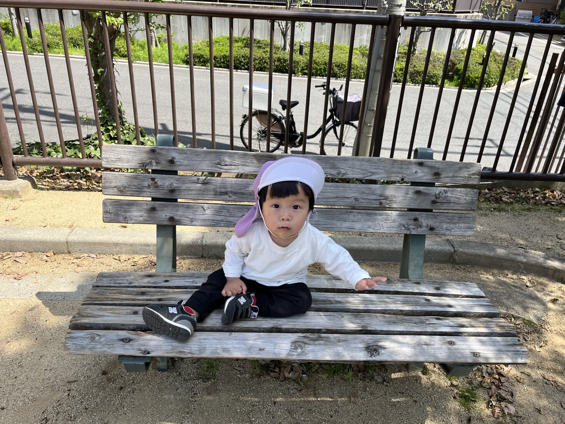 「先生も座って!」と言うように、ベンチを叩いてお誘いしてくれました♩