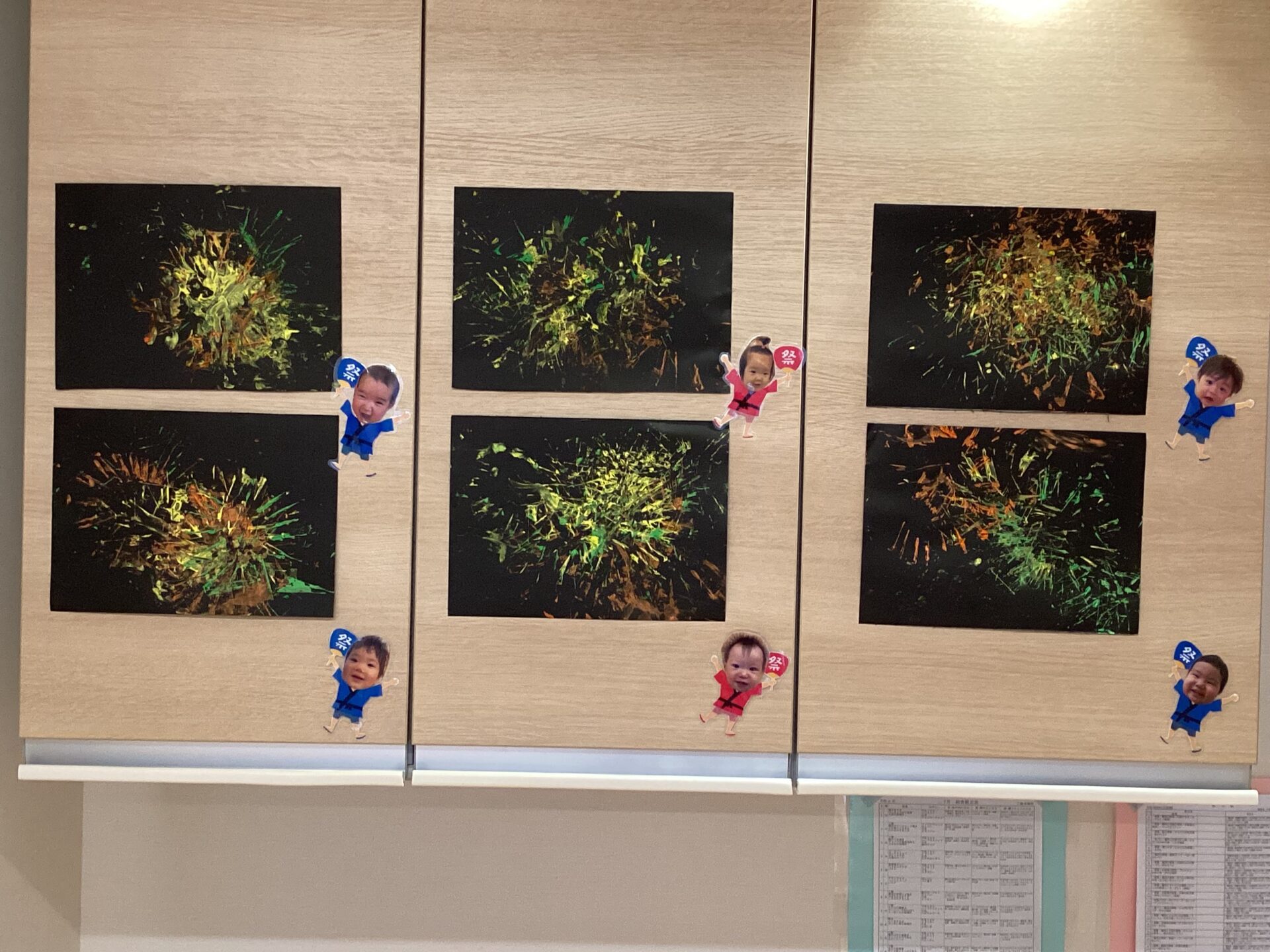 今月は、手形で海の生き物の制作をしたり、トイレットペーパーの芯をつかい、花火の制作をしました。