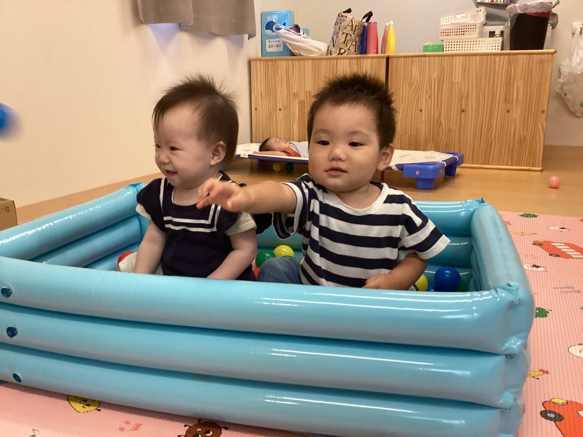 保育者が準備をしていると、『何が始まるんだろう』っと言った様子で見ていました。