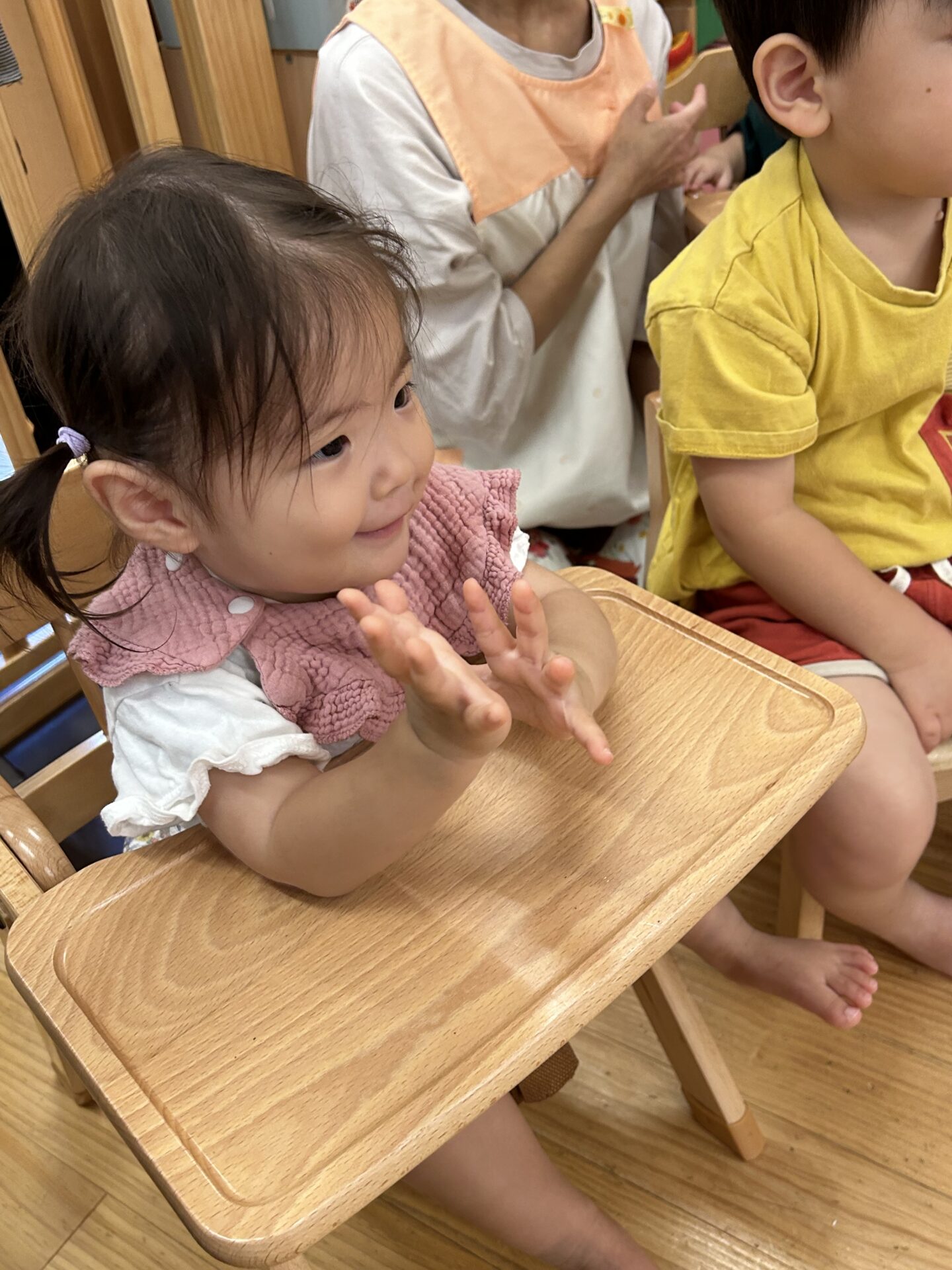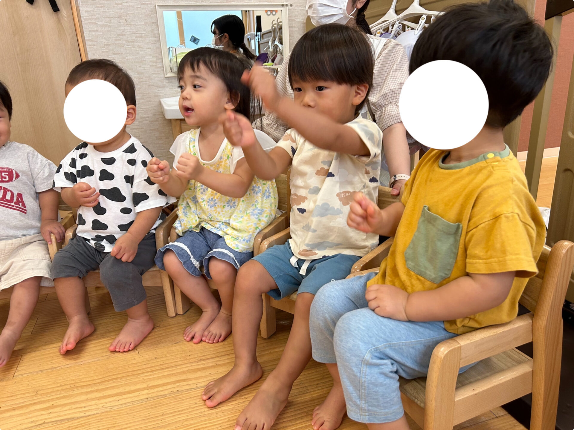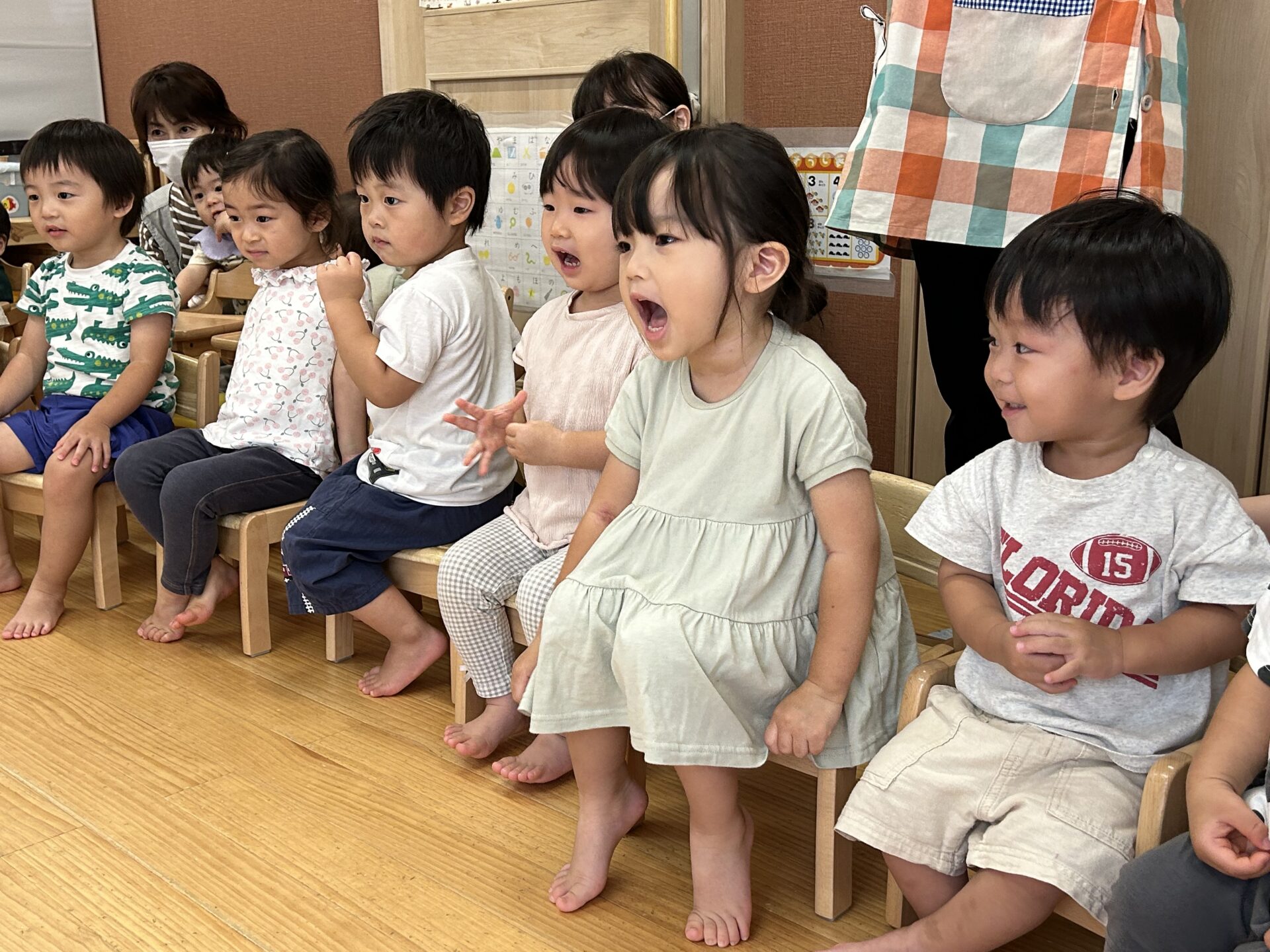 クイズの答えに正解し、「やったー!」と手を叩いて喜ぶだいち組・あめ組さんの姿を見て、