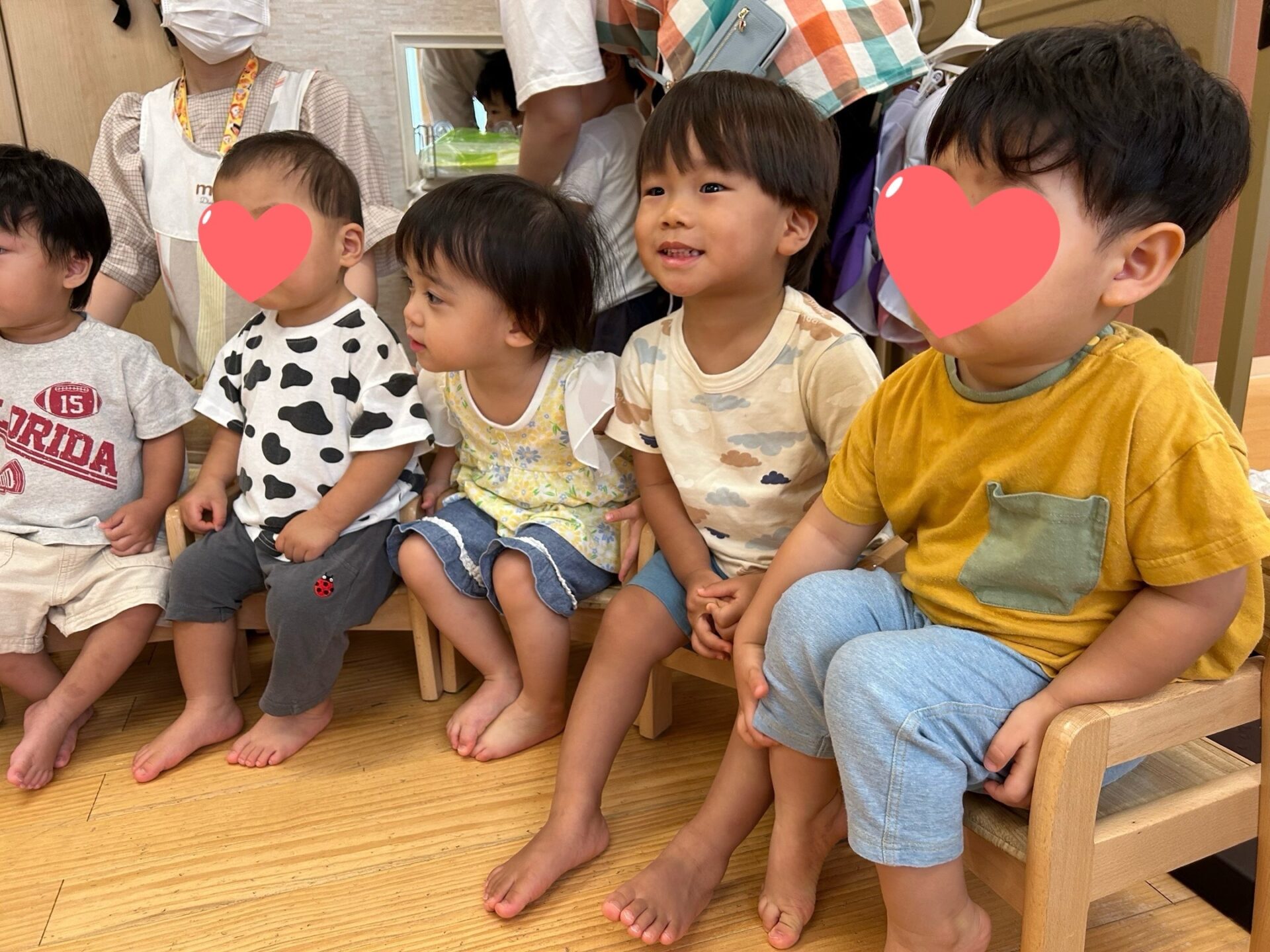 いつもは緊張知らずの主役のお友達ですが、みんなからじーっと見られる状況に恥ずかしくなり、何だか照れたような笑顔を見せていました🫣