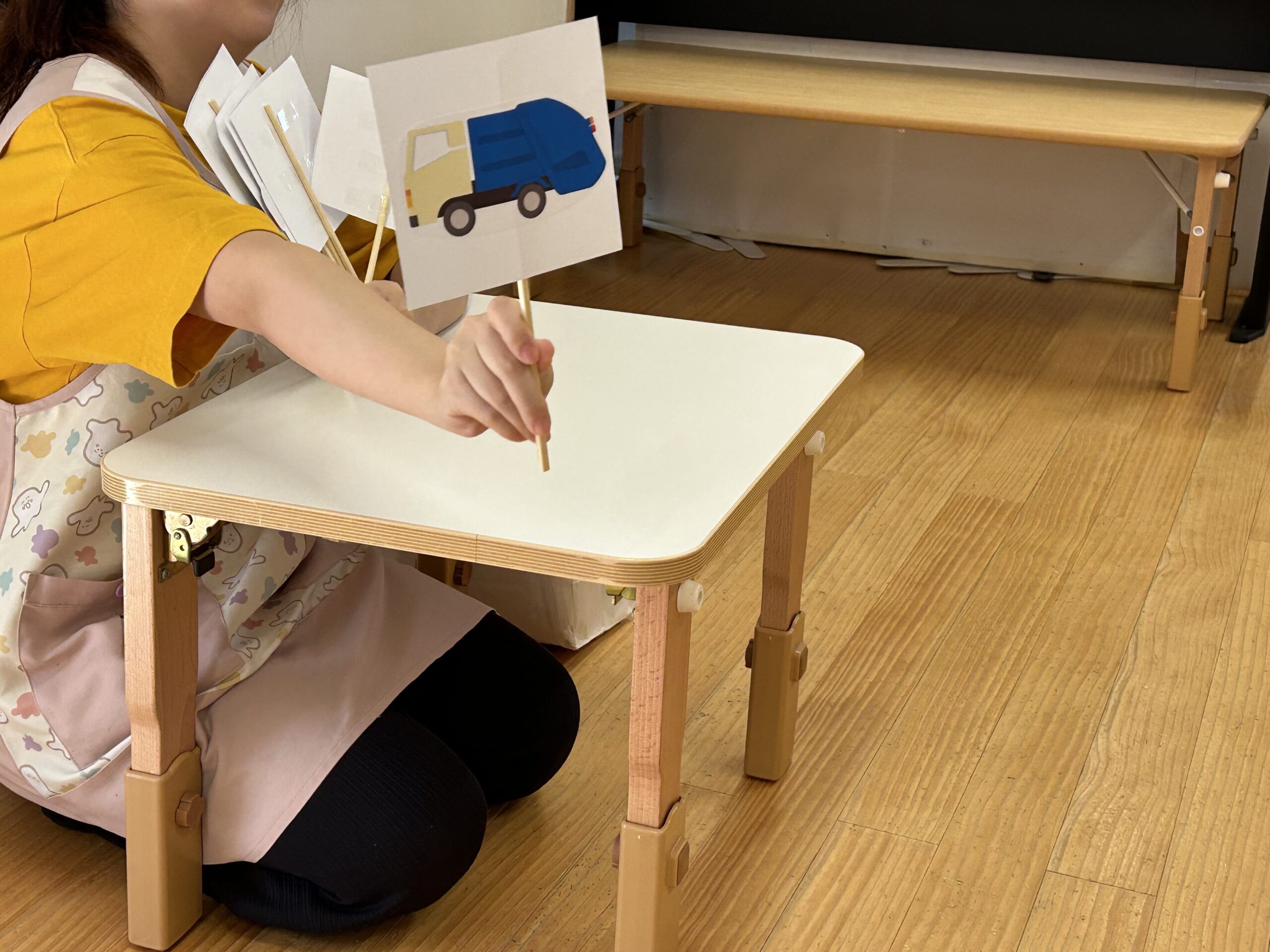 それでも大好きなはたらくくるまの力を借り、「好きなはたらくくるまはなんですか?」という質問には「ごみしゅーしゅーしゃ」と答えることができました!
