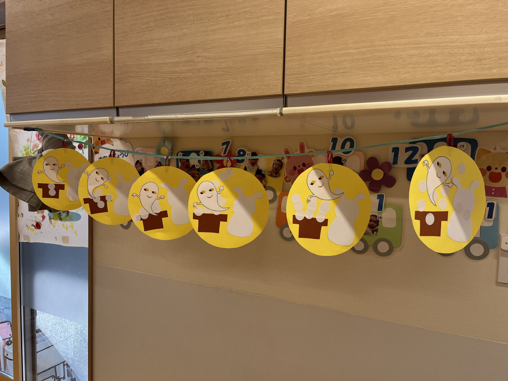 今回はお月見団子に見立てた白のシールを子どもたちに貼ってもらうことにしました。