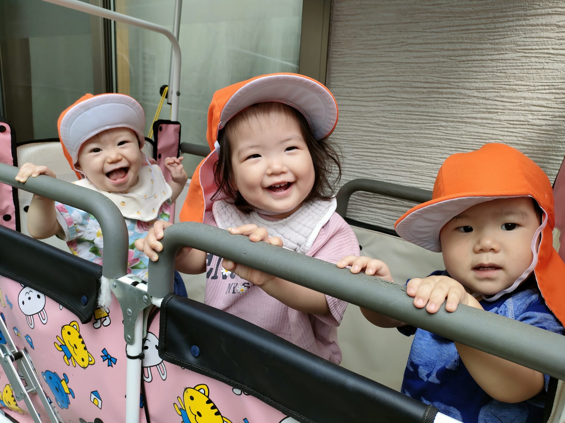 車や、風で揺れる葉っぱなど、見るもの全てが新鮮で、目をキラキラさせながら見ていますよ。