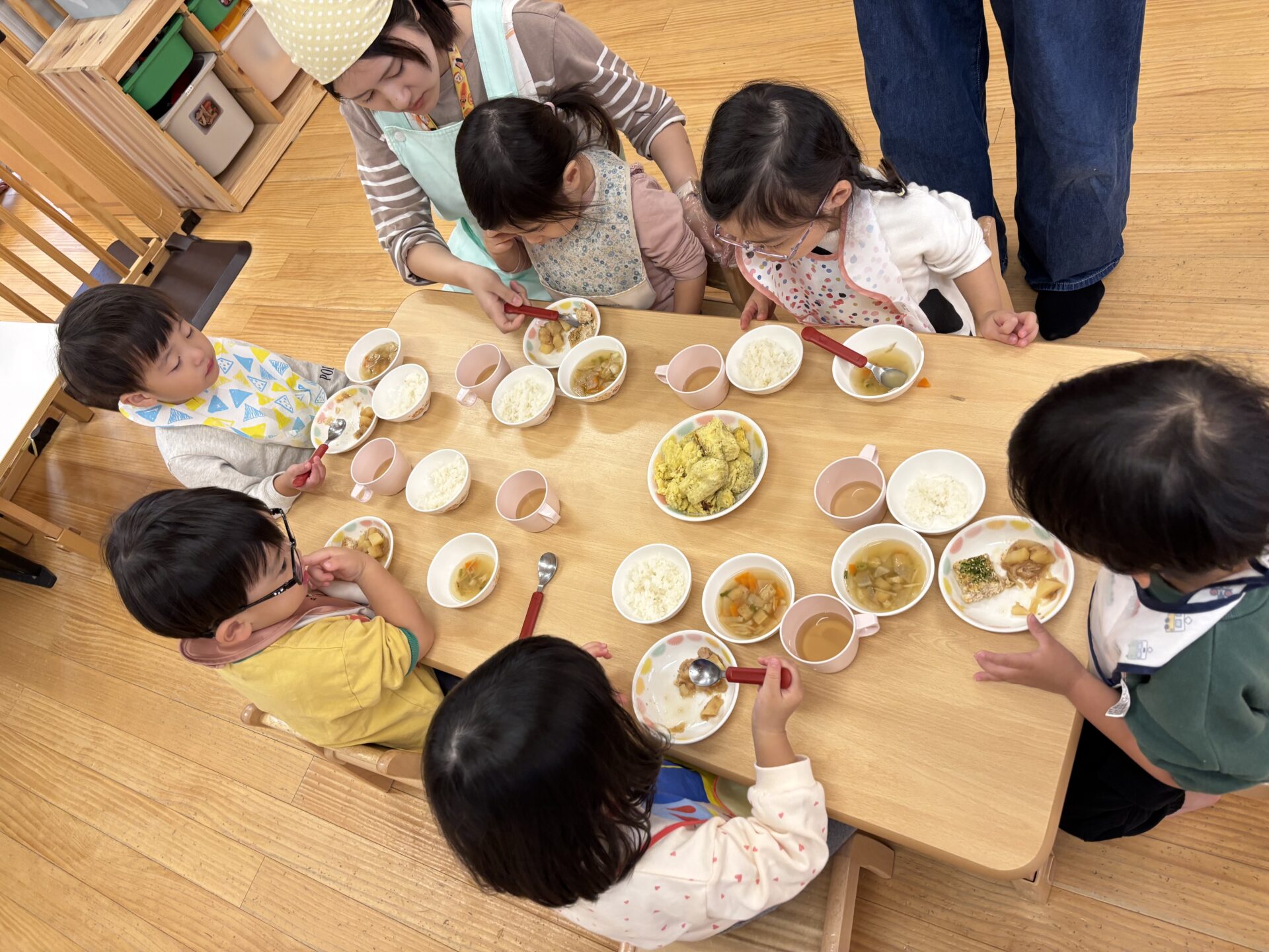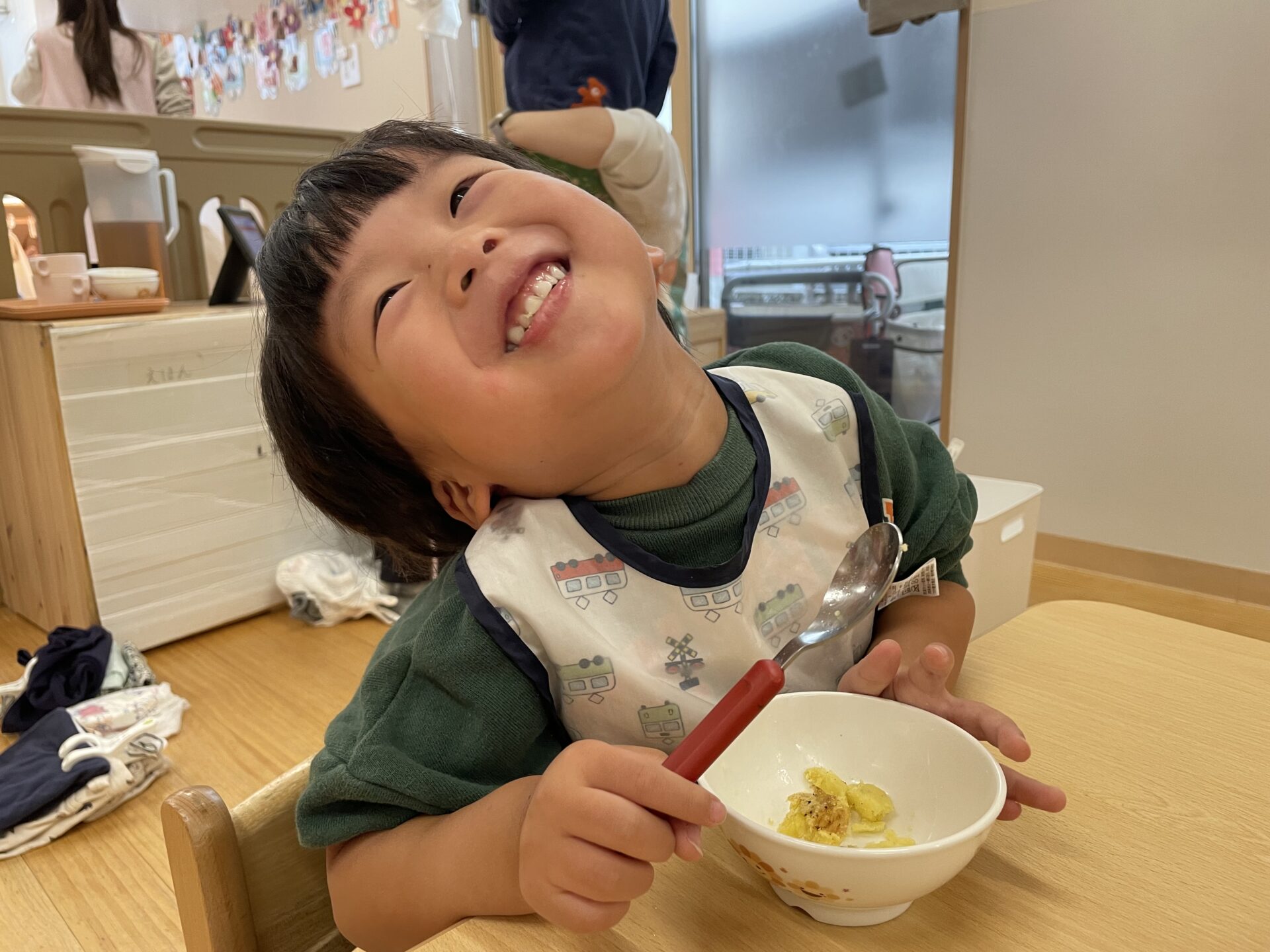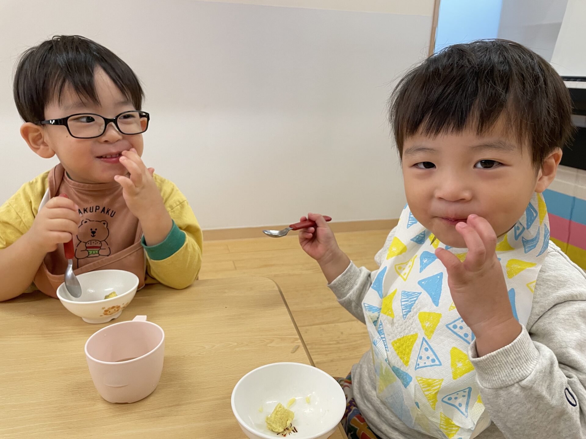 完成したお芋を給食後に食べると、自分で焼いたお芋は一味違う美味しさだったようで、「スペシャル焼き芋だね!」「めーっちゃ美味しい!」と笑顔の子どもたち☺️素敵な体験になりました✨