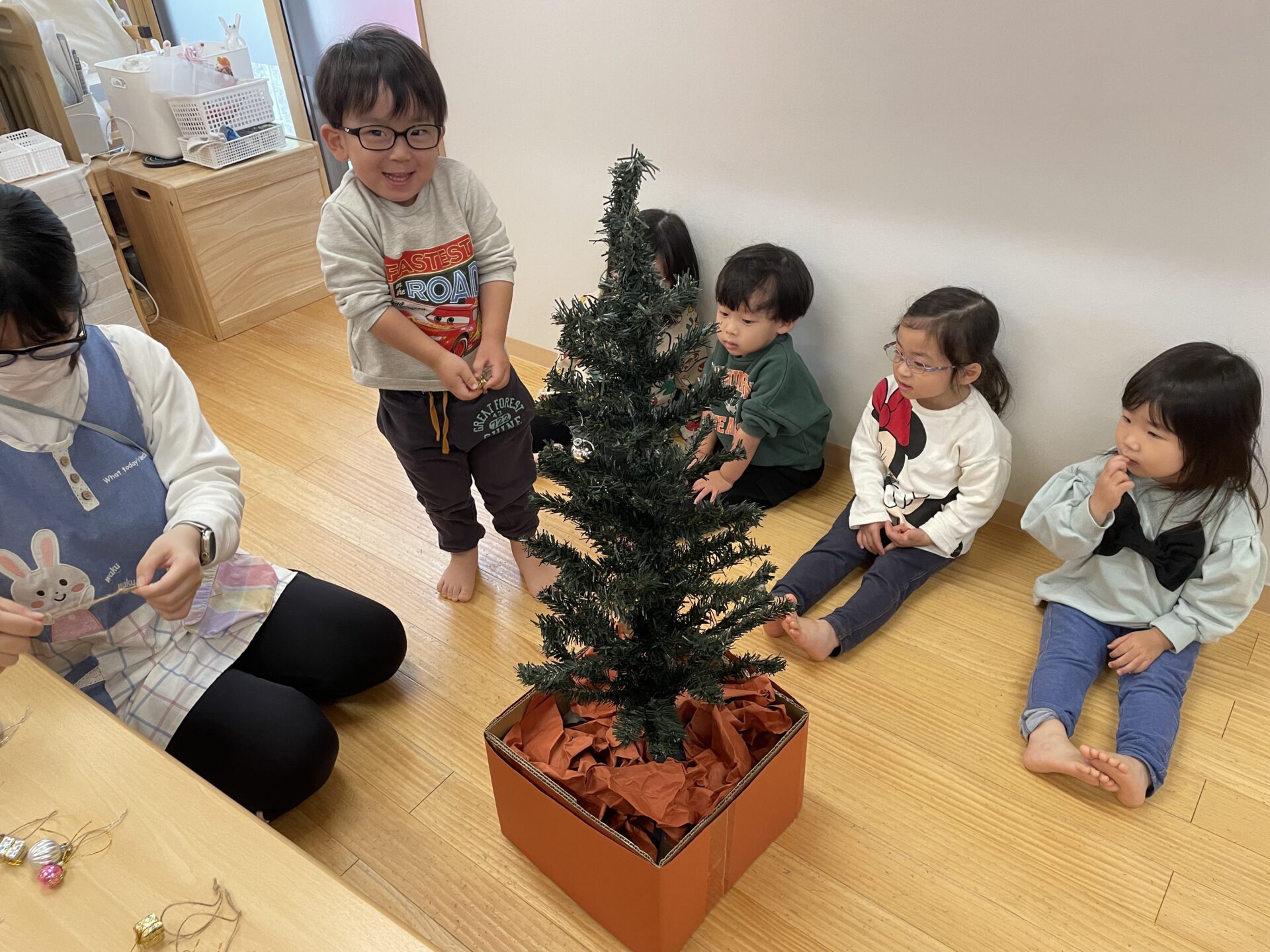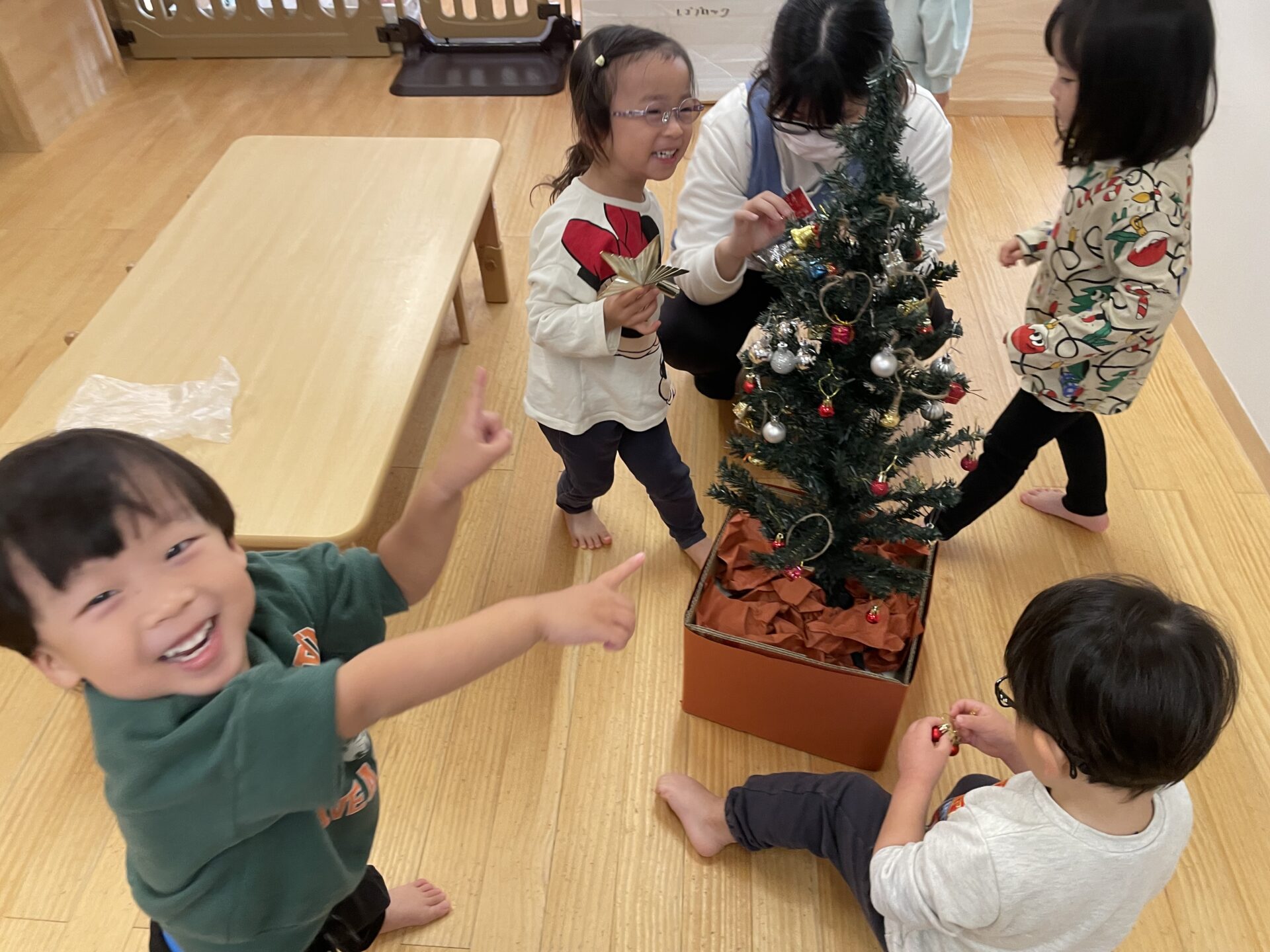 先日は、保育園でもクリスマスツリーの飾り付けを行いました。