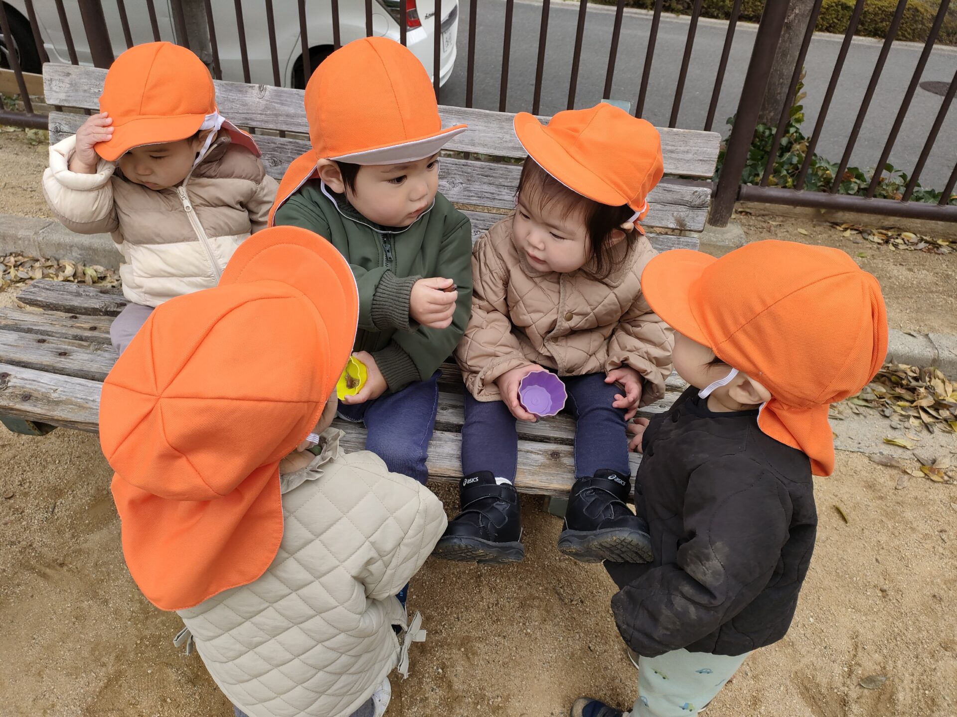 公園では、「どうぞ」とお裾分けしたり、もらったものを食べる真似をしたりと、仲良くごっこ遊びが始まっていましたよ😊