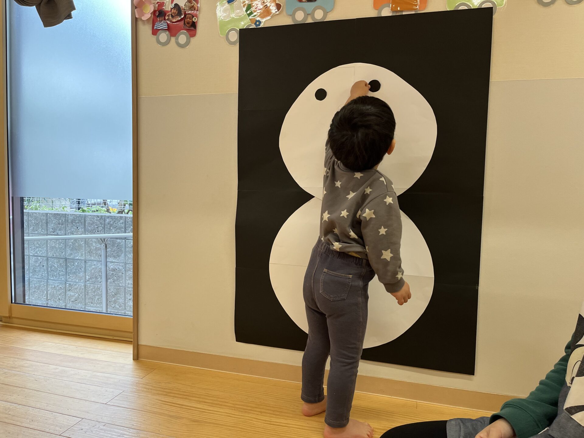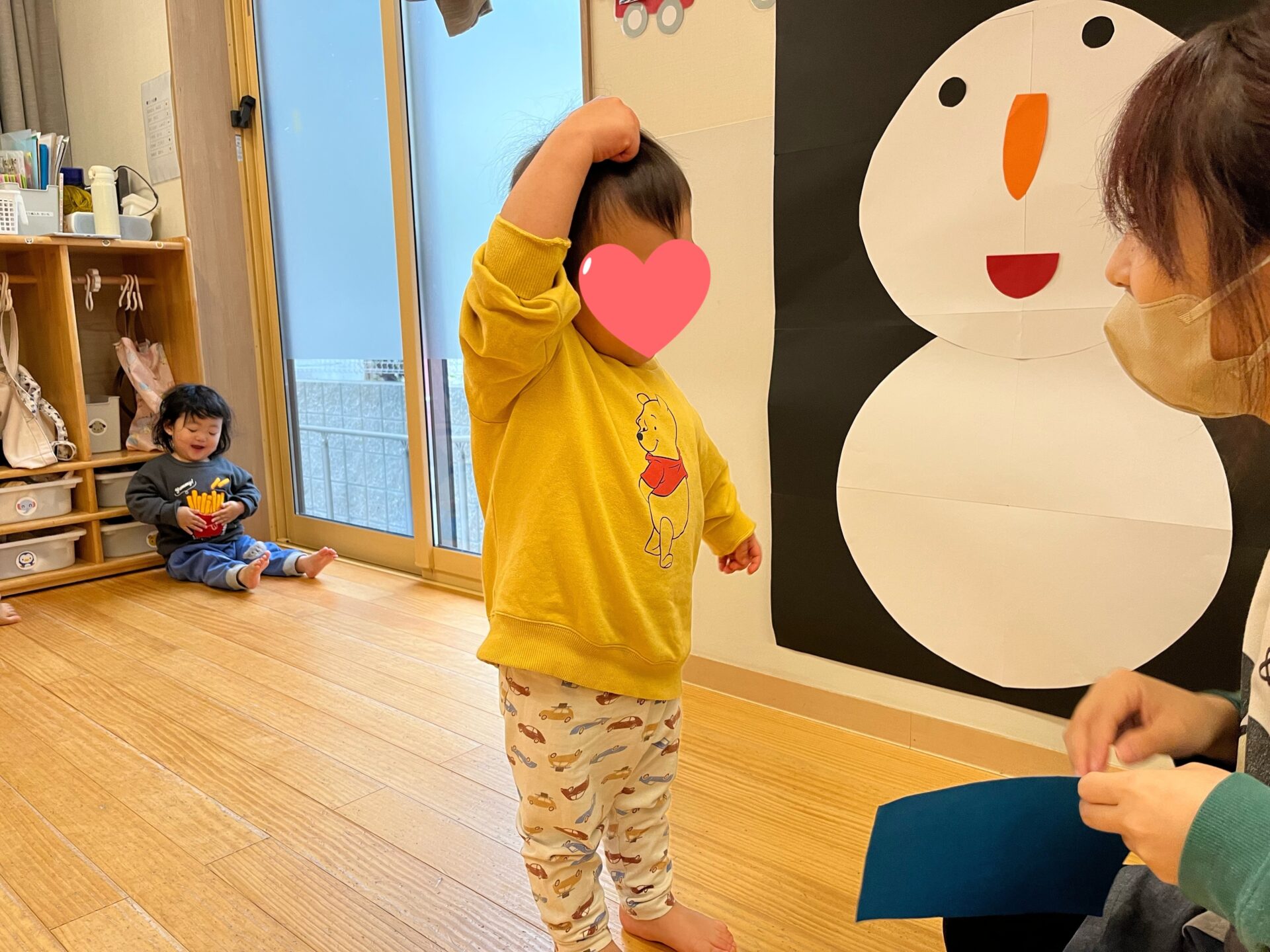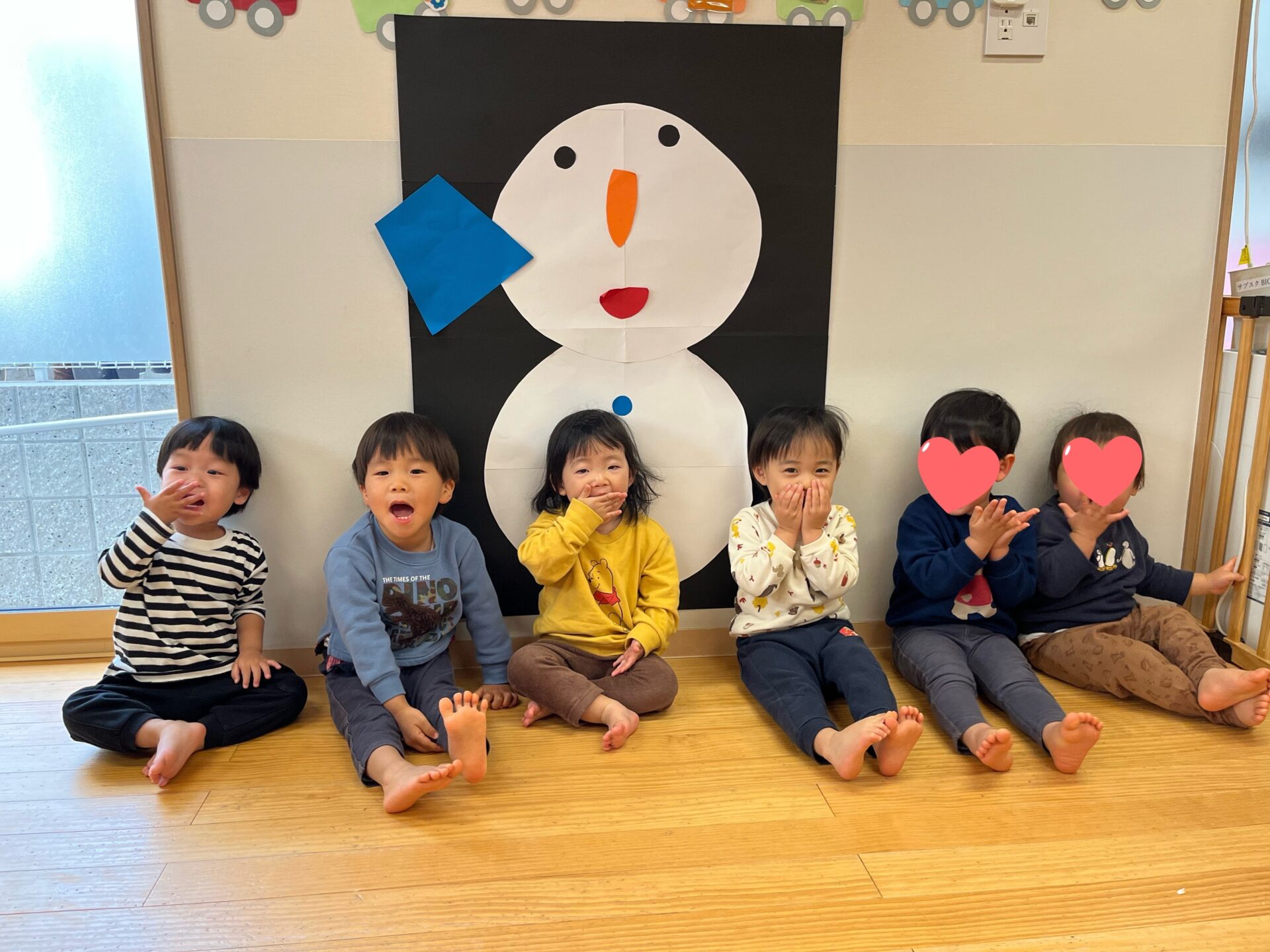 「今日これするの?」「ゆきだるまさん!」「お顔ないね〜」と朝から楽しみにしてくれていた子どもたちです😊