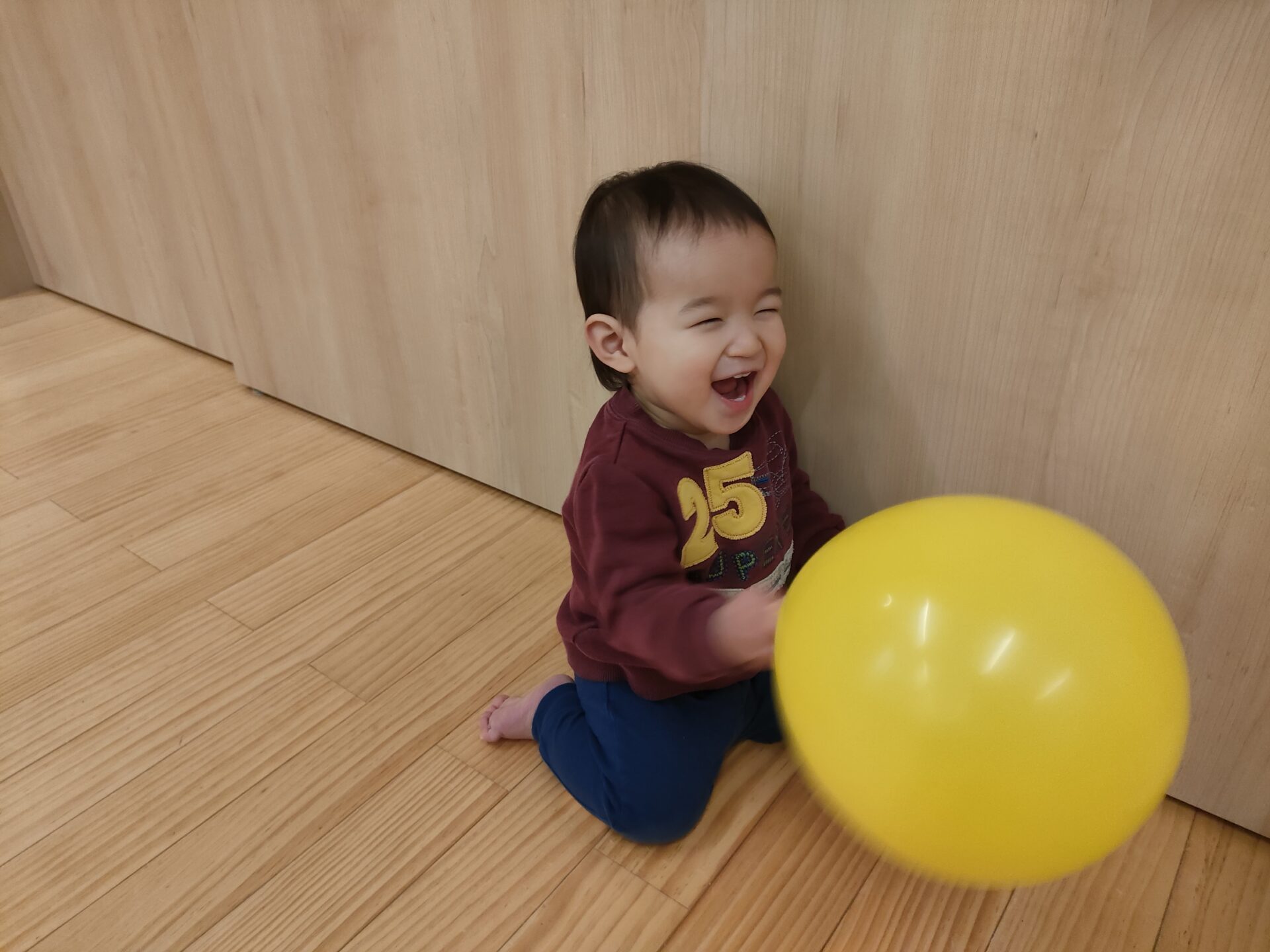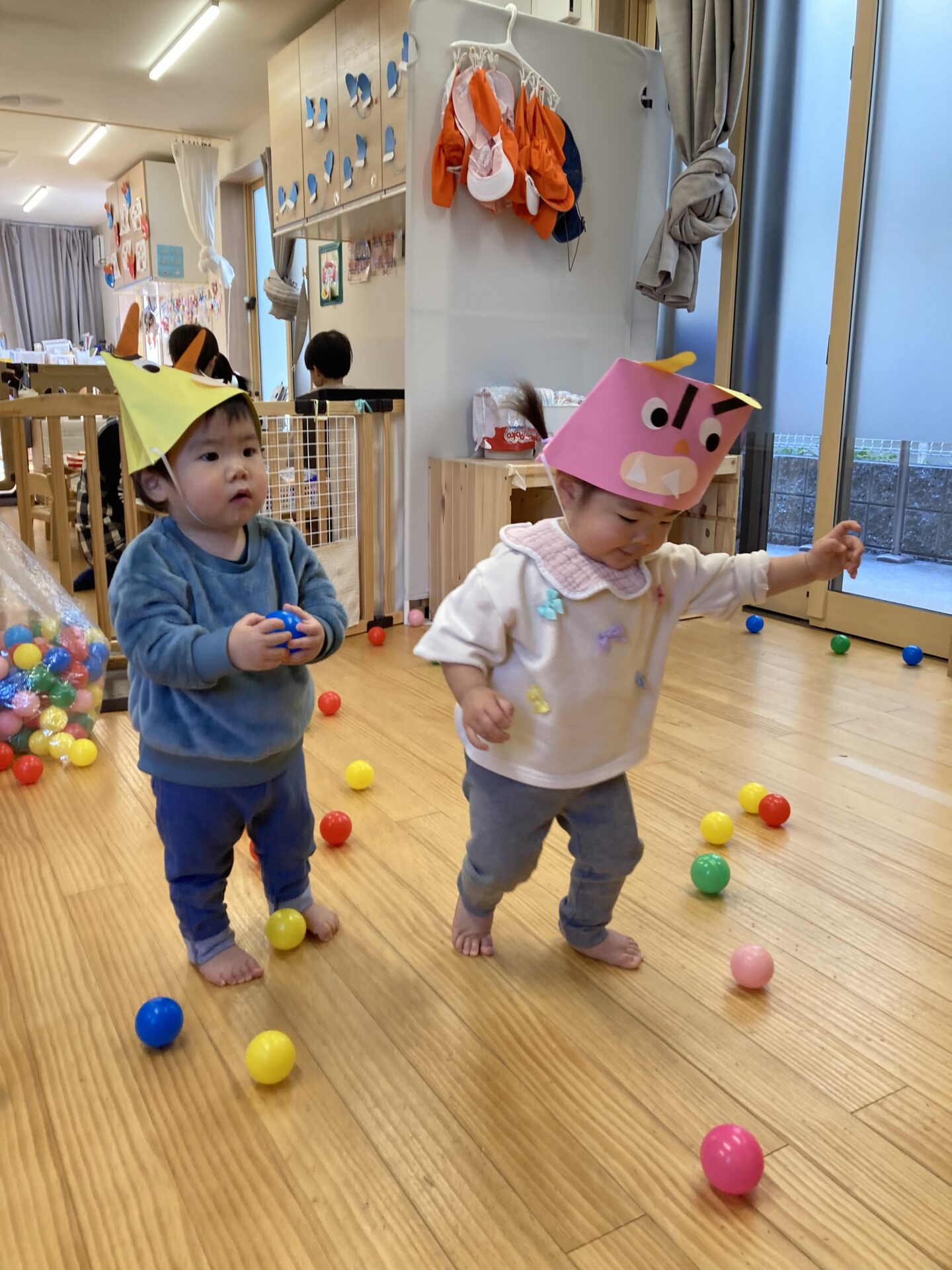 くじら小規模保育園は、カラーボールを使って、豆まきをします。