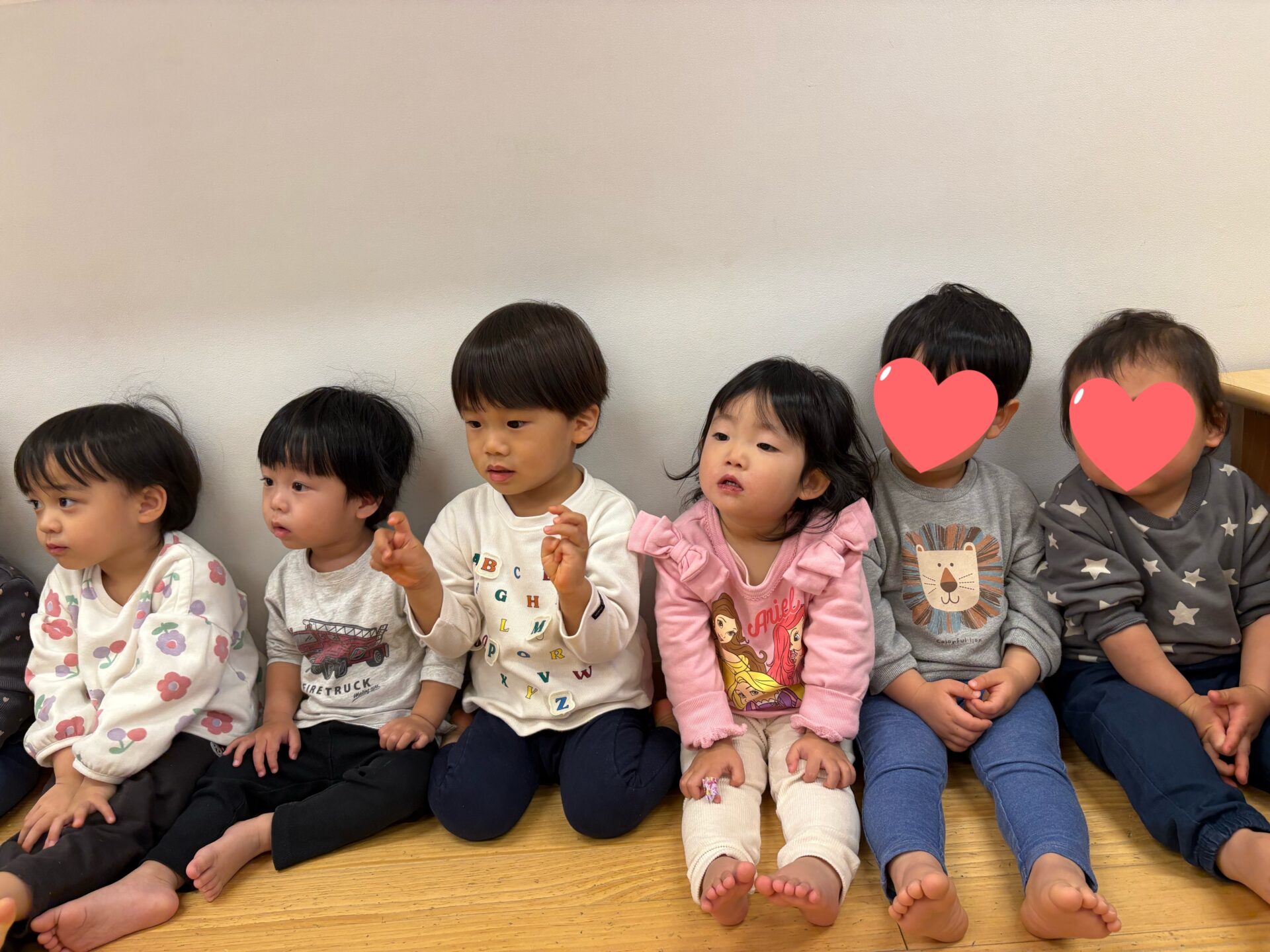 保育者が節分にまつわるクイズを出すと、真剣な表情で聞くだいち組さんです。