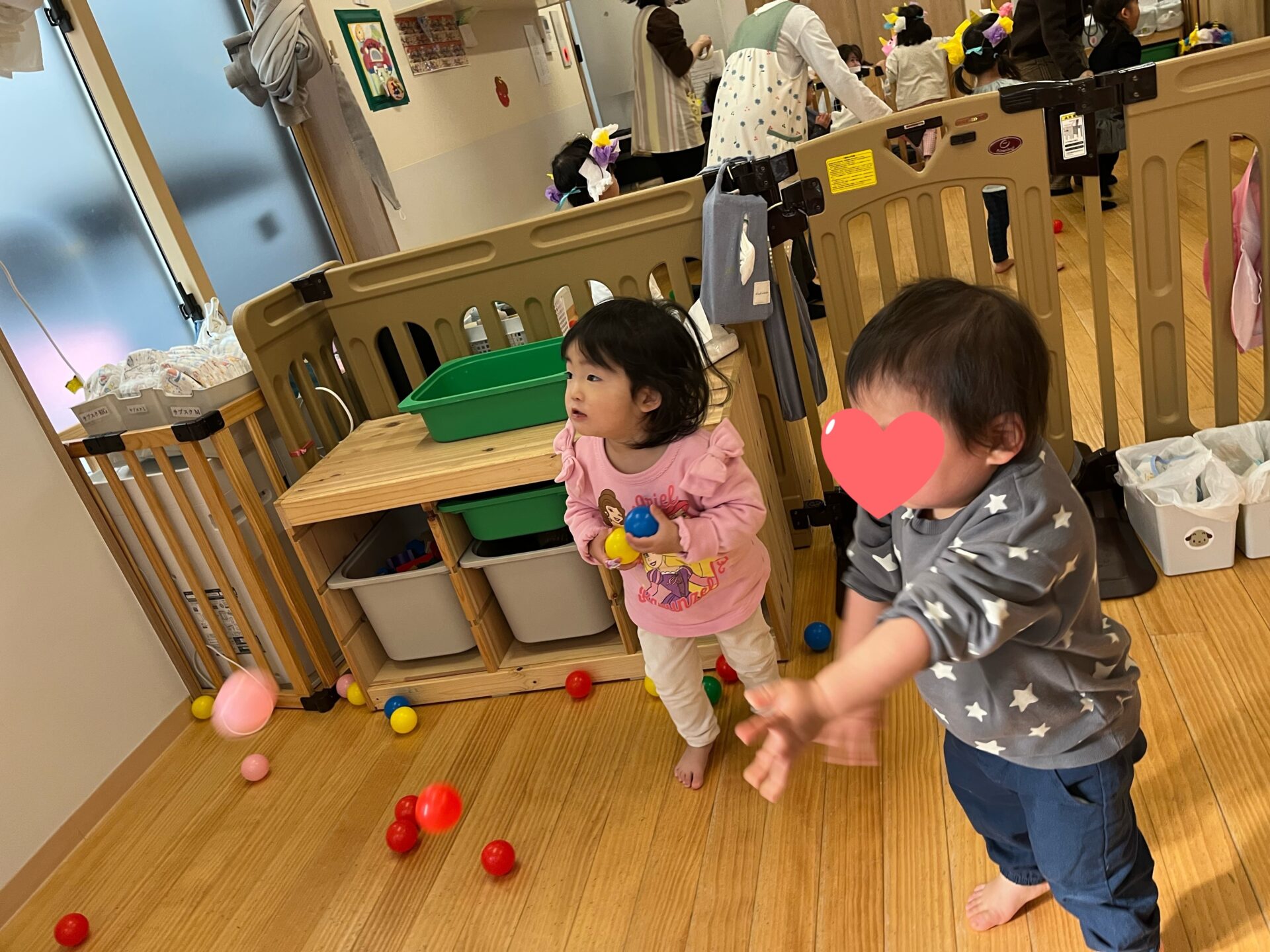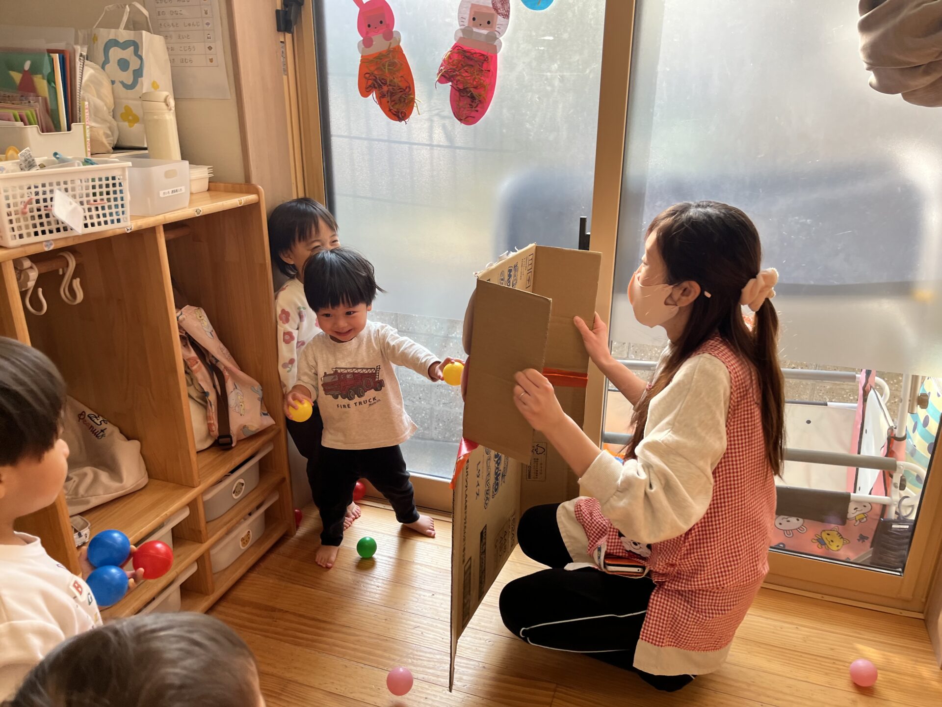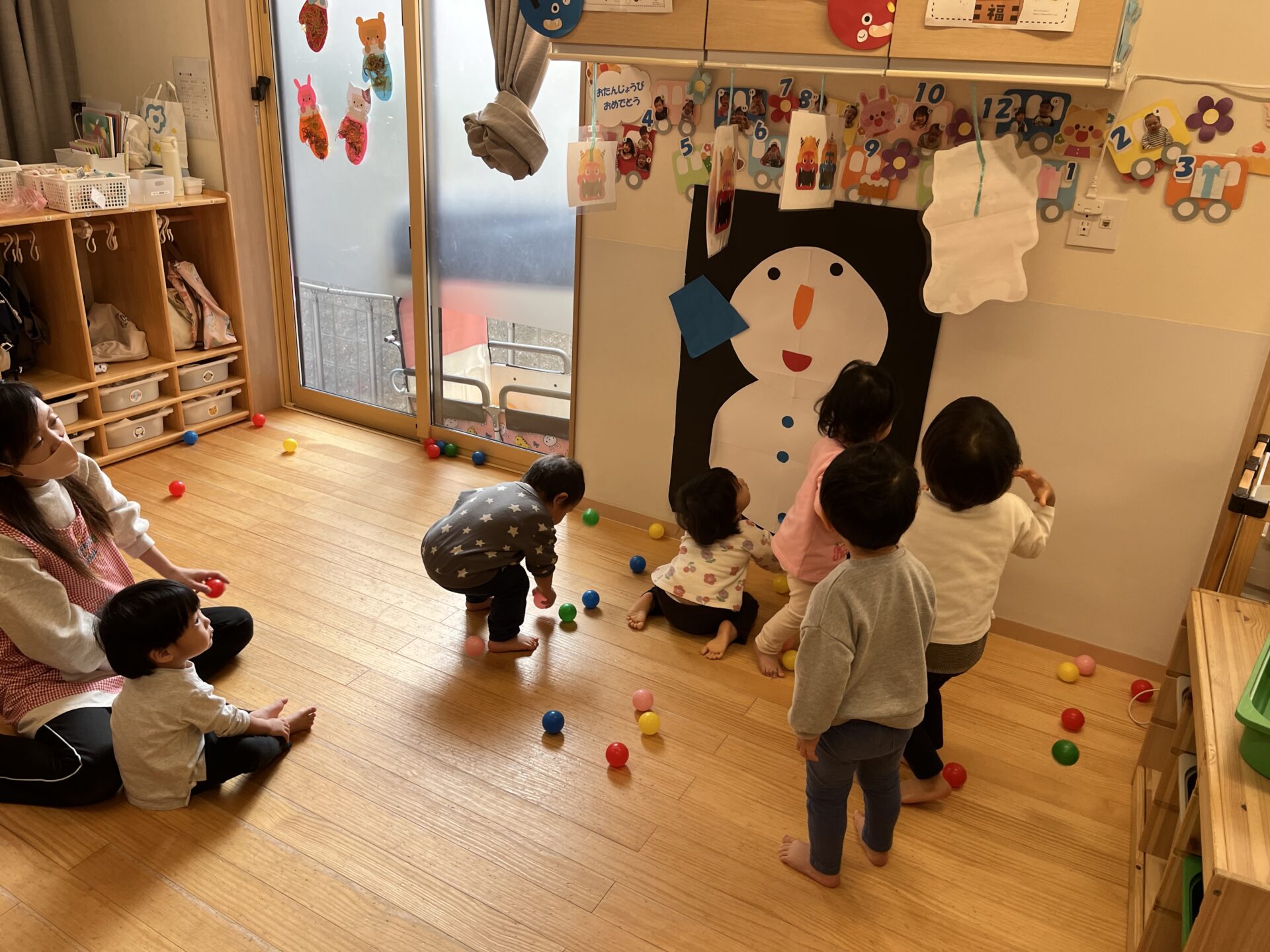 今回は豆の代わりにカラーボールを投げることにしました。