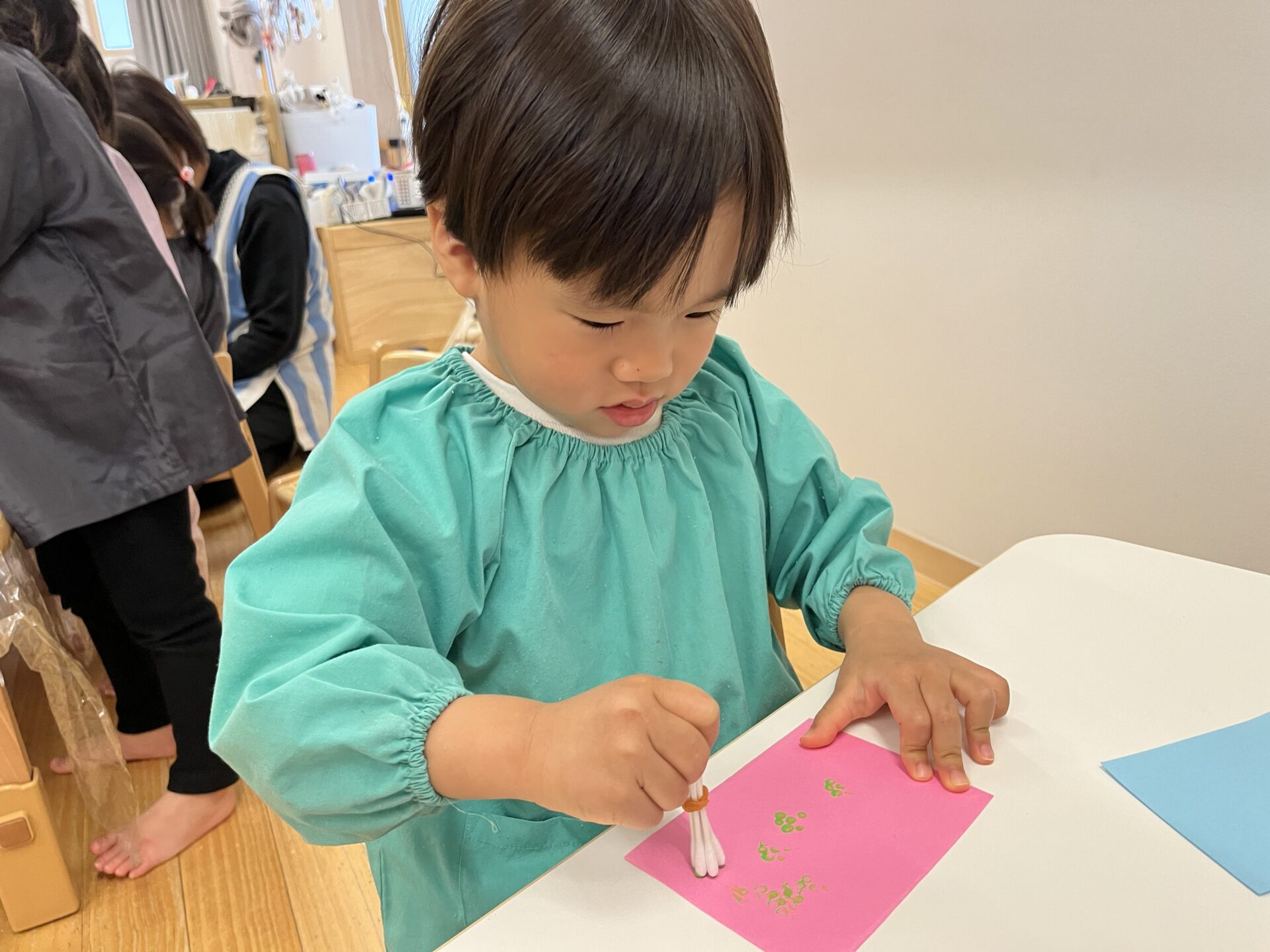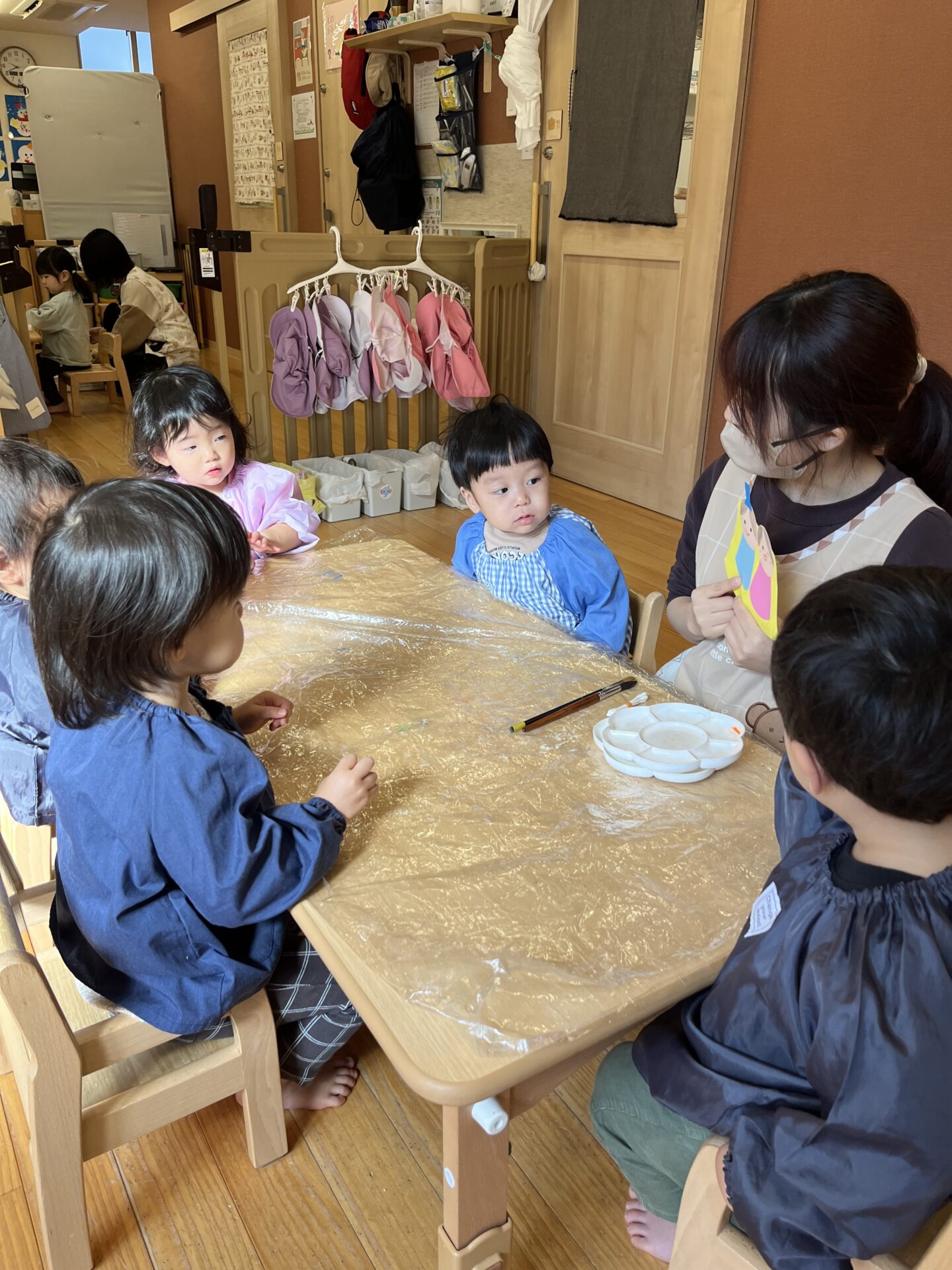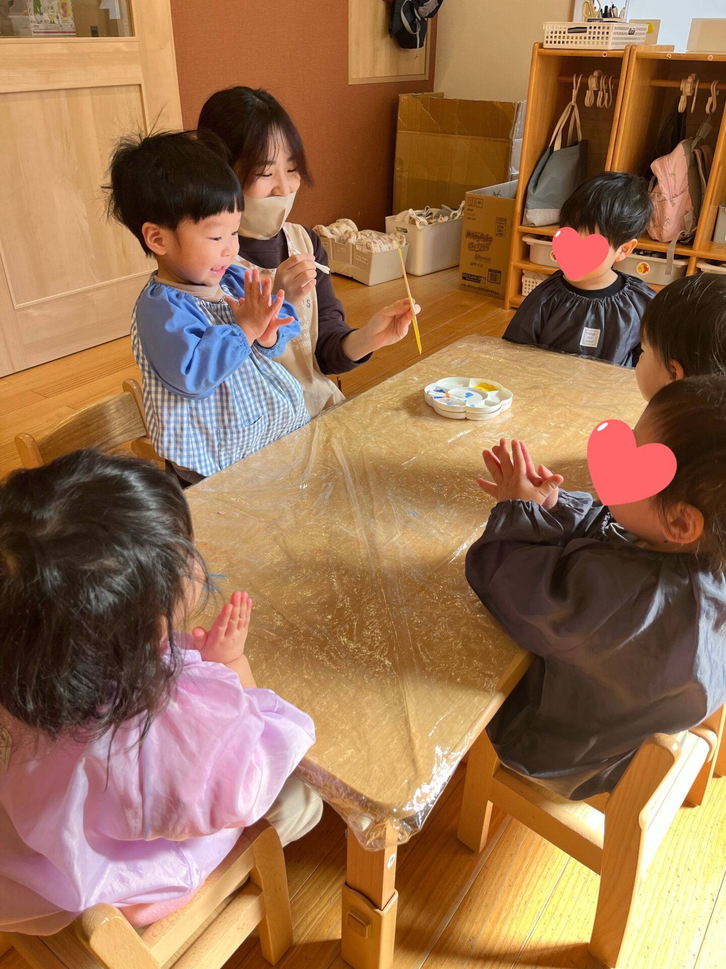 完成した見本を見て、「かわい〜!」「先生すごーい!」「〇〇ちゃんもやるー!」と喜んでくれました😊