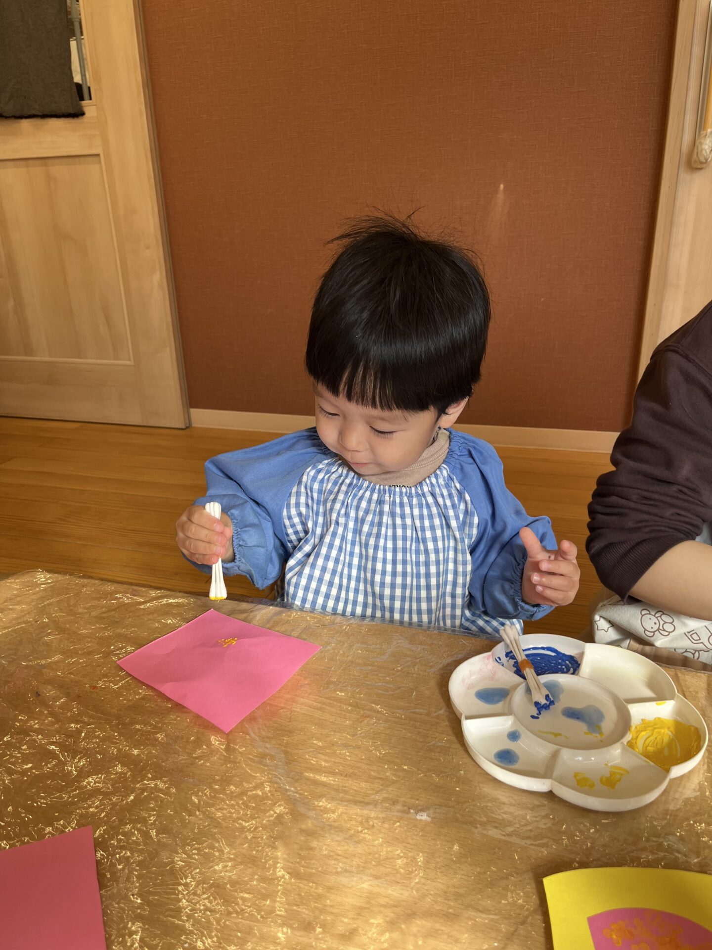 子どもたちも綿棒をそっと持ち、思い思いにスタンプしました!