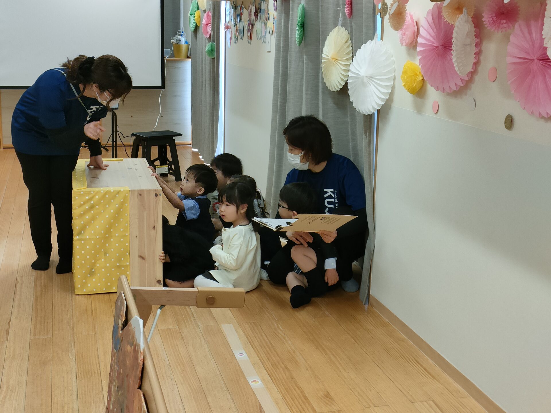 楽しいスライドショーの後は、みんなで一生懸命練習した劇『てぶくろ』を発表しました。