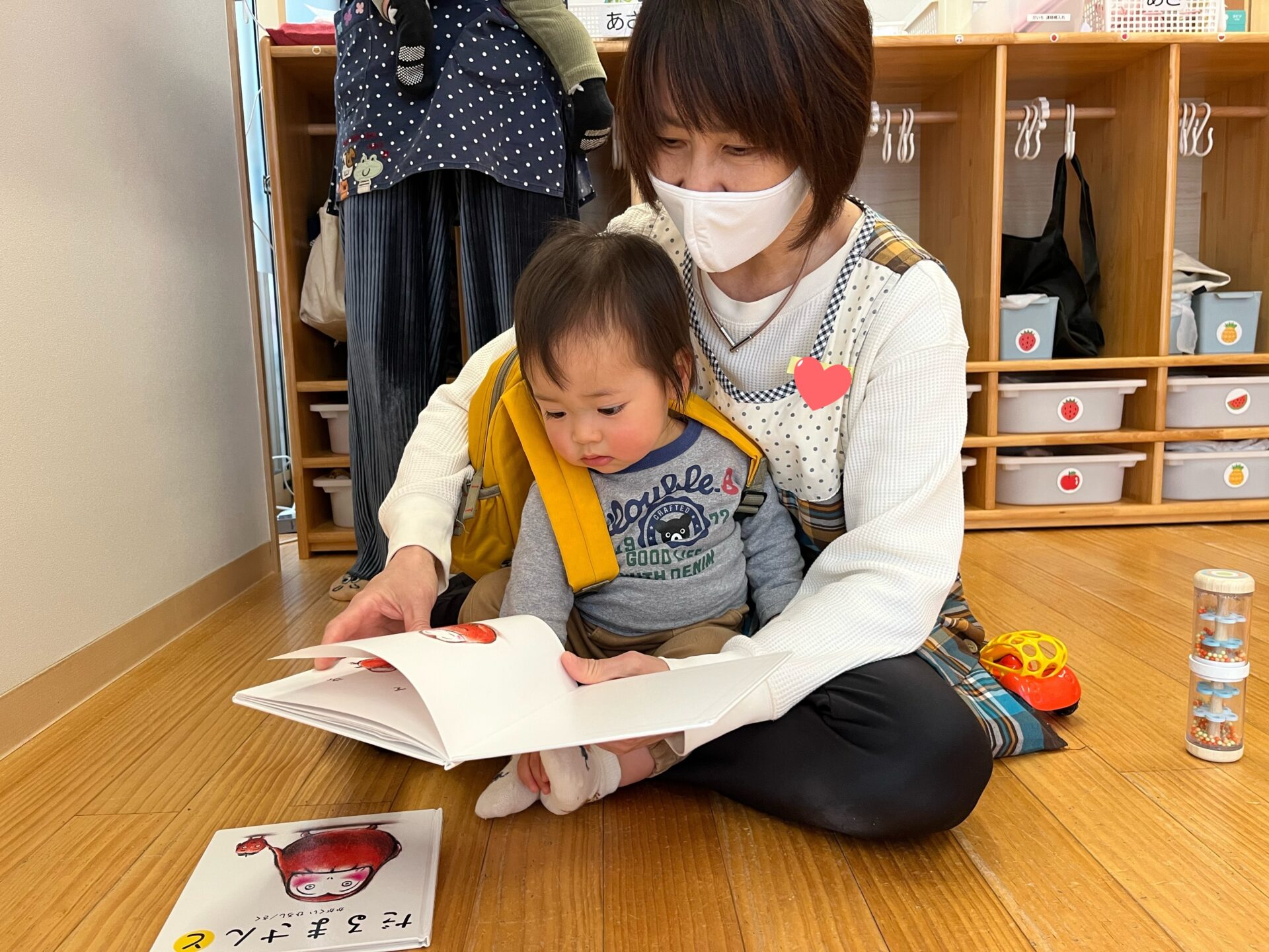保育者にも心を許してくれたようで、帰る直前には膝に座って絵本を読むこともできました。