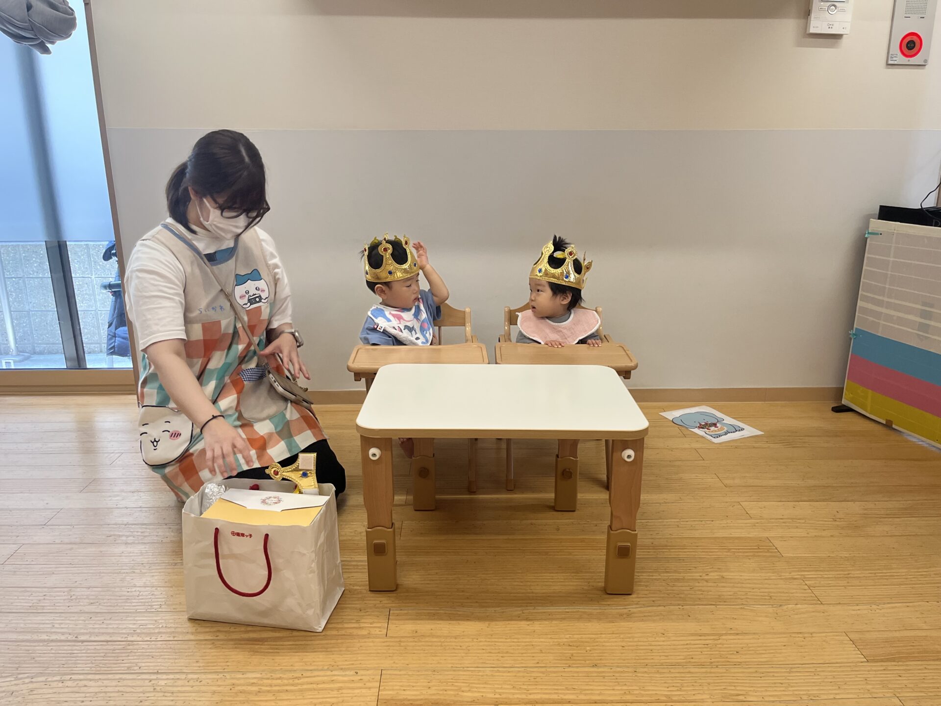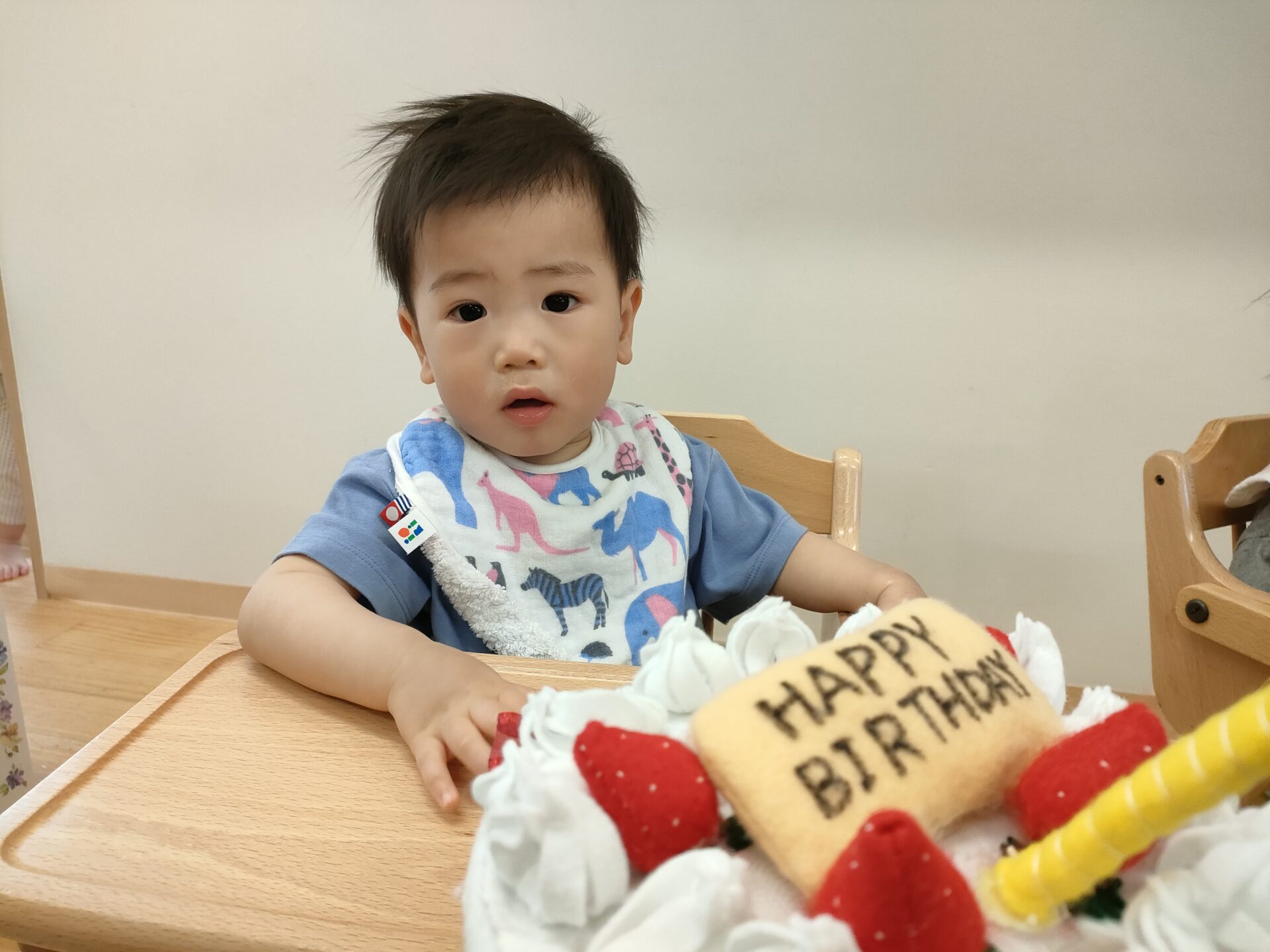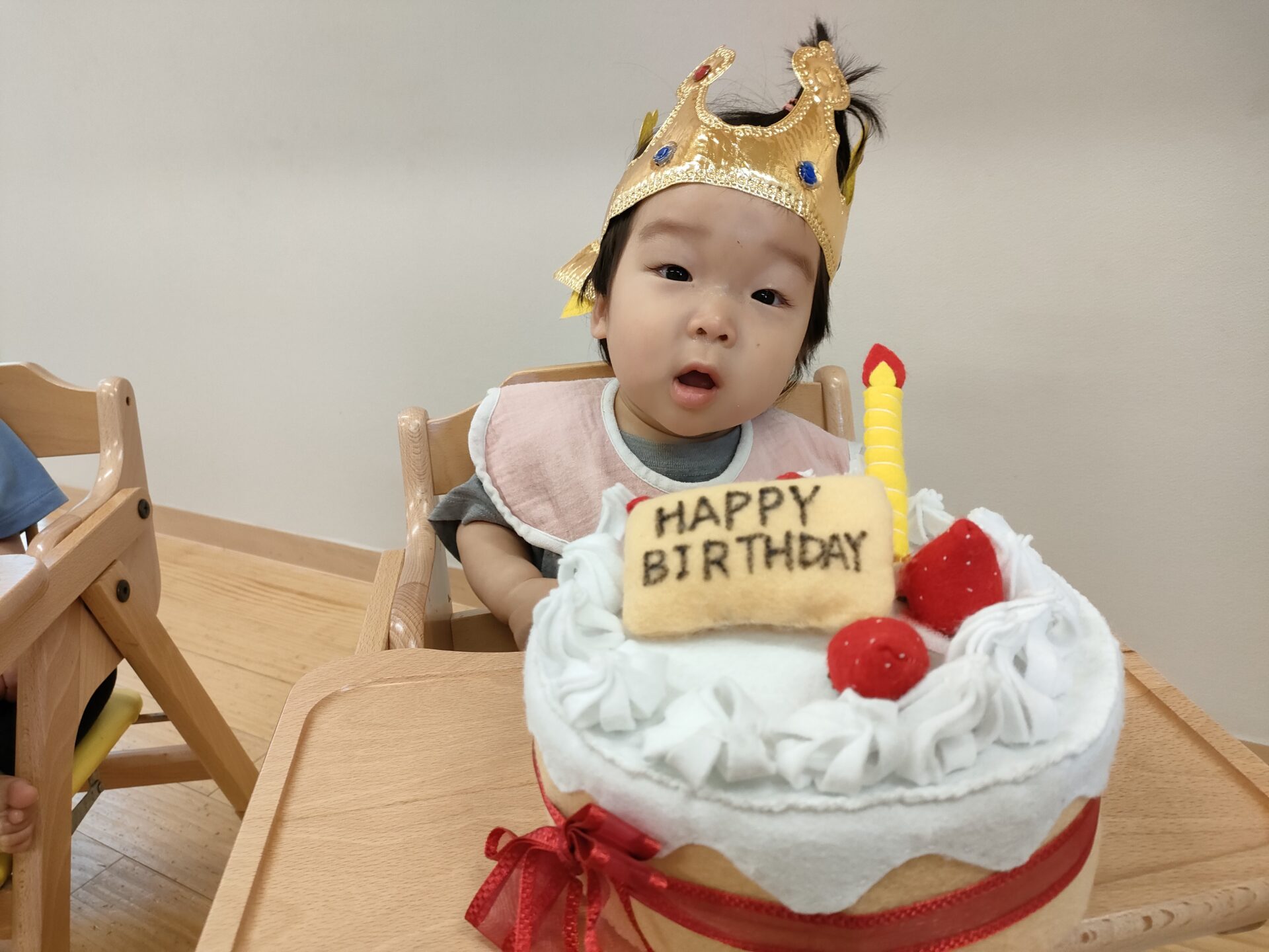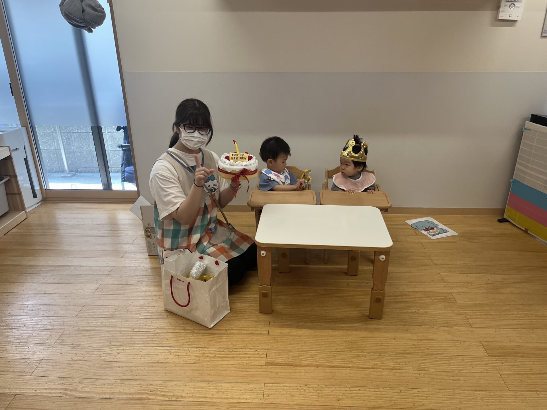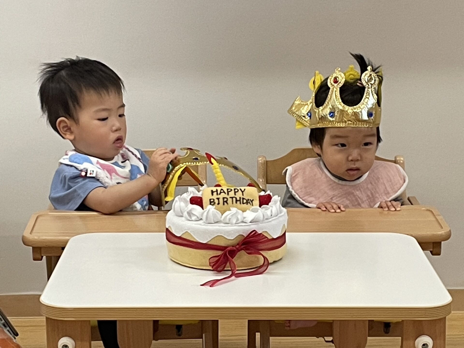 今月は0歳児クラスのうみ組さんに、お誕生日のお友達が2人いたので、みんなでお祝いをしました。